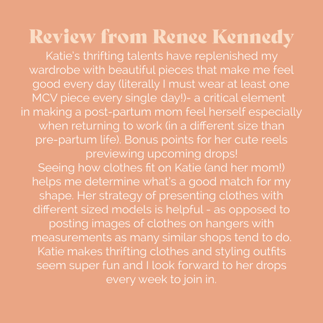 learn moreI find new homes for your previously loved & gently used clothing on your behalf! It's win win,you will receive 40% of the listed price aka make some extra cash on those clothing items that you may still love but just don't reach for anymore.
