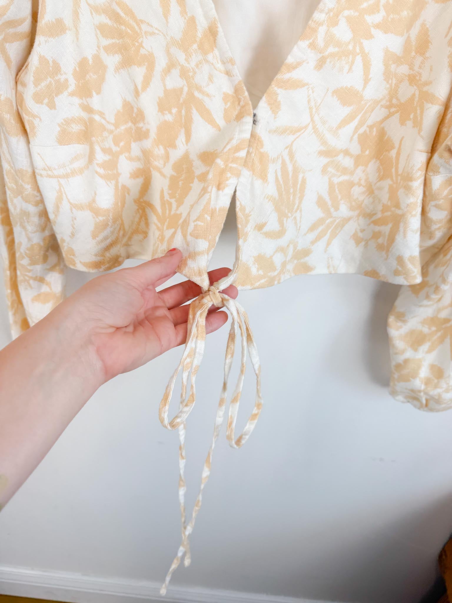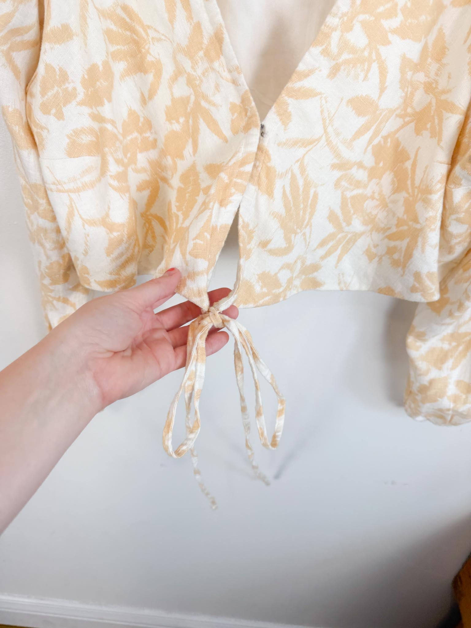 Abercrombie & Fitch Linen Cropped Floral Top with Front Tie NWT (Size XL)