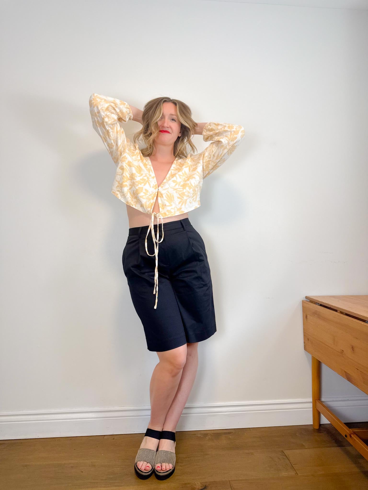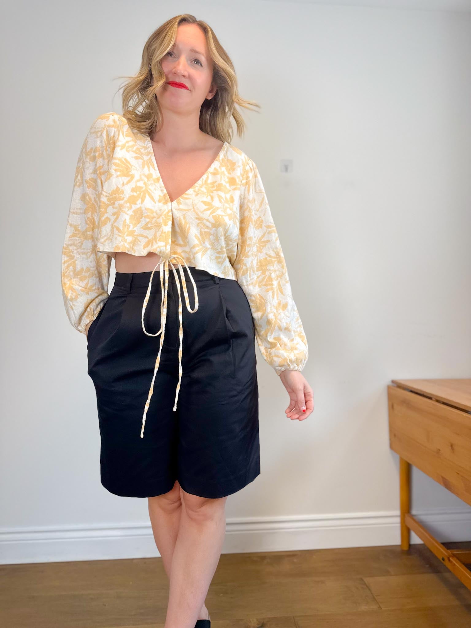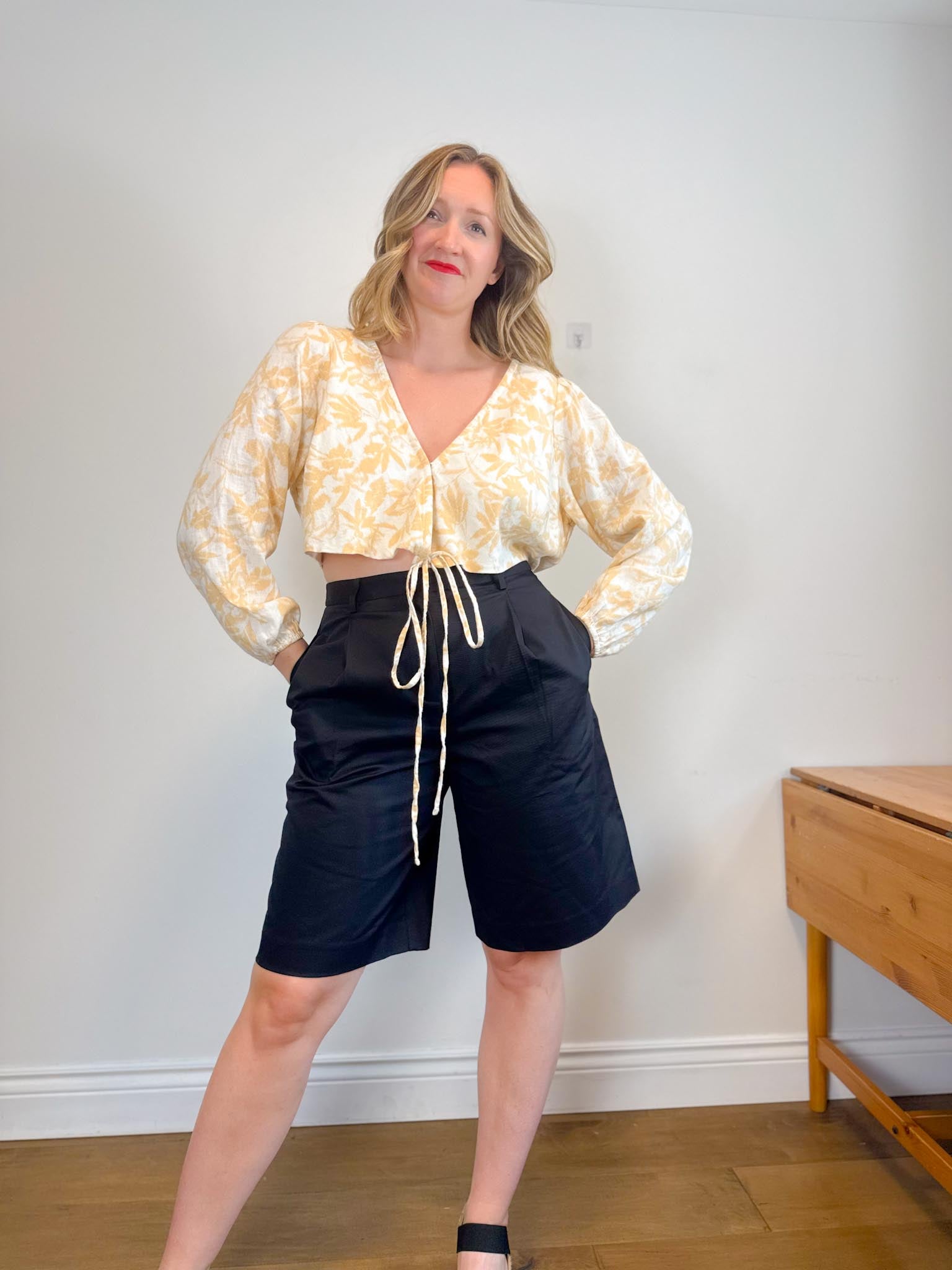 For sizing reference in the photos above, I am 5’9 and usually wear a M-L in tops and a size L / 10-12 depending on the brand in bottoms. My measurements are as follows: bust is 37/38” waist is 32” and hips are 43”. My Mom is 5’5 and usually wears a size small in tops and size 4 in bottoms depending on the brand. Her measurements are as follows: bust is 32” , her waist is 28” and her hips are 36.5”.