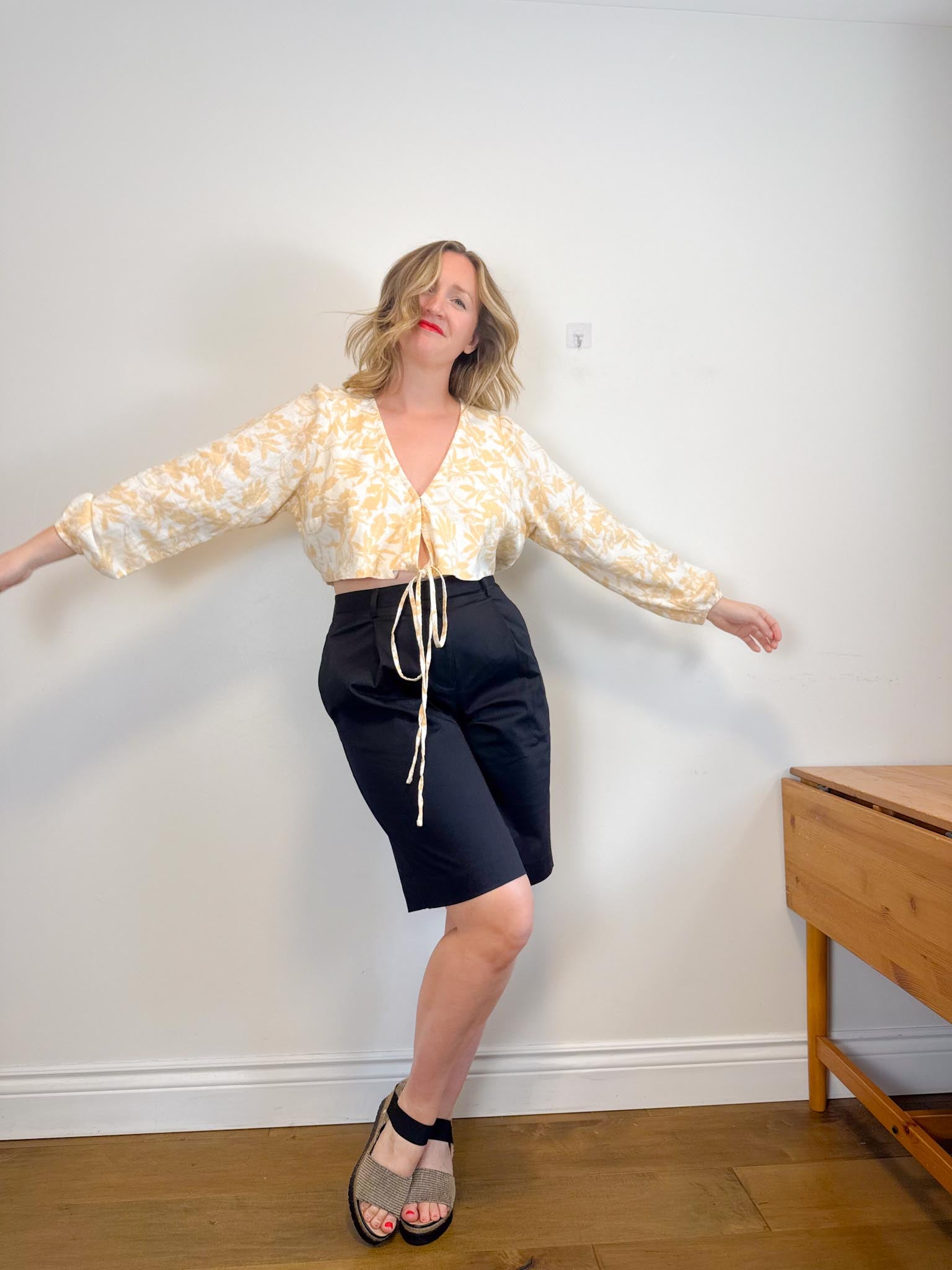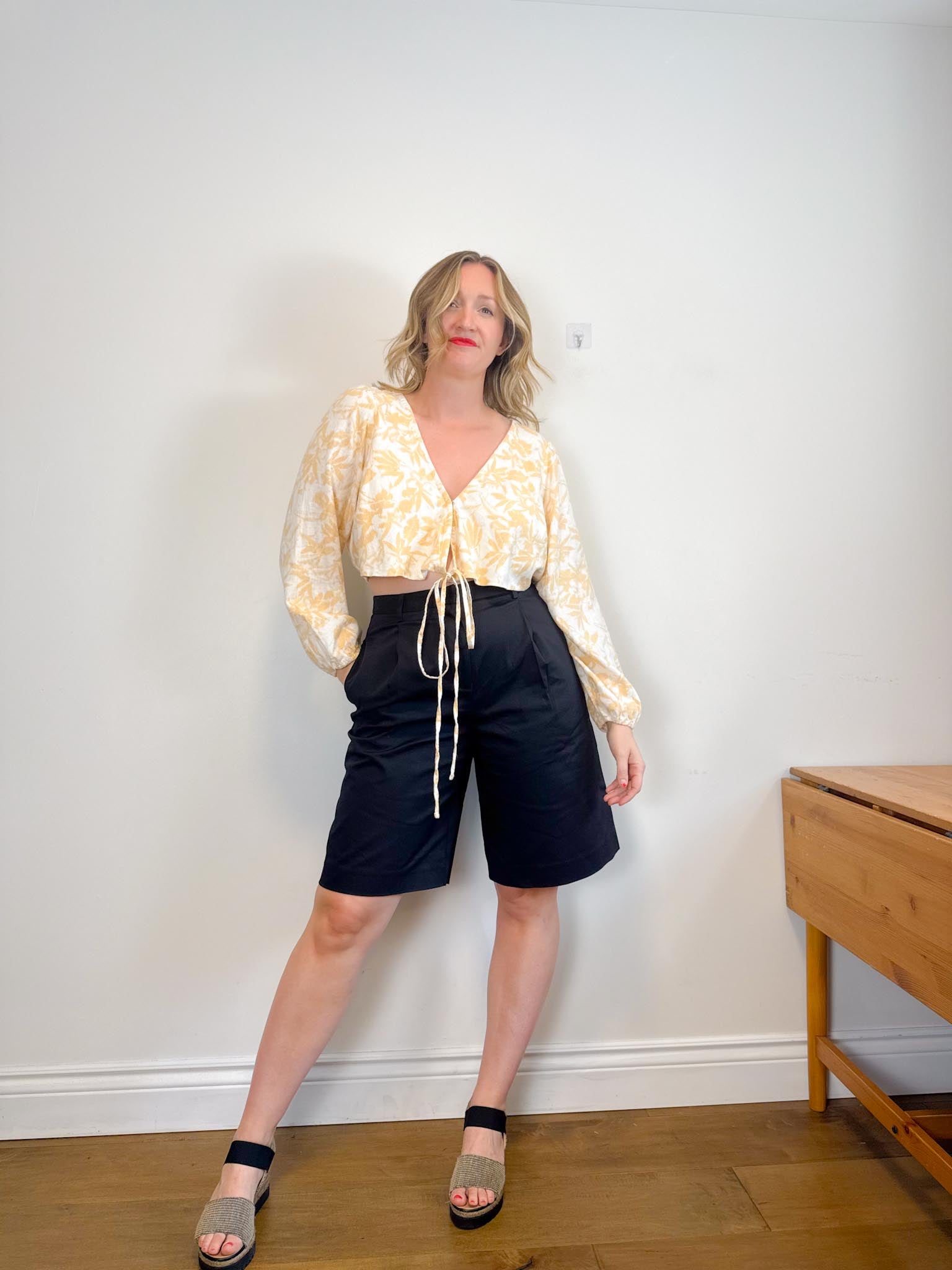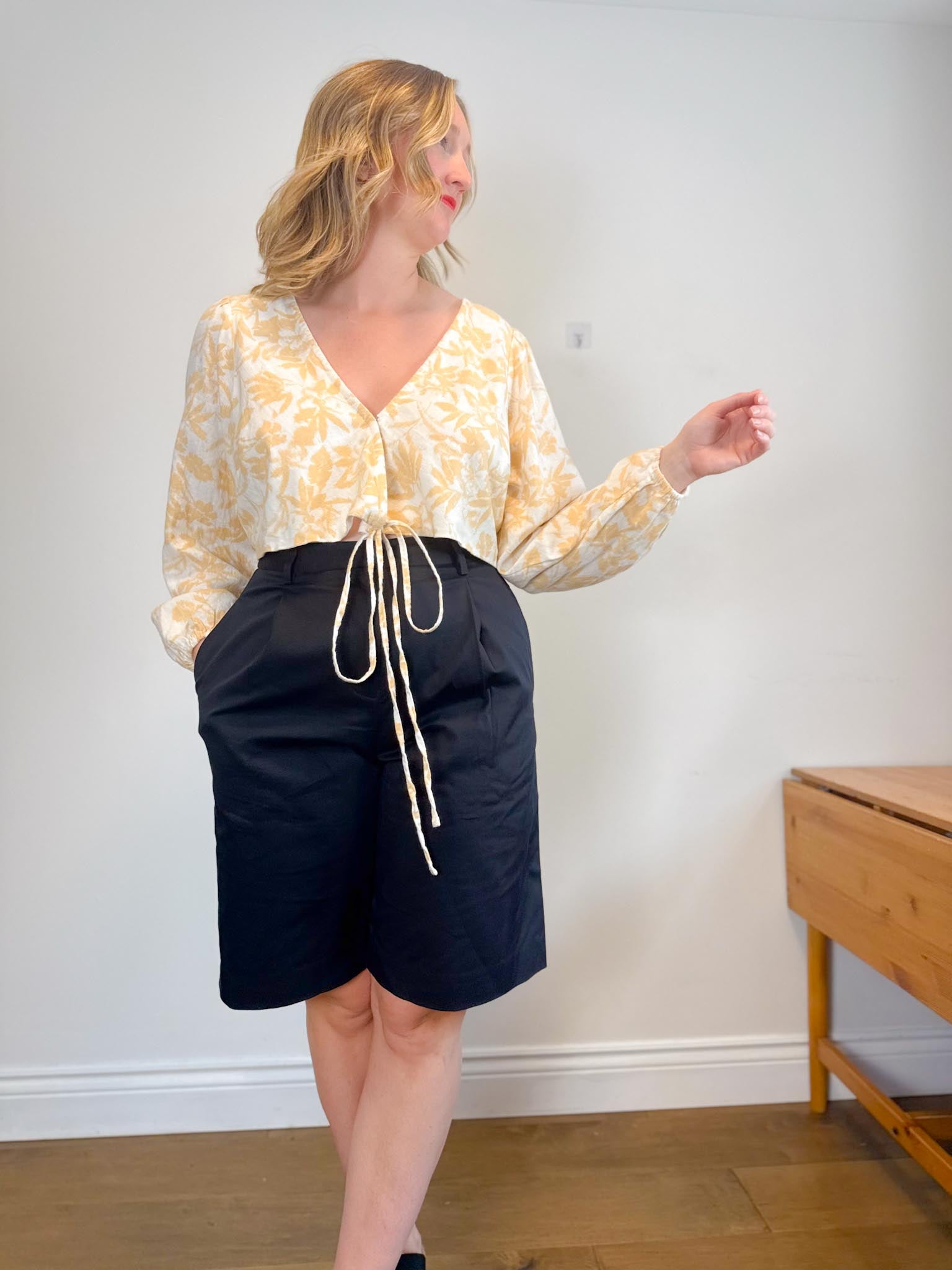 For sizing reference in the photos above, I am 5’9 and usually wear a M-L in tops and a size L / 10-12 depending on the brand in bottoms. My measurements are as follows: bust is 37/38” waist is 32” and hips are 43”. My Mom is 5’5 and usually wears a size small in tops and size 4 in bottoms depending on the brand. Her measurements are as follows: bust is 32” , her waist is 28” and her hips are 36.5”.