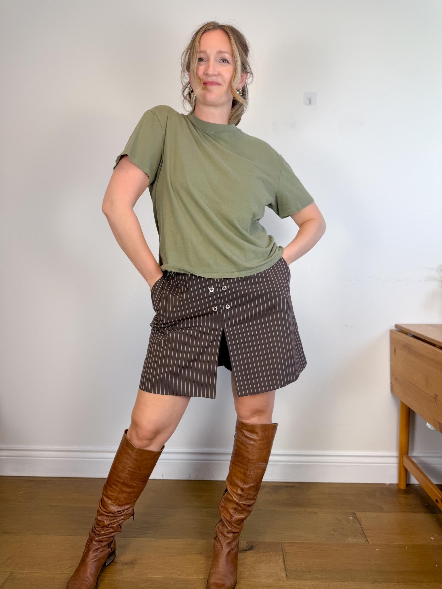 For sizing reference in the photos above, I am 5’9 and usually wear a M-L in tops and a size L / 10-12 depending on the brand in bottoms. My measurements are as follows: bust is 37/38” waist is 32” and hips are 43”. My Mom is 5’5 and usually wears a size small in tops and size 4 in bottoms depending on the brand. Her measurements are as follows: bust is 32” , her waist is 28” and her hips are 36.5”.