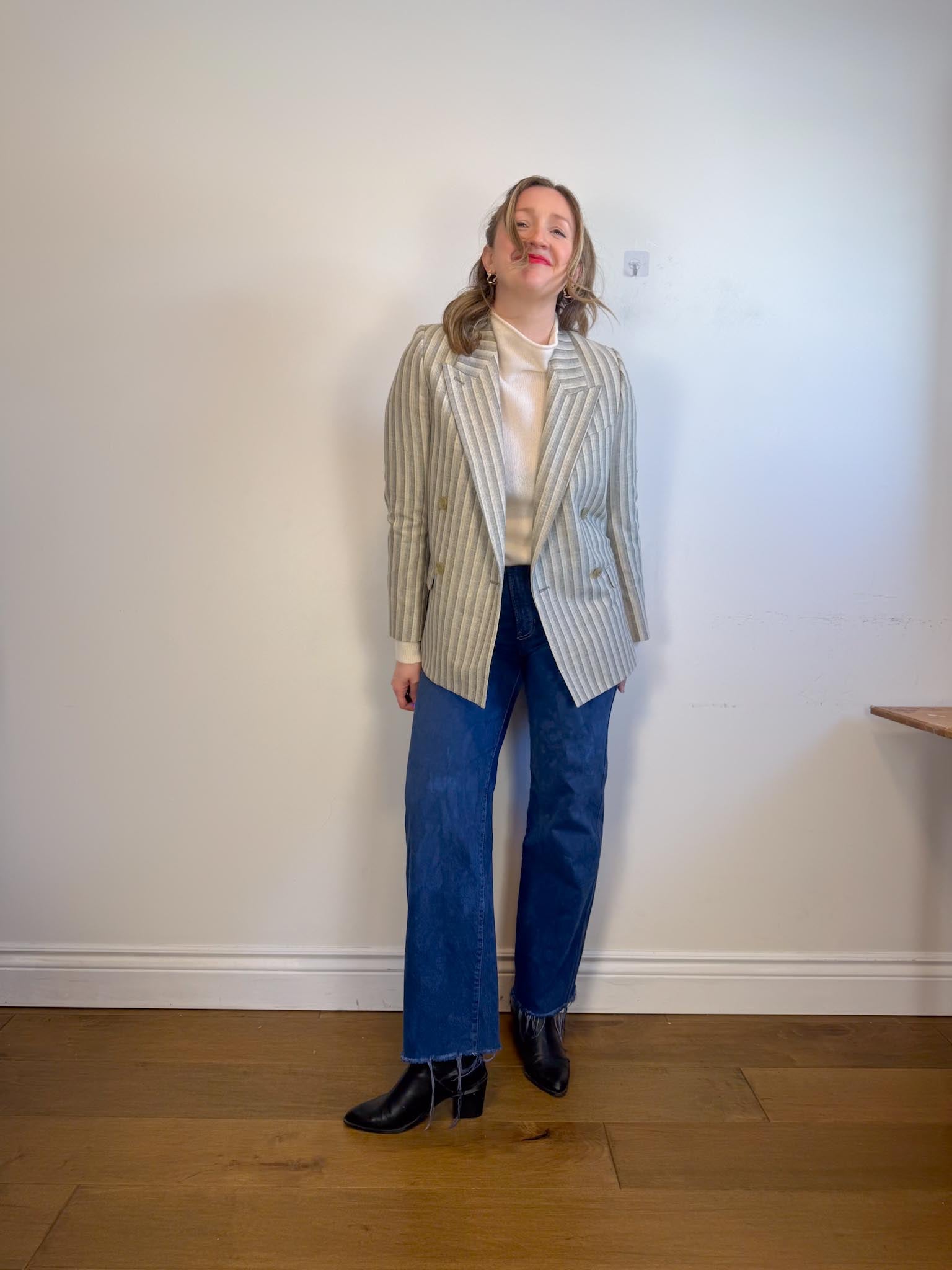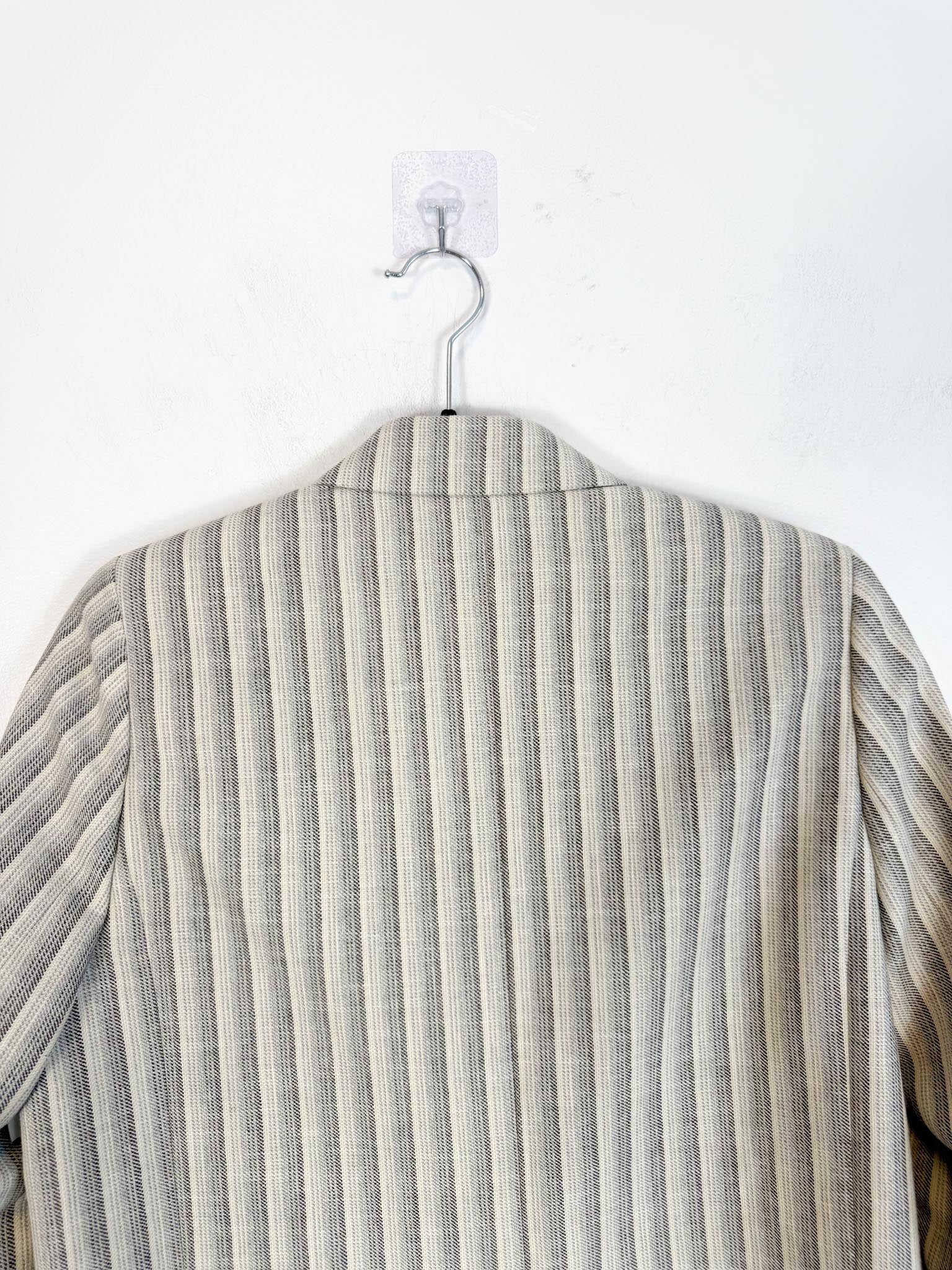 - Blazer, Striped, Tweed, Wool and cotton-blend, Buttoned cuffs, Breast pocket, Two front flap pockets, Button fastening at double-breasted front, Fully lined, Back vent, Non-stretchy fabric, Mid-weight fabric.