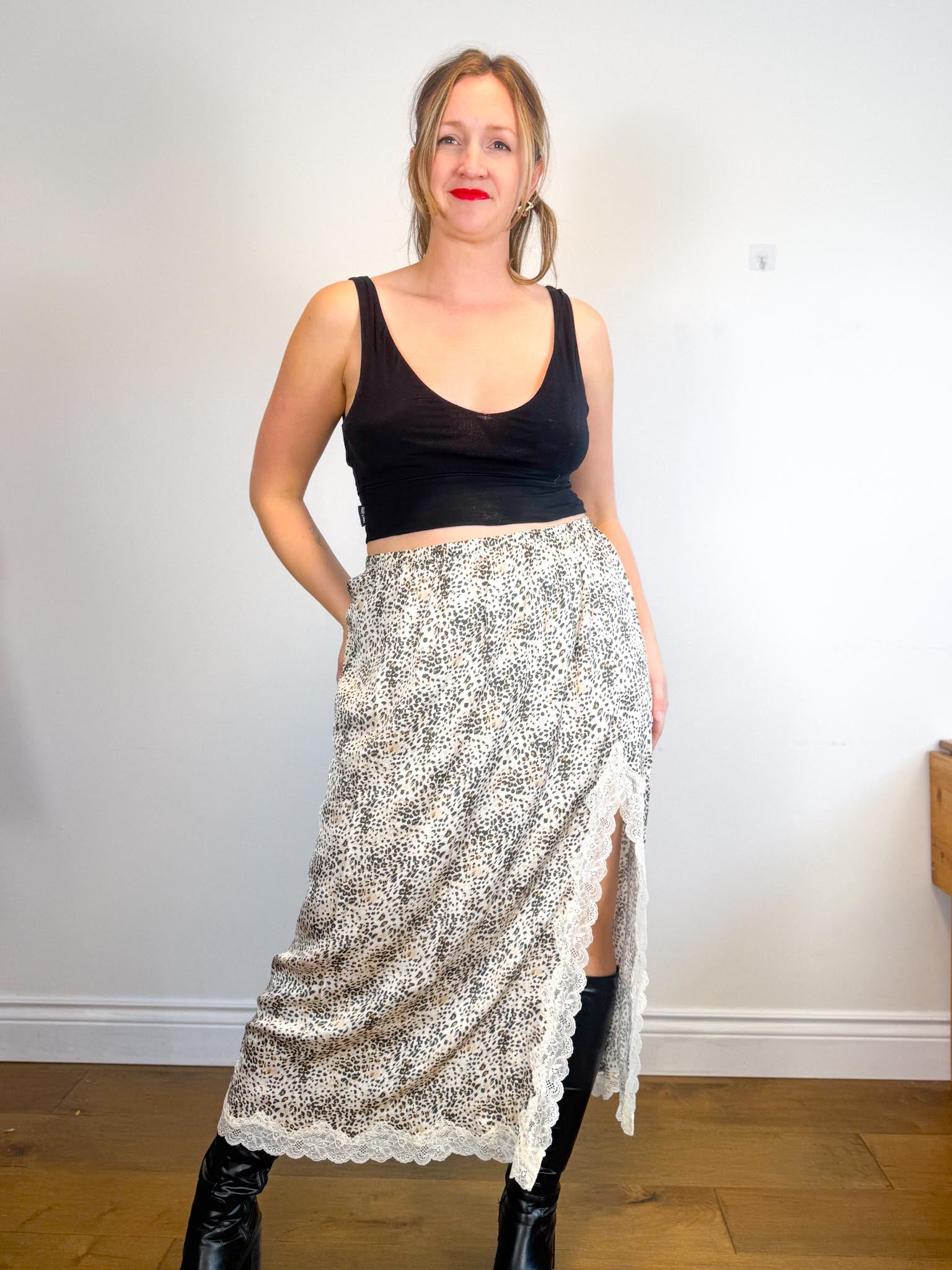 Aerie Leopard Print Skirt with Lace Trim (Size XL)