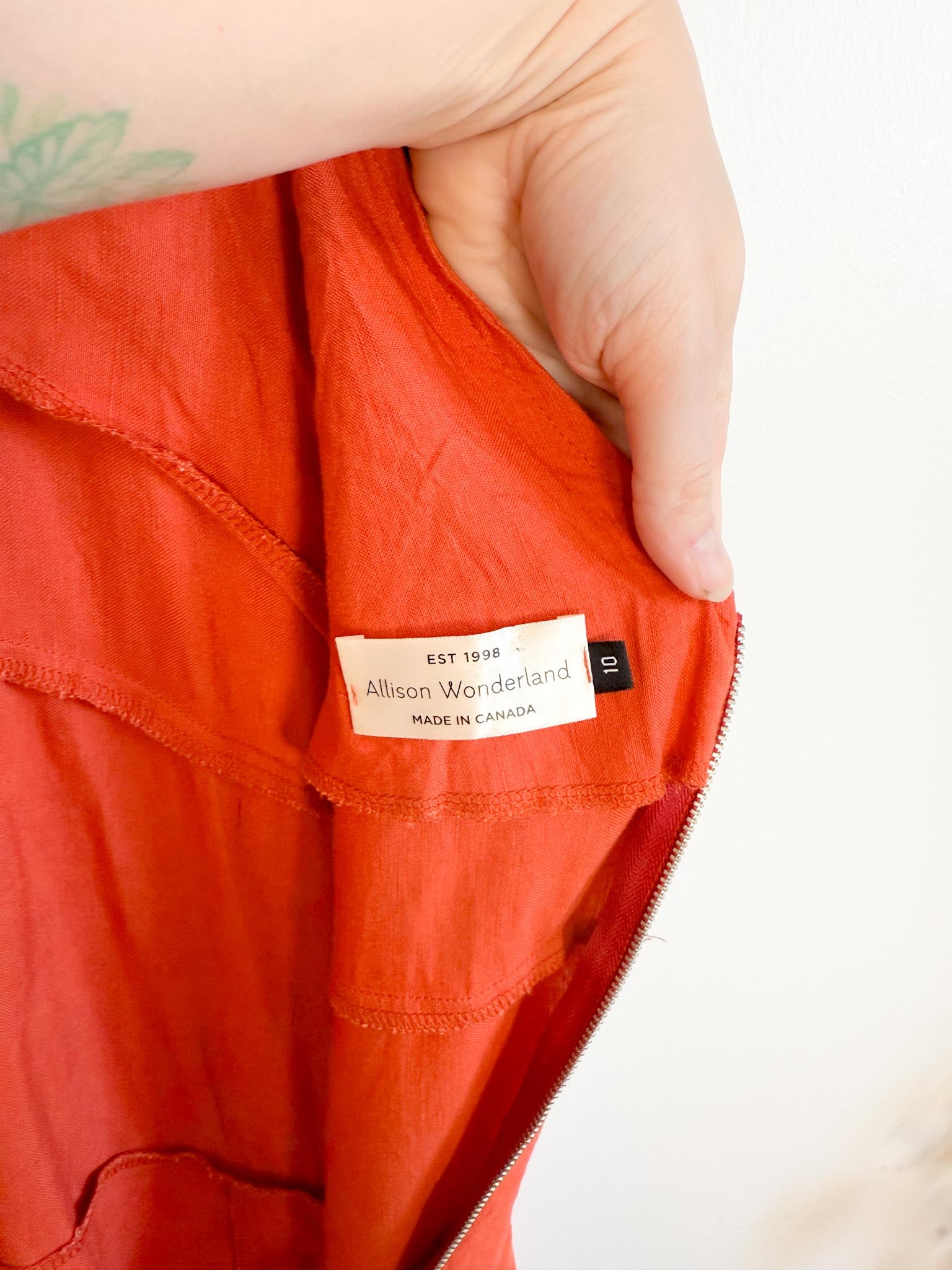 Allison Wonderland Slow Fashion "Chillin' Romper in Rust" (Size 10)
