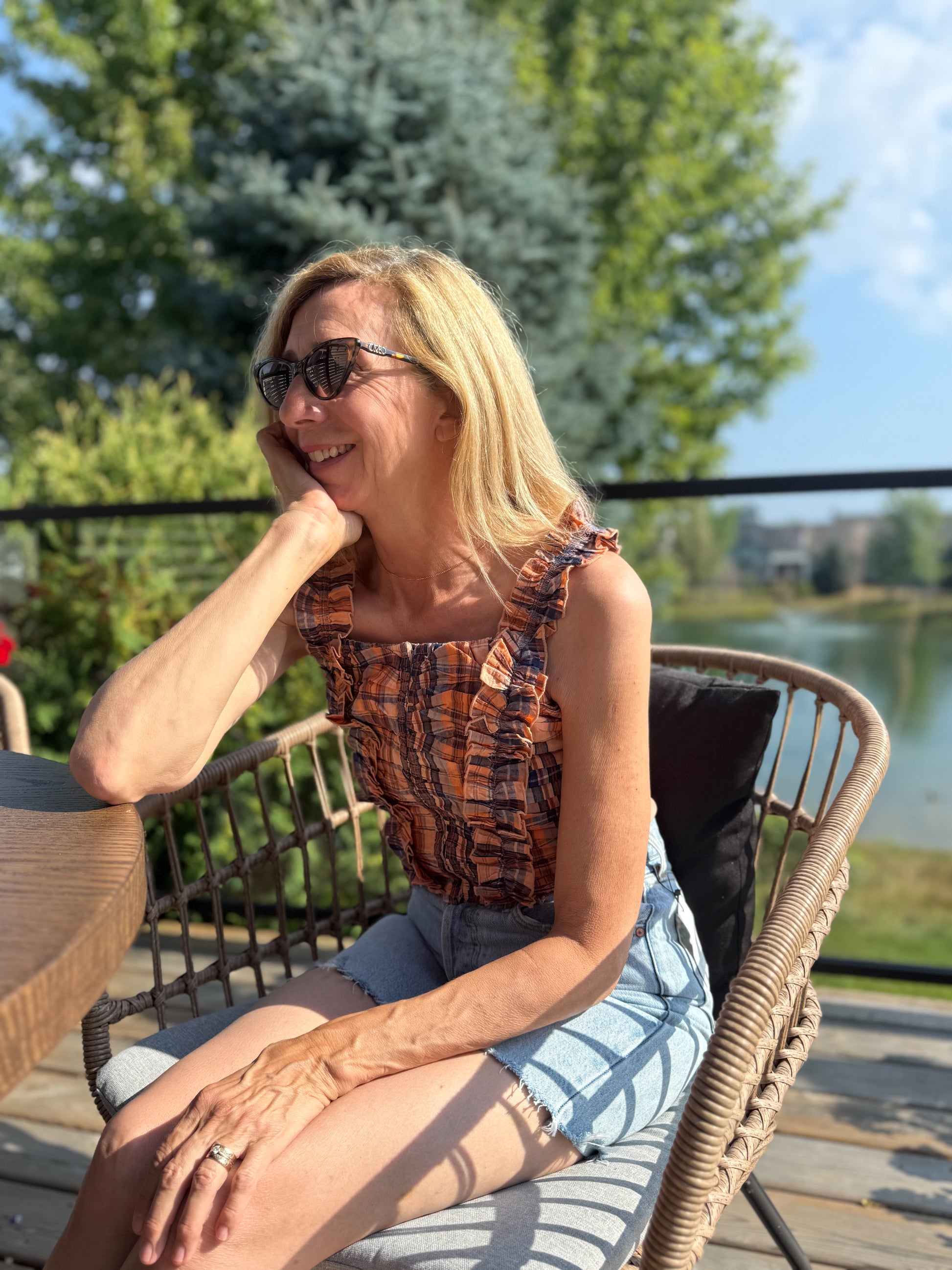 For sizing reference in the photos above, I am 5’9 and usually wear a M-L in tops and a size L / 10-12 depending on the brand in bottoms. My measurements are as follows: bust is 37/38” waist is 32” and hips are 43”. My Mom is 5’5 and usually wears a size small in tops and size 4 in bottoms depending on the brand. Her measurements are as follows: bust is 32” , her waist is 28” and her hips are 36.5”.