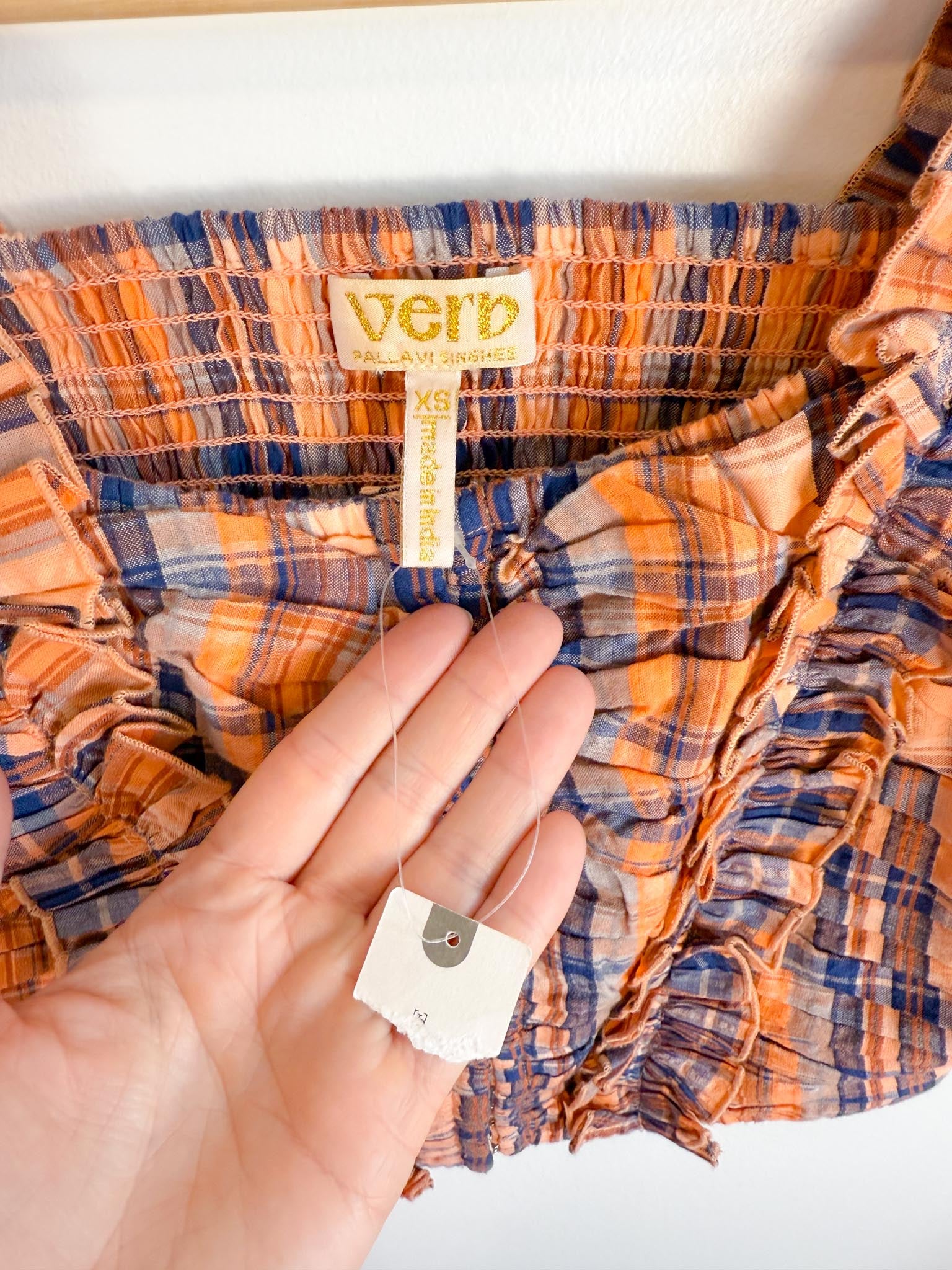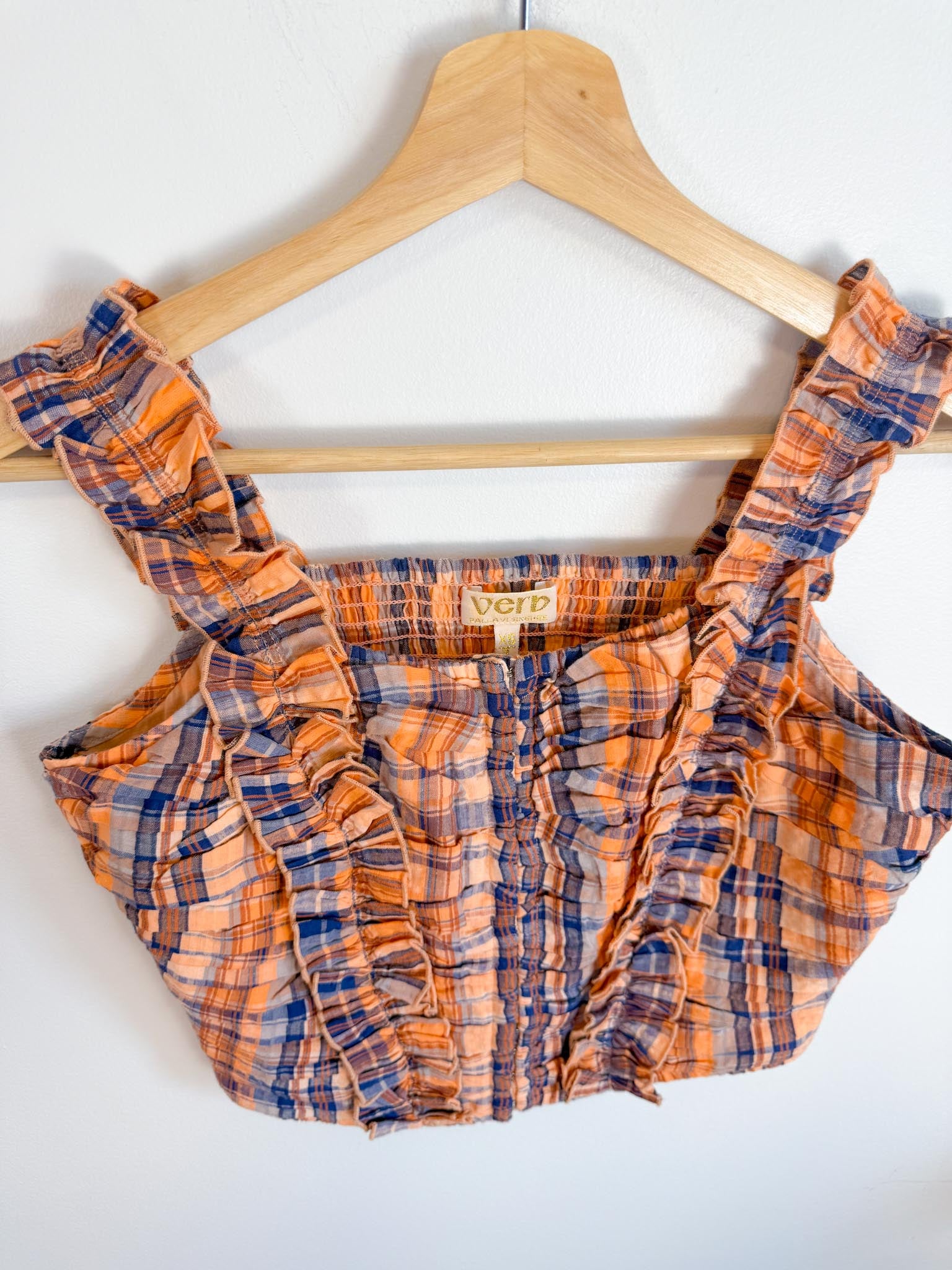Anthropologie "Verb Ruffled Plaid Tank in Orange/Navy" NWT (Size XS-M)