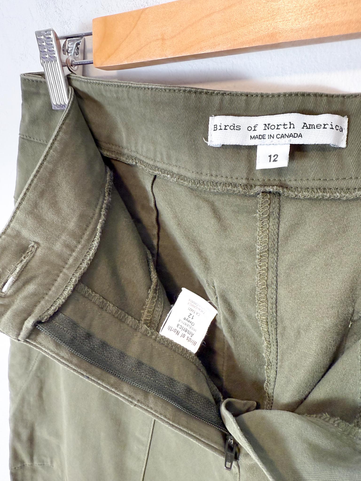 Birds of North America Slow Fashion High Waist Trousers in Khaki Green (Size M)
