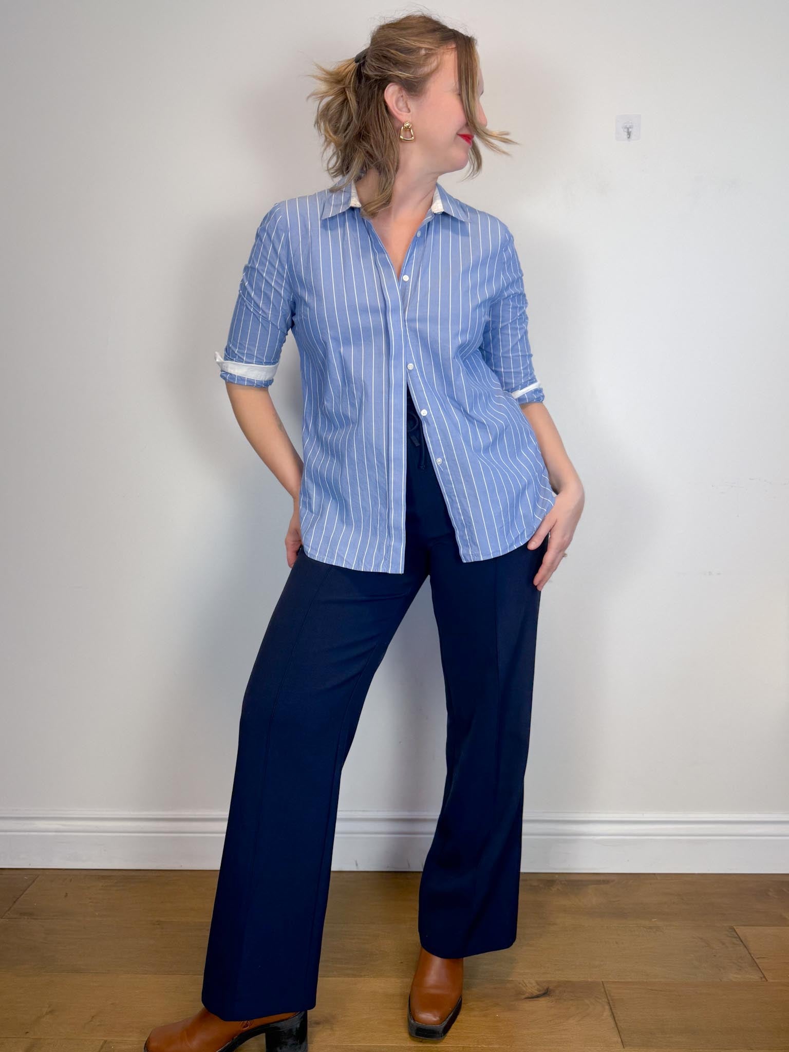 By Malene Birger Designer "Brigitta Blouse in Blue/White Stripe" (Size M)