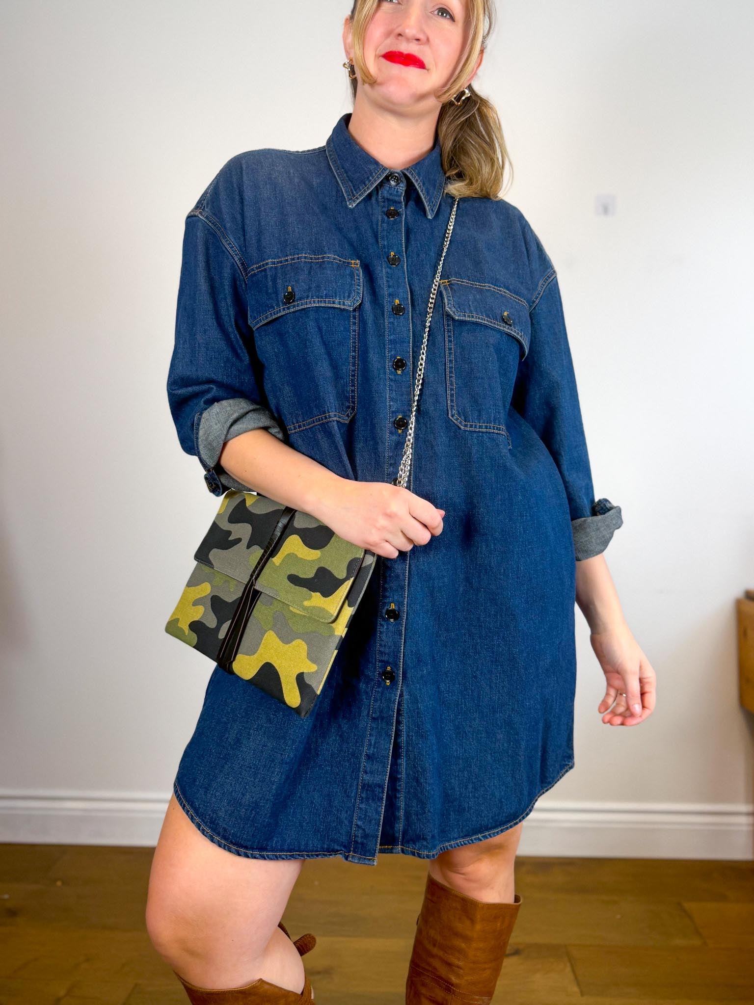 Stella & Dot Bellamy Camo Clutch with Metal Chain