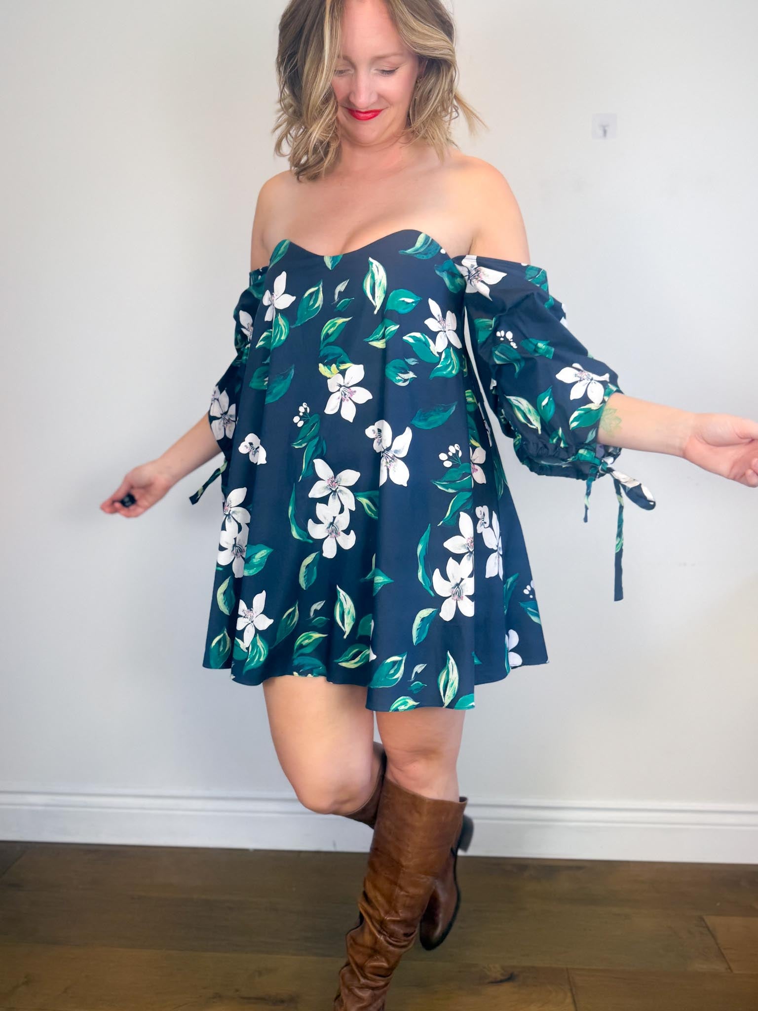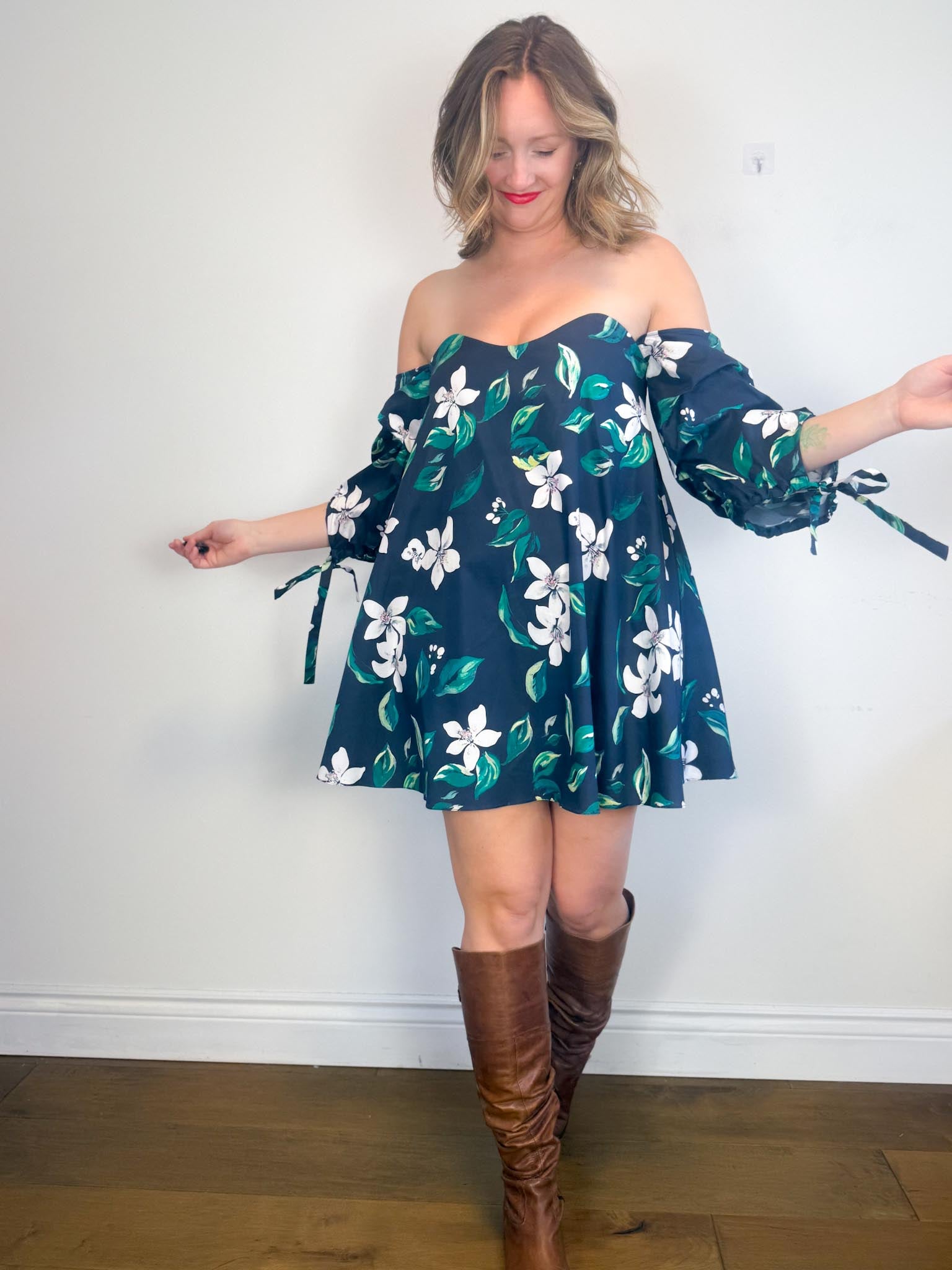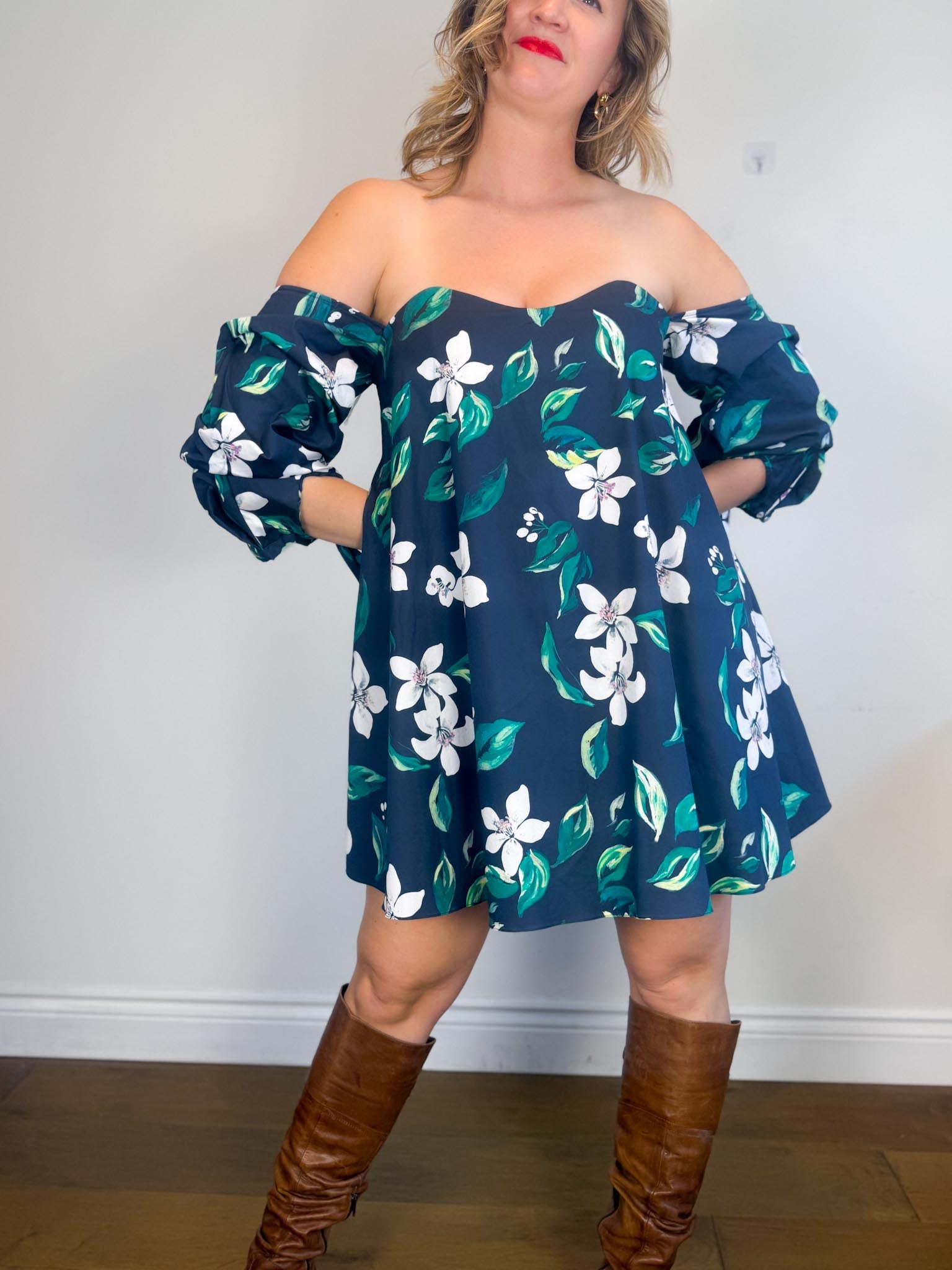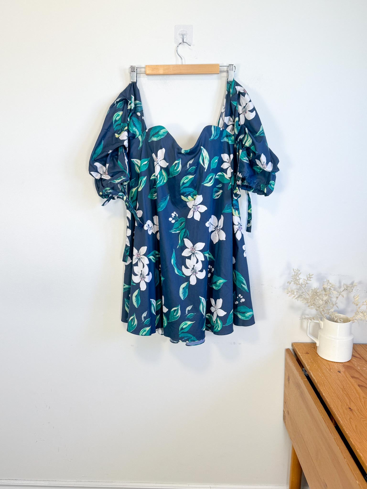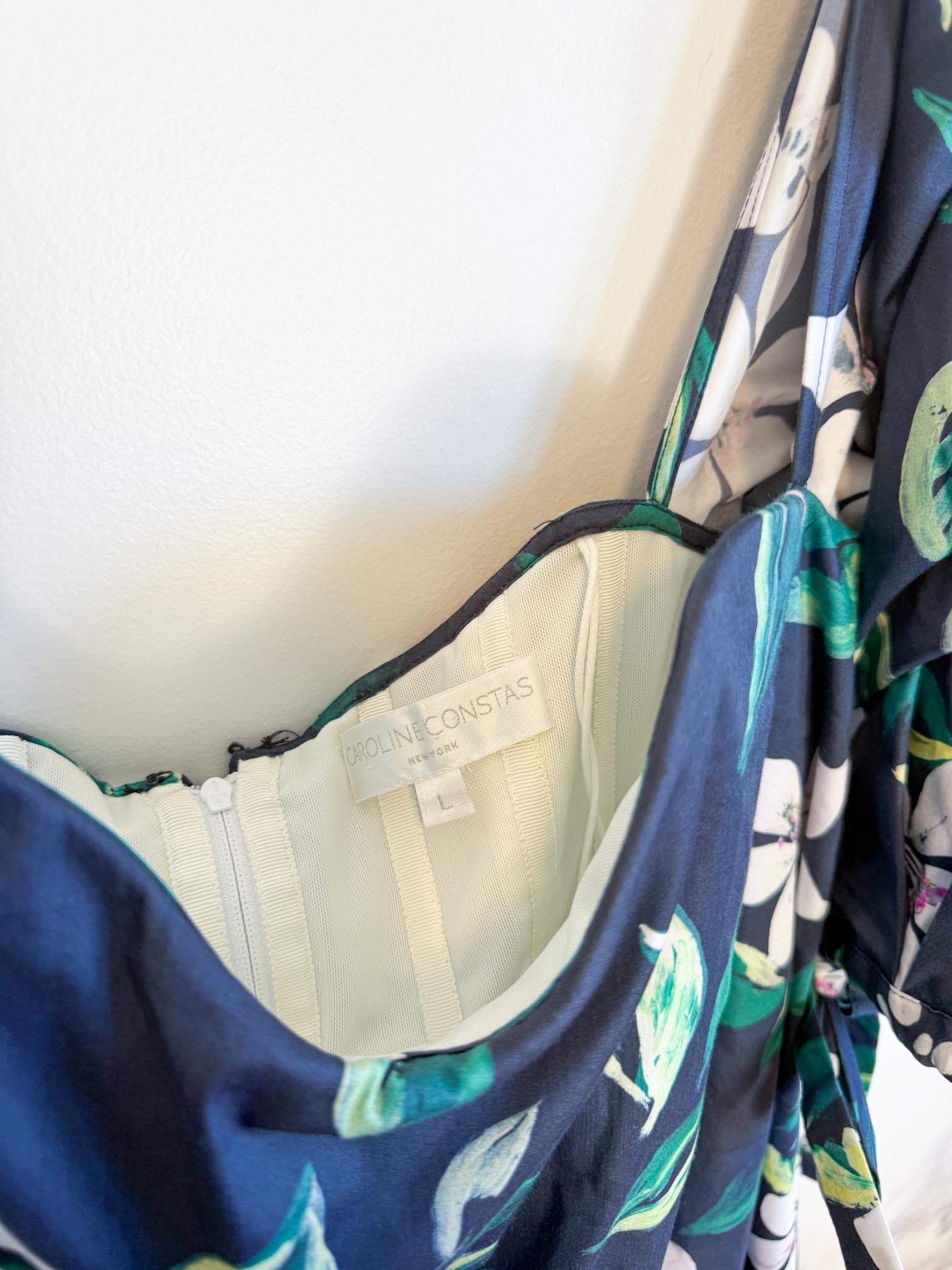 Caroline Constas Designer "Gabrielle Floral Strapless Mini Dress in Navy (Size L)