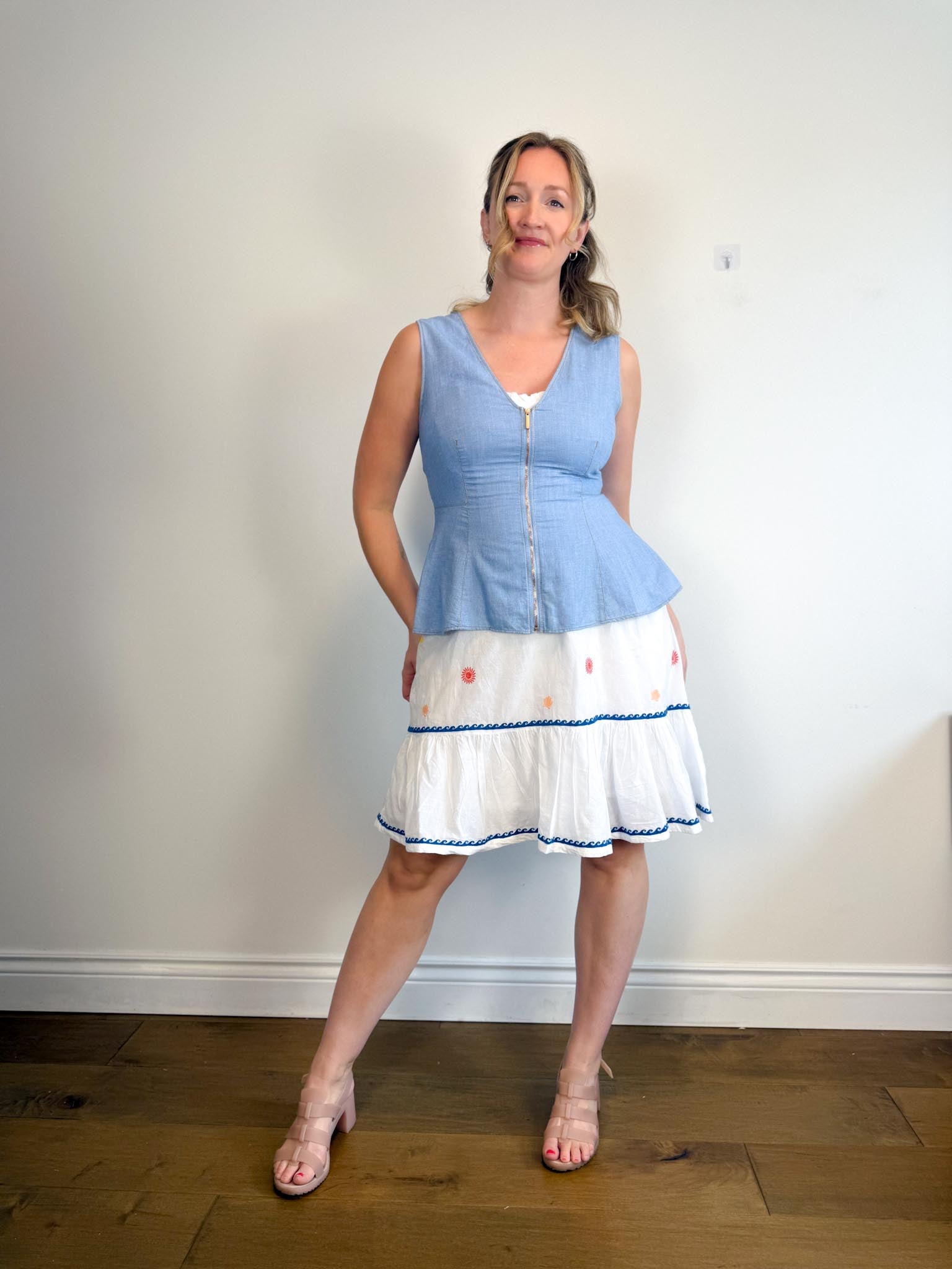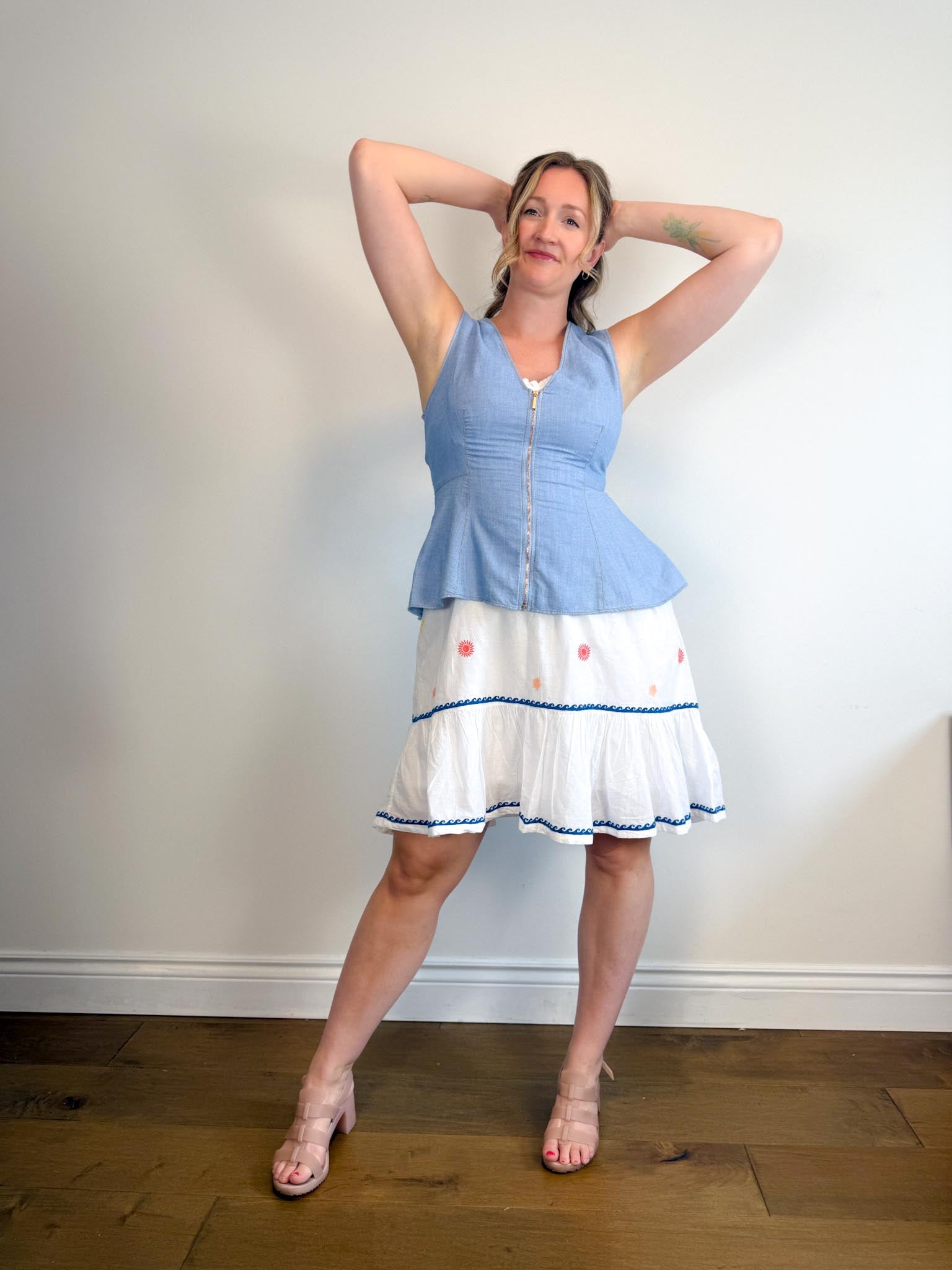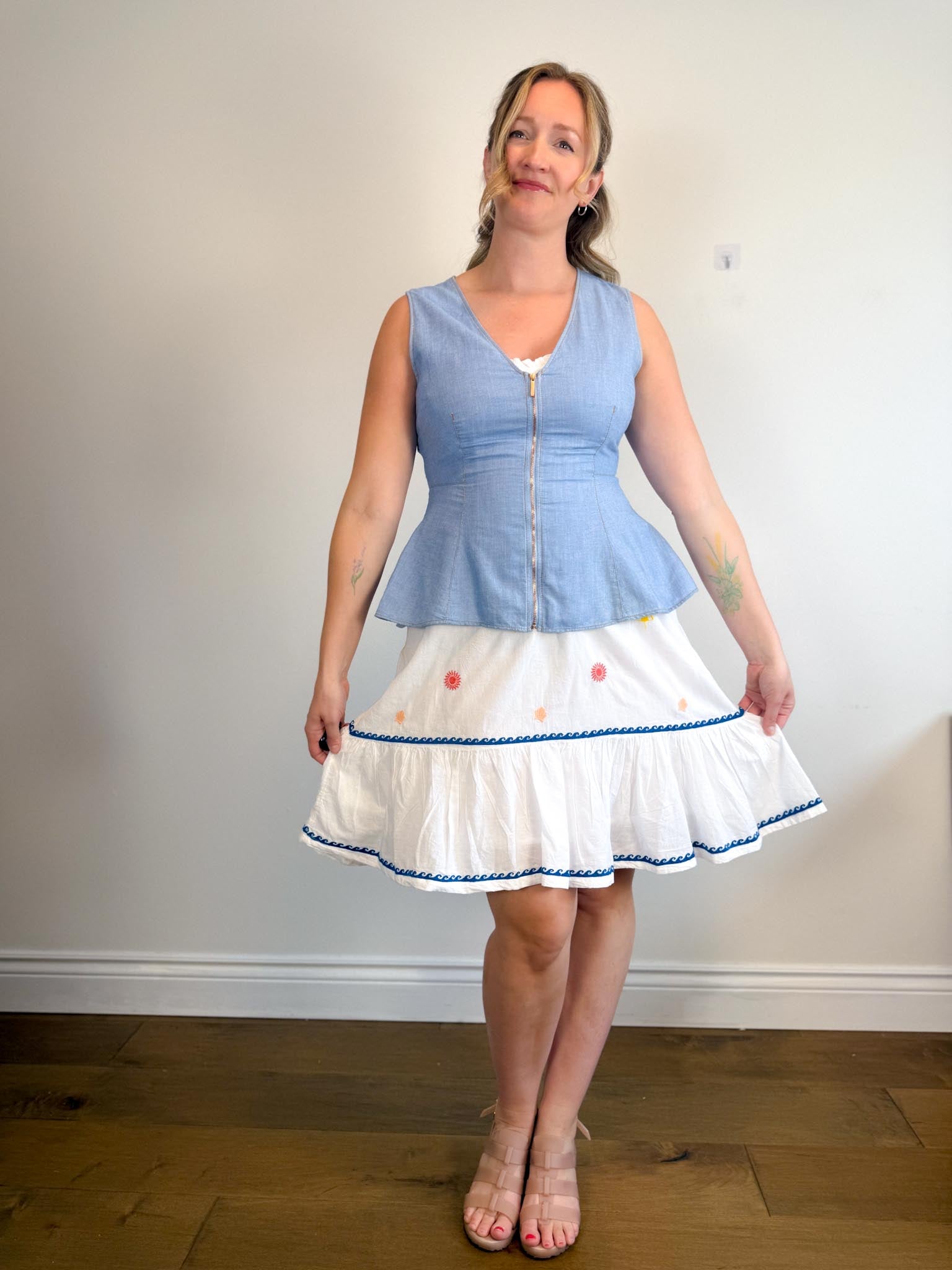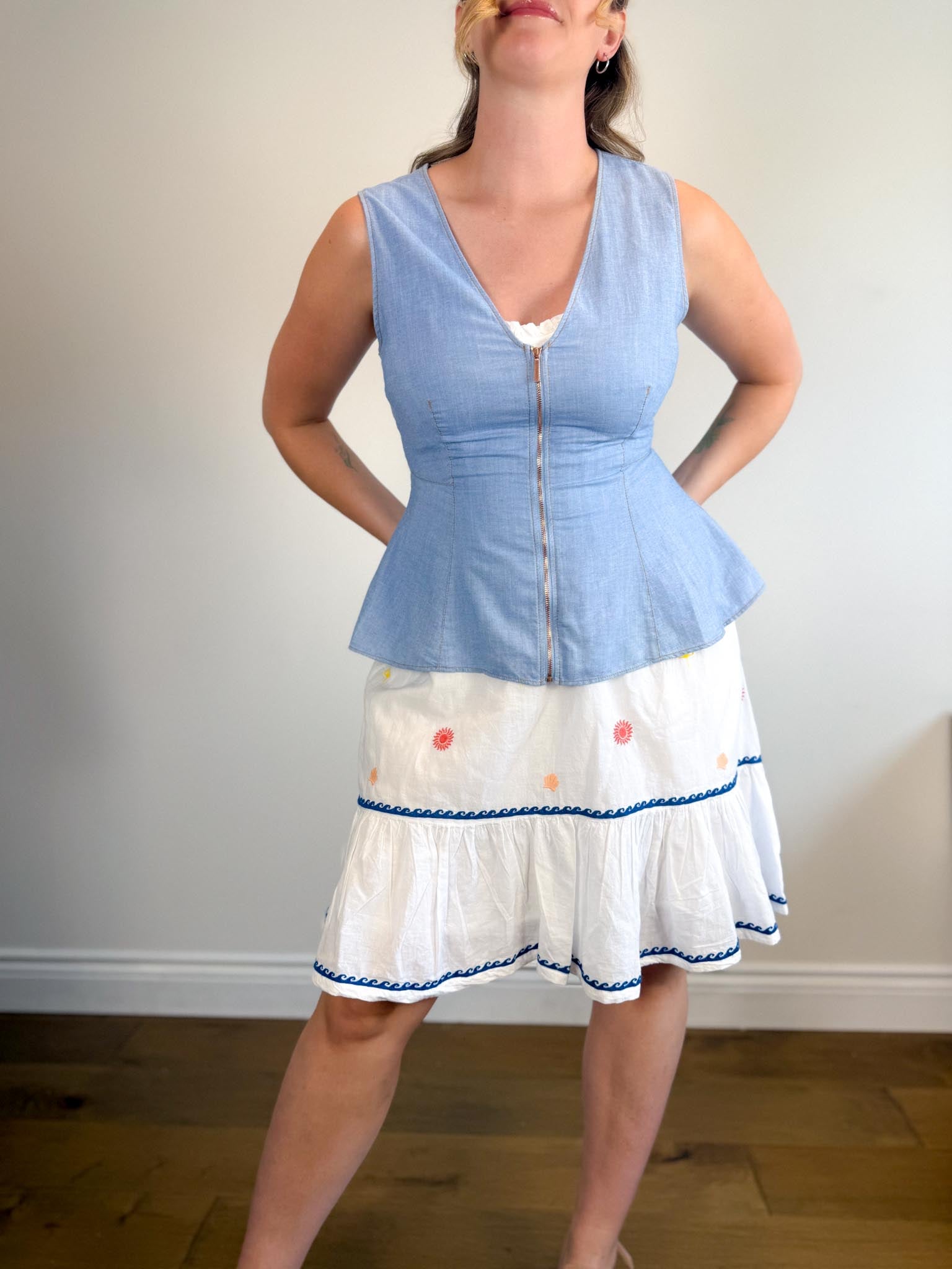 Cop.Copine "Ponctuel Denim Top in Light Wash" (Size L)