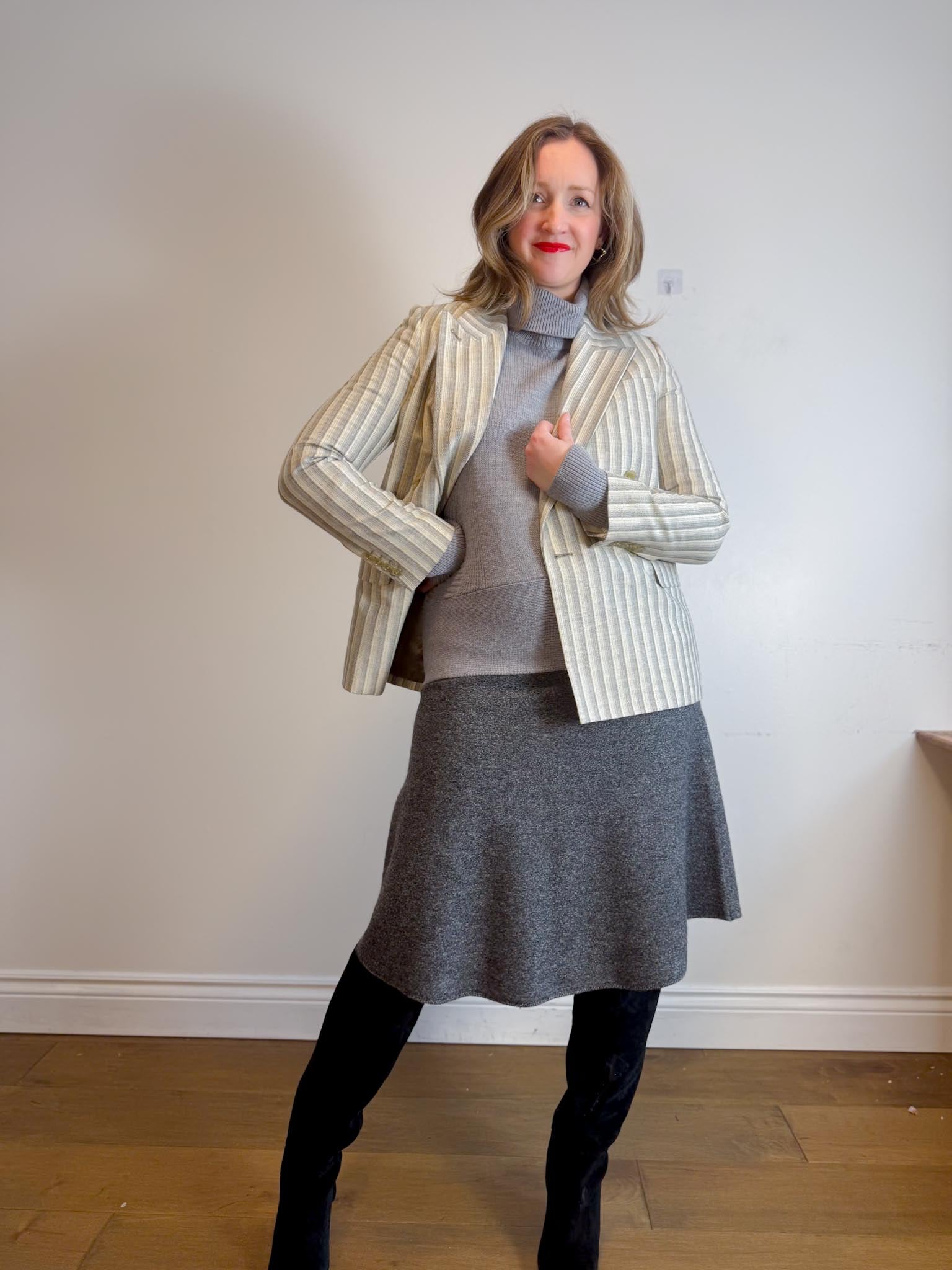 This classic midi skirt is made from boiled merino wool that will last years in your wardrobe. It's designed with a comfortable elasticated waist that flares out to a softly draped A-line hem. Style it with knee-high boots.