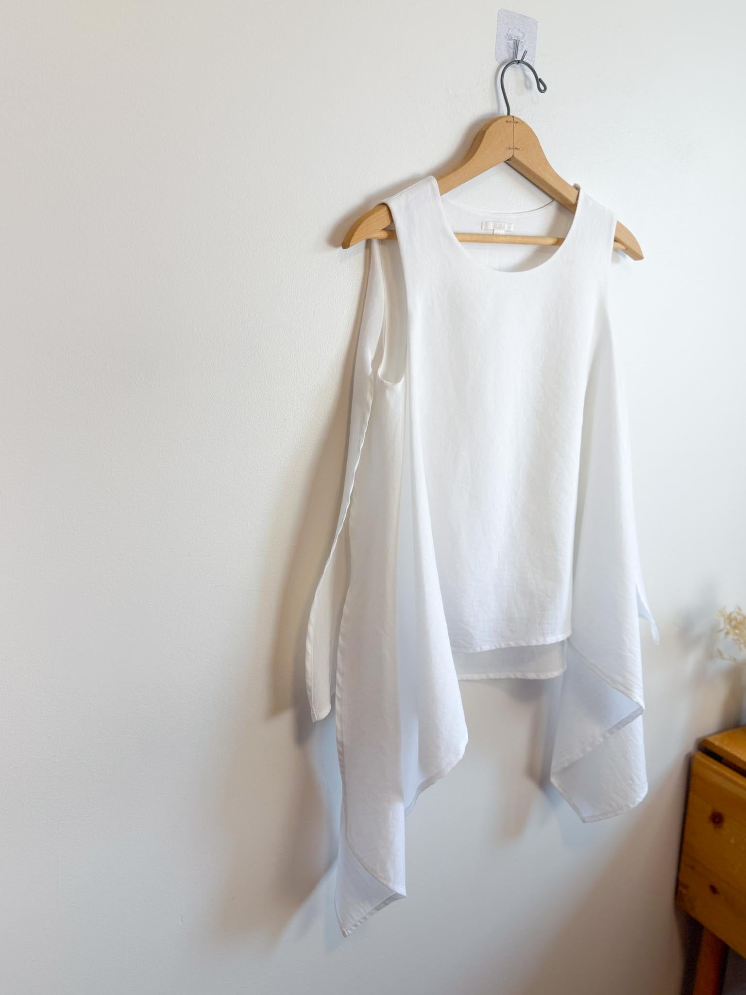 COS White Sleeveless Blouse with Asymetrical Wings (Size XS/S)