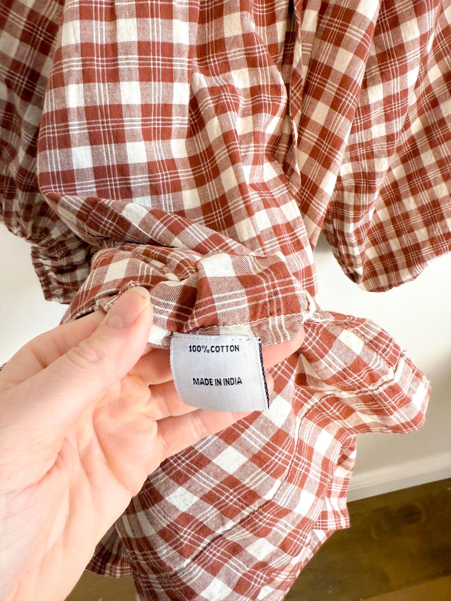 Daughters of India Sustainable "Poet Mini Dress in Red Clay" (Size M/L)