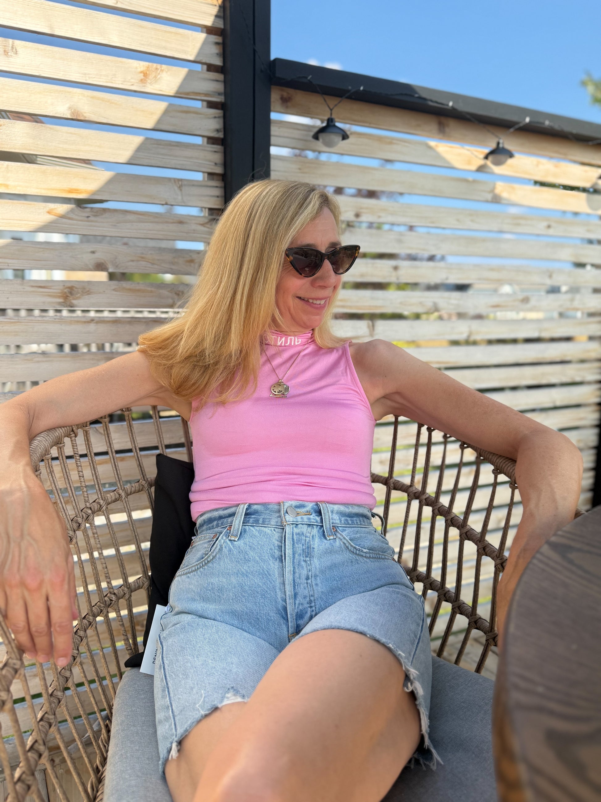For sizing reference in the photos above, I am 5’9 and usually wear a M-L in tops and a size L / 10-12 depending on the brand in bottoms. My measurements are as follows: bust is 37/38” waist is 32” and hips are 43”. My Mom is 5’5 and usually wears a size small in tops and size 4 in bottoms depending on the brand. Her measurements are as follows: bust is 32” , her waist is 28” and her hips are 36.5”.