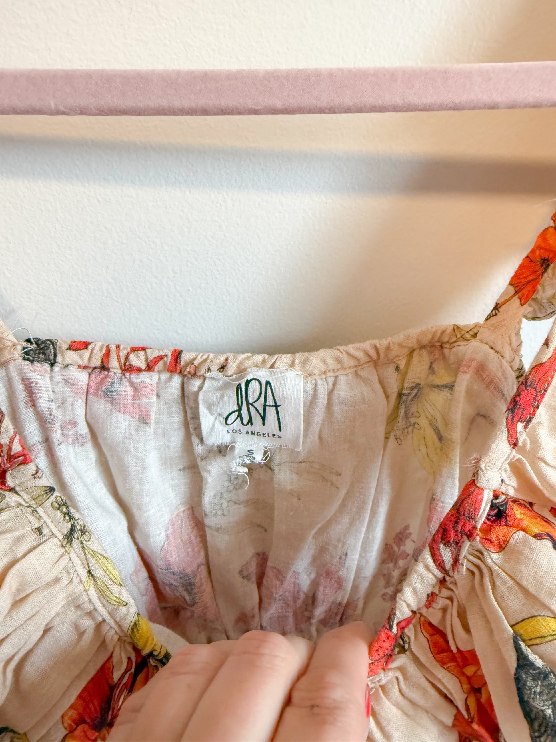 dRA Los Angeles Linen Ruffled Tank in Floral/Tucan Print (Size S)