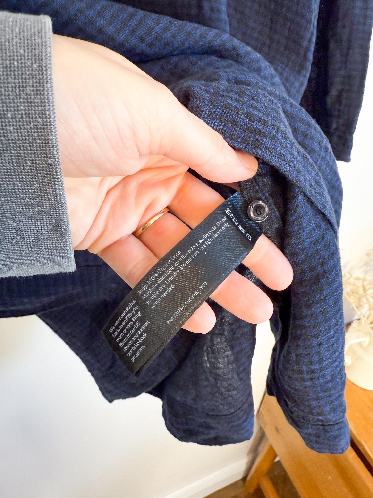 Eileen Fisher Linen Boxy Top in Navy Gingham (Size M)