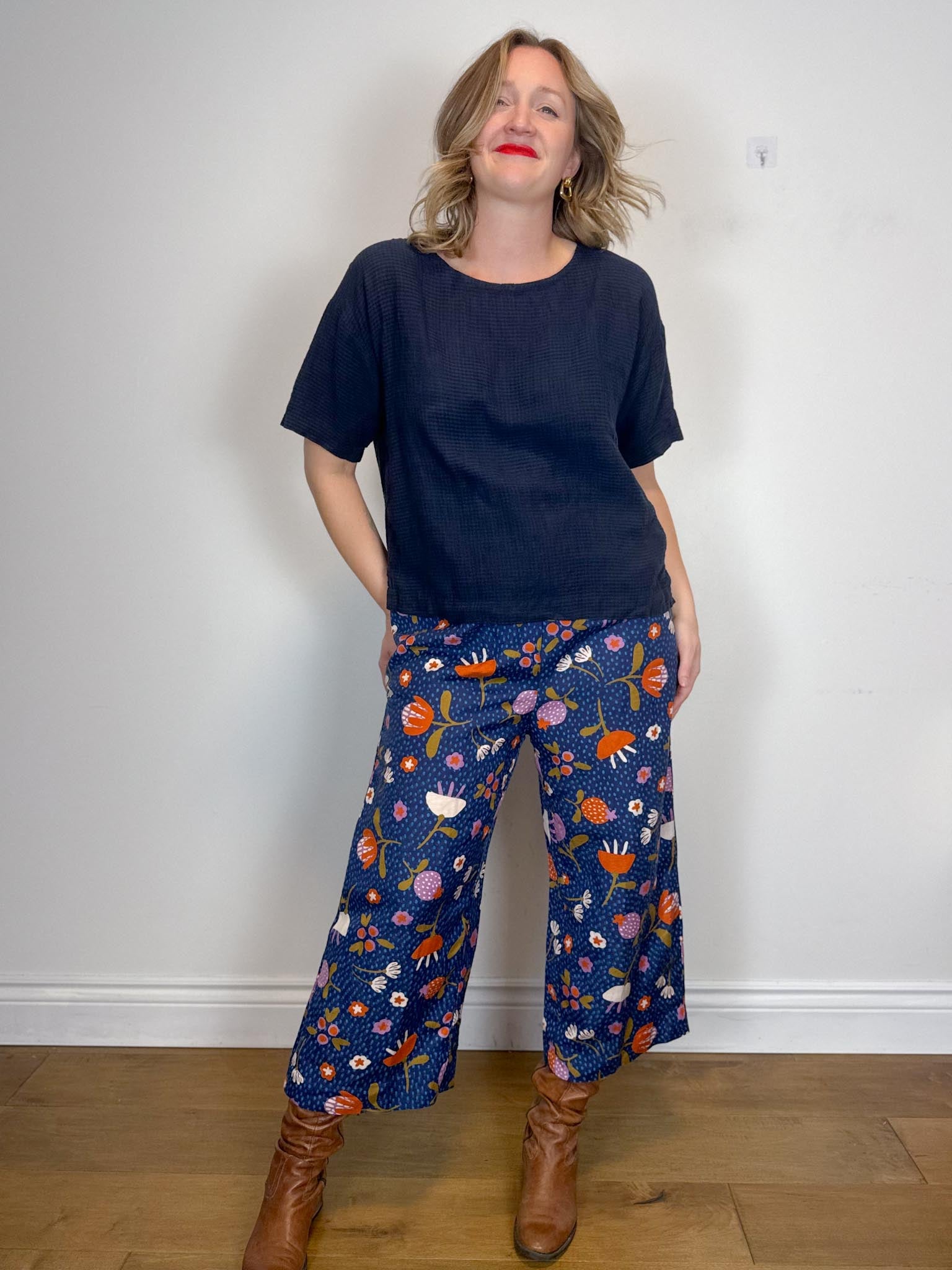 For sizing reference in the photos above, I am 5’9 and usually wear a M-L in tops and a size L / 10-12 depending on the brand in bottoms. My measurements are as follows: bust is 37/38” waist is 32” and hips are 43”. My Mom is 5’5 and usually wears a size small in tops and size 4 in bottoms depending on the brand. Her measurements are as follows: bust is 32” , her waist is 28” and her hips are 36.5”.