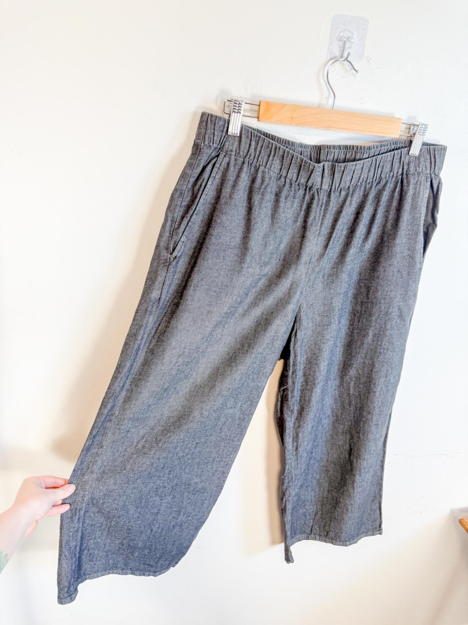 Eileen Fisher Cropped Wide Leg Pants in Grey (Size M)