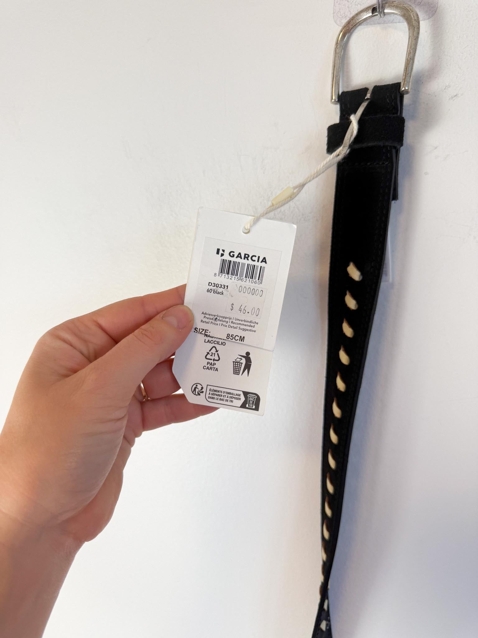 GARCIA Black & Cream Leather Belt NWT (Size M)