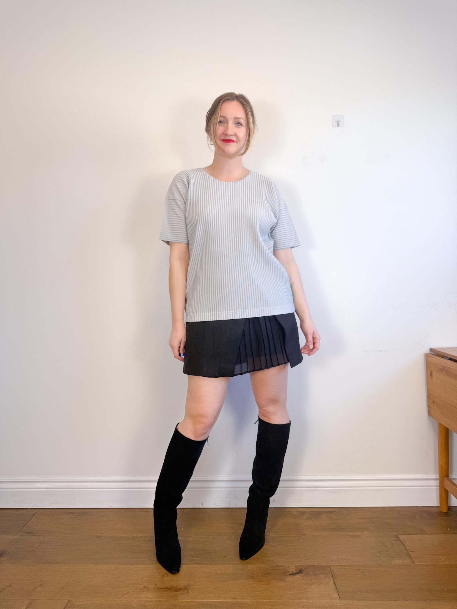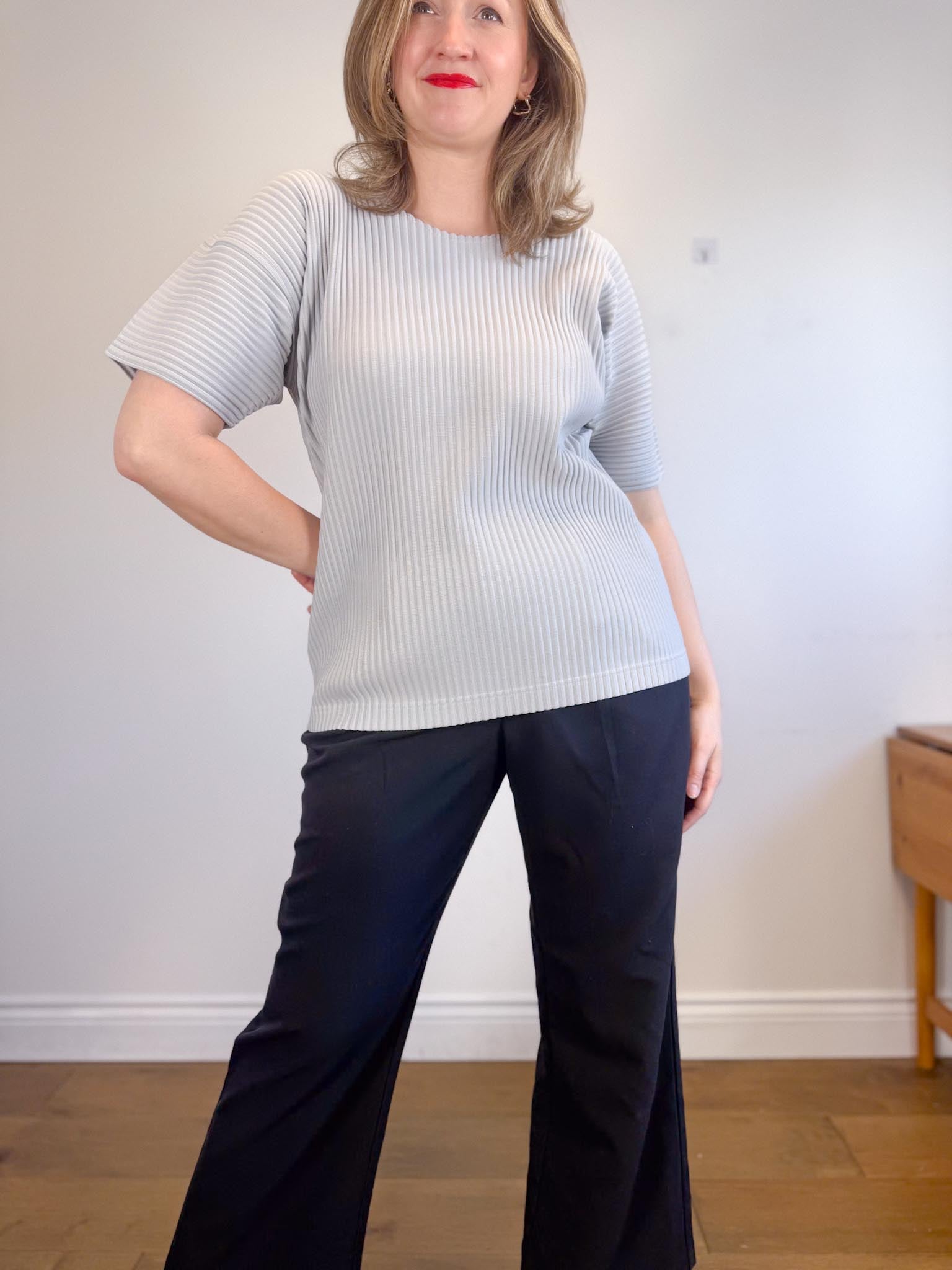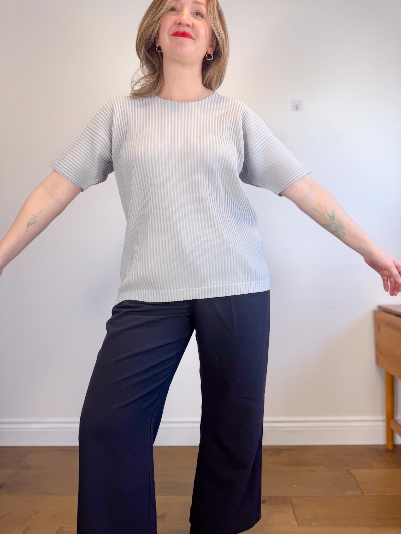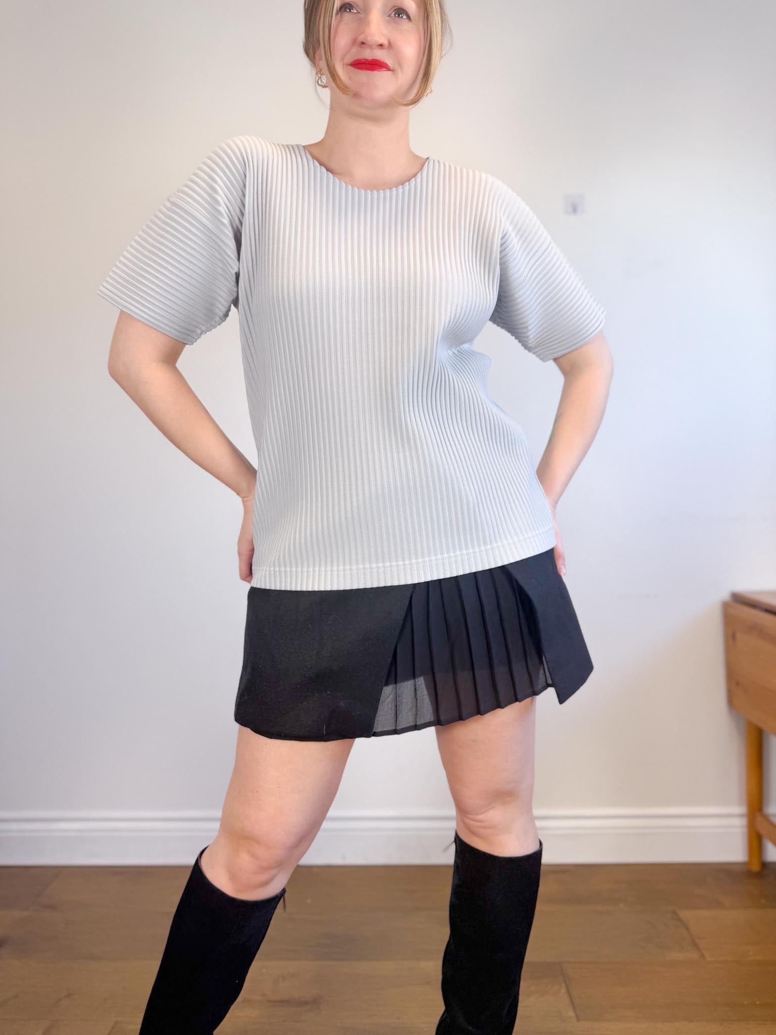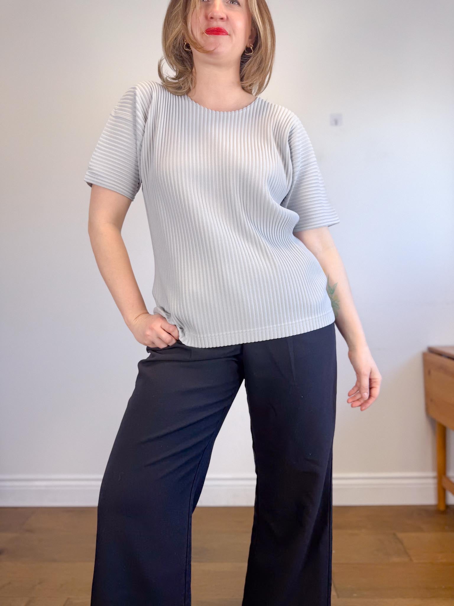 Issey Miyake Homme Plisse Designer Pleated T-Shirt in Grey (Size L)