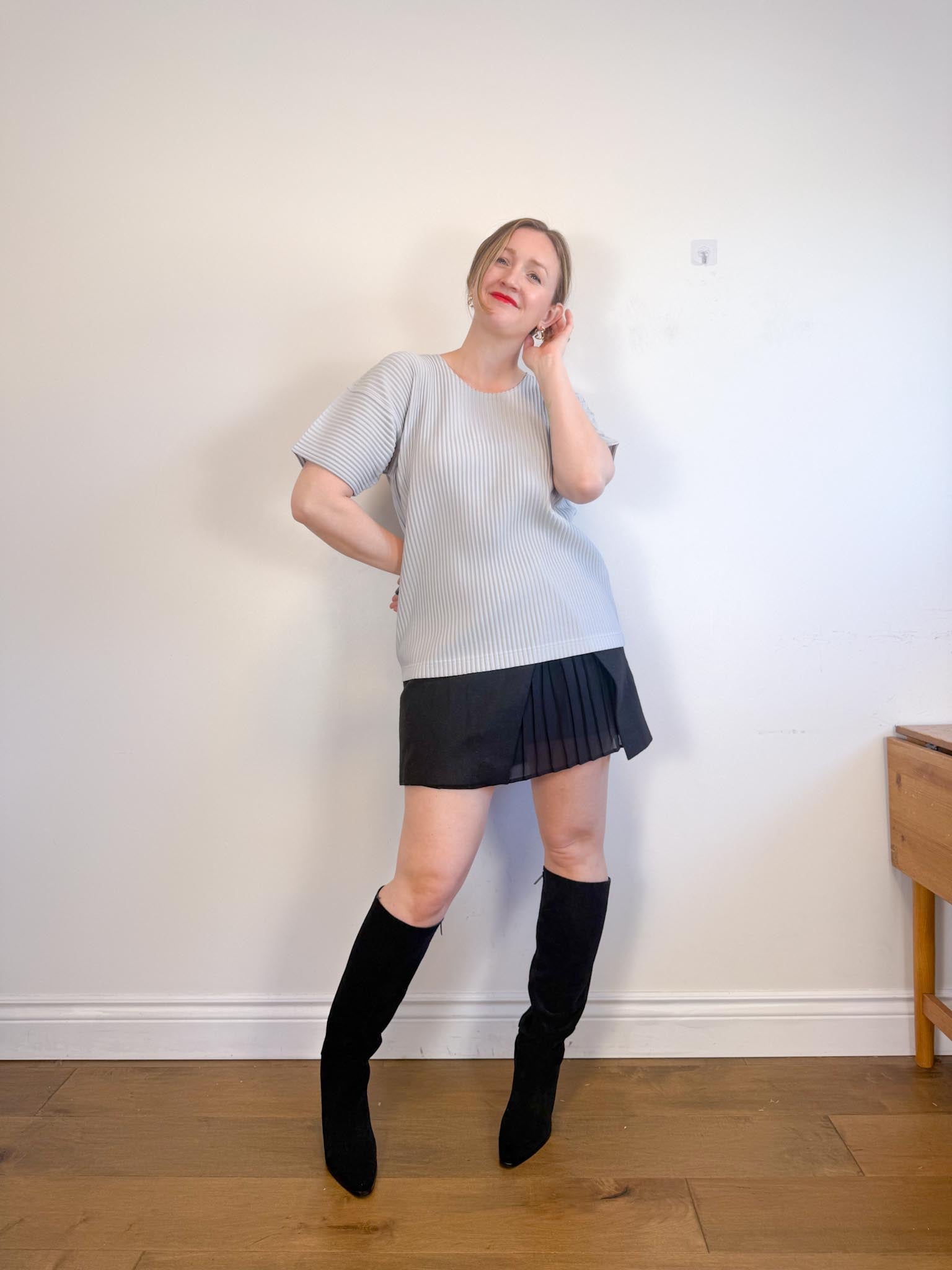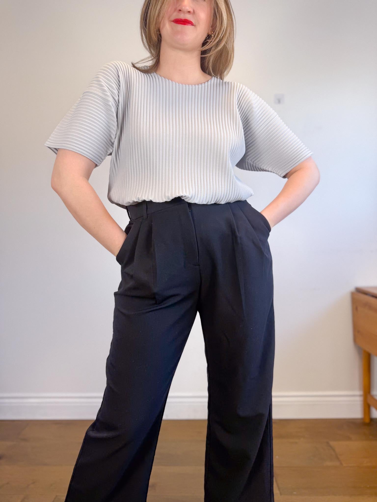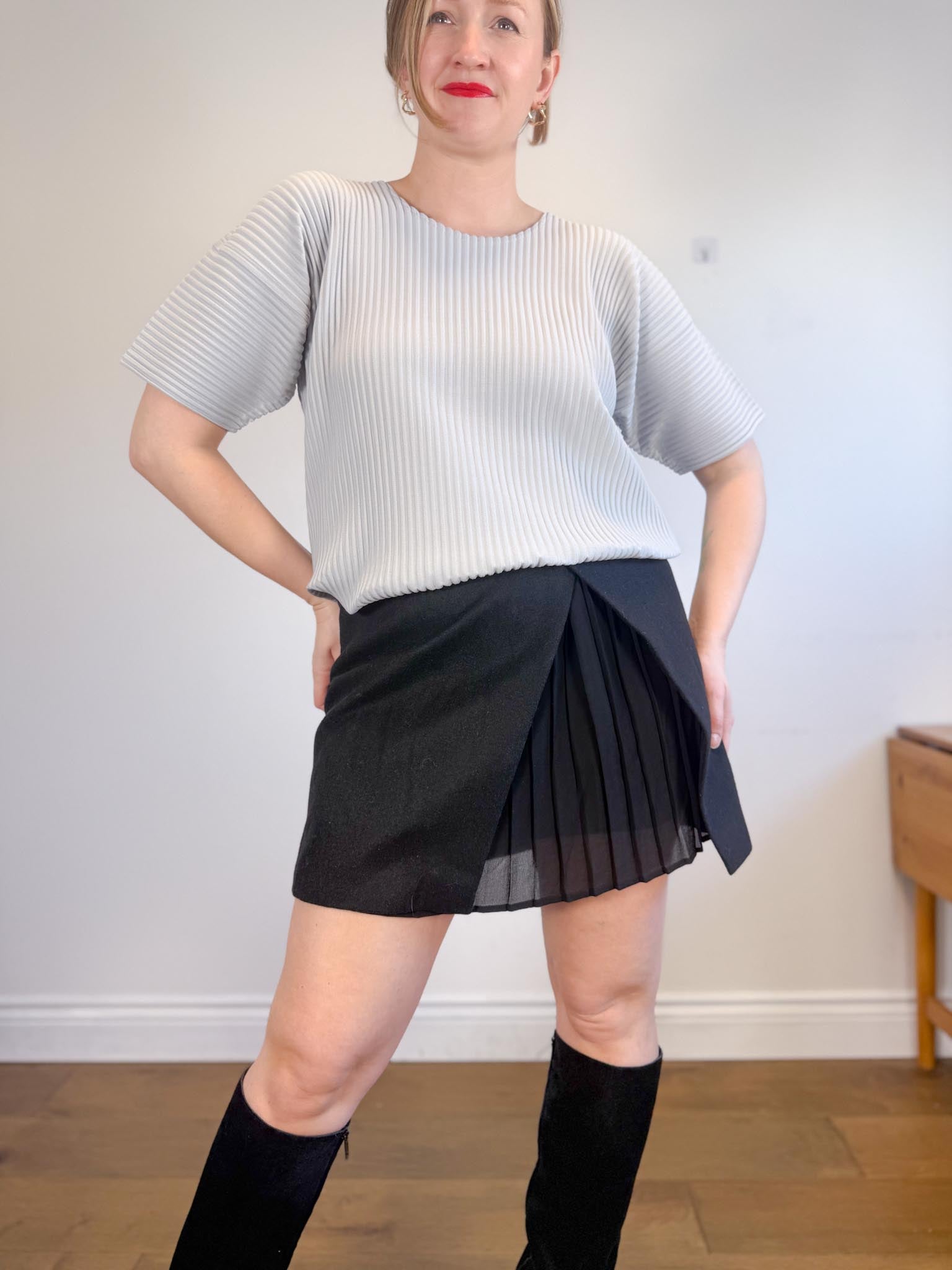 - The pleated construction on this piece allows for additional movement and flexibility in the fit