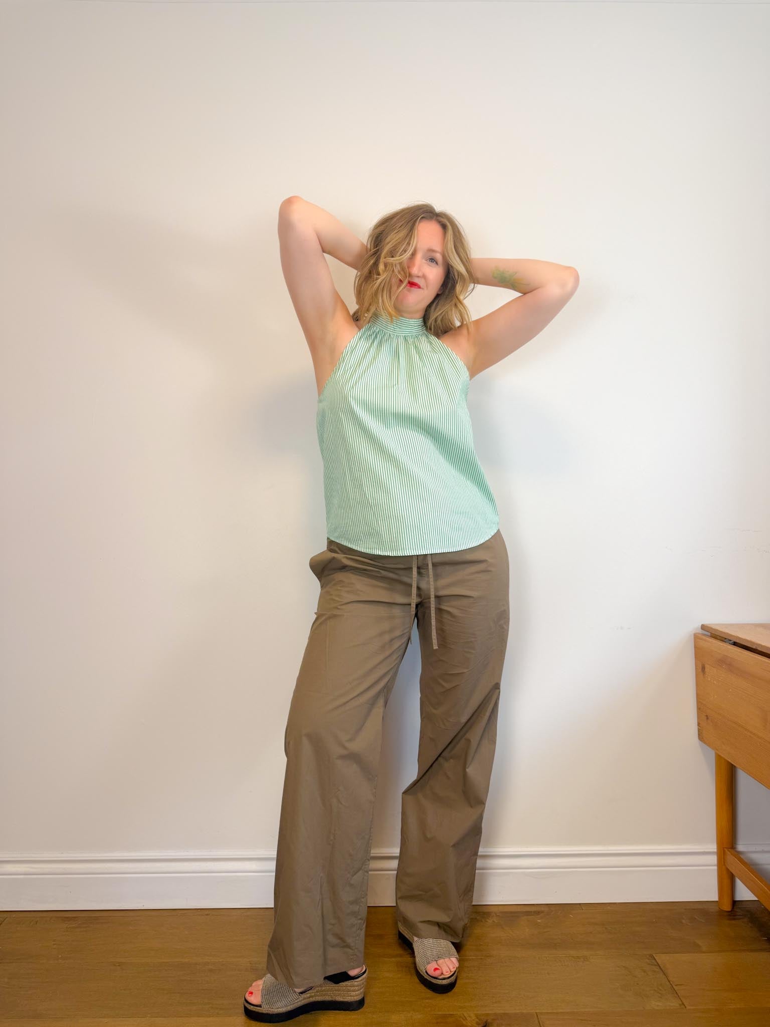 For sizing reference in the photos above, I am 5’9 and usually wear a M-L in tops and a size L / 10-12 depending on the brand in bottoms. My measurements are as follows: bust is 37/38” waist is 32” and hips are 43”. My Mom is 5’5 and usually wears a size small in tops and size 4 in bottoms depending on the brand. Her measurements are as follows: bust is 32” , her waist is 28” and her hips are 36.5”.