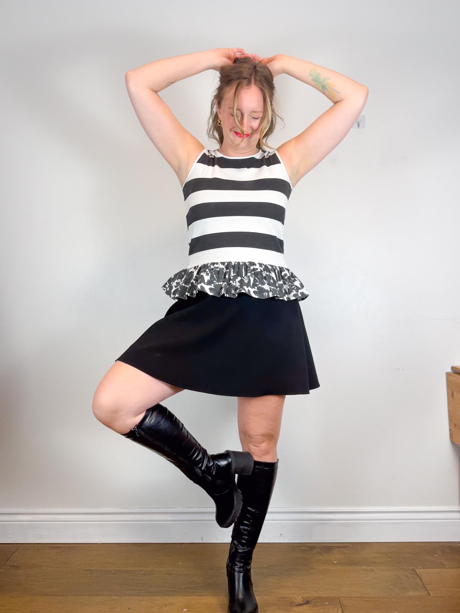 For sizing reference in the photos above, I am 5’9 and usually wear a M-L in tops and a size L / 10-12 depending on the brand in bottoms. My measurements are as follows: bust is 37/38” waist is 32” and hips are 43”. My Mom is 5’5 and usually wears a size small in tops and size 4 in bottoms depending on the brand. Her measurements are as follows: bust is 32” , her waist is 28” and her hips are 36.5”.