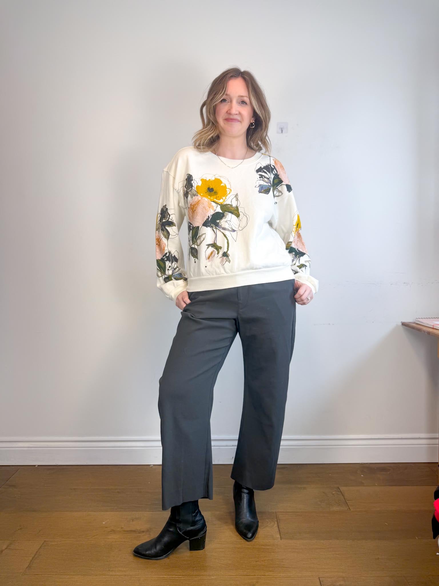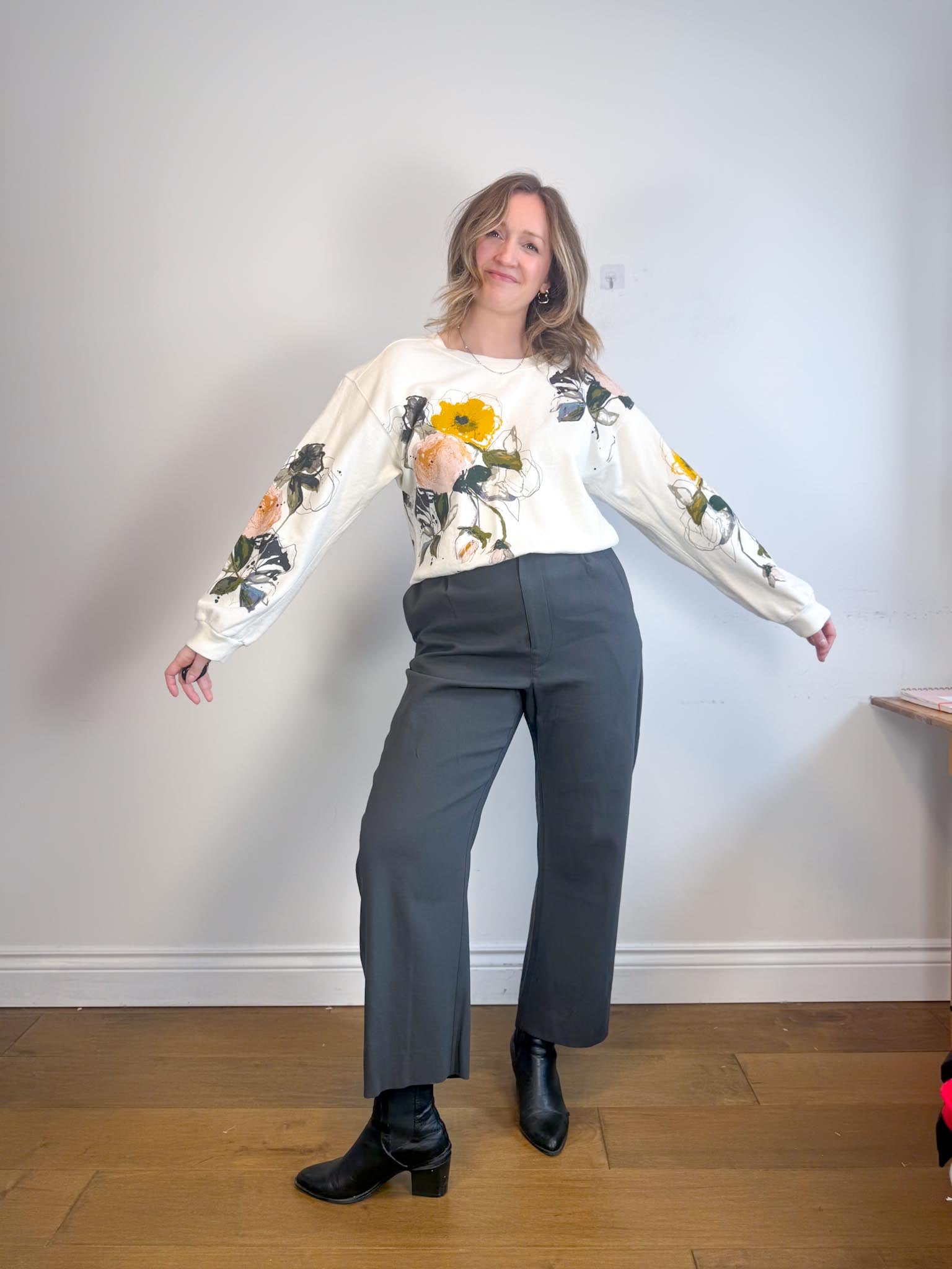 For sizing reference in the photos above, I am 5’9 and usually wear a M-L in tops and a size L / 10-12 depending on the brand in bottoms. My measurements are as follows: bust is 37/38” waist is 32” and hips are 43”. My Mom is 5’5 and usually wears a size small in tops and size 4 in bottoms depending on the brand. Her measurements are as follows: bust is 32” , her waist is 28” and her hips are 36.5”.