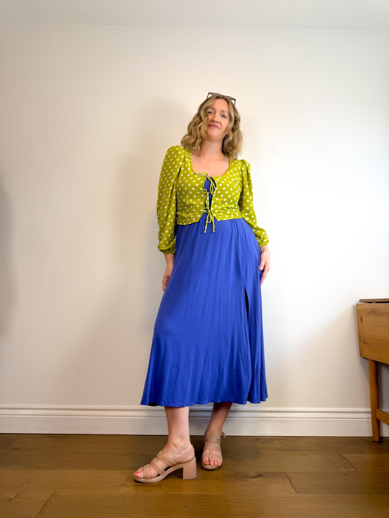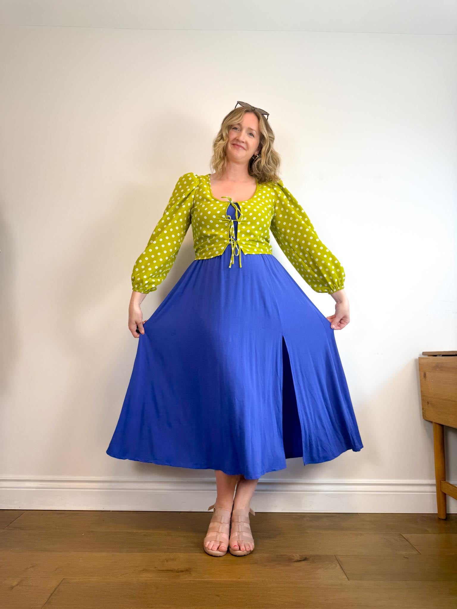 For sizing reference in the photos above, I am 5’9 and usually wear a M-L in tops and a size L / 10-12 depending on the brand in bottoms. My measurements are as follows: bust is 37/38” waist is 32” and hips are 43”. My Mom is 5’5 and usually wears a size small in tops and size 4 in bottoms depending on the brand. Her measurements are as follows: bust is 32” , her waist is 28” and her hips are 36.5”.