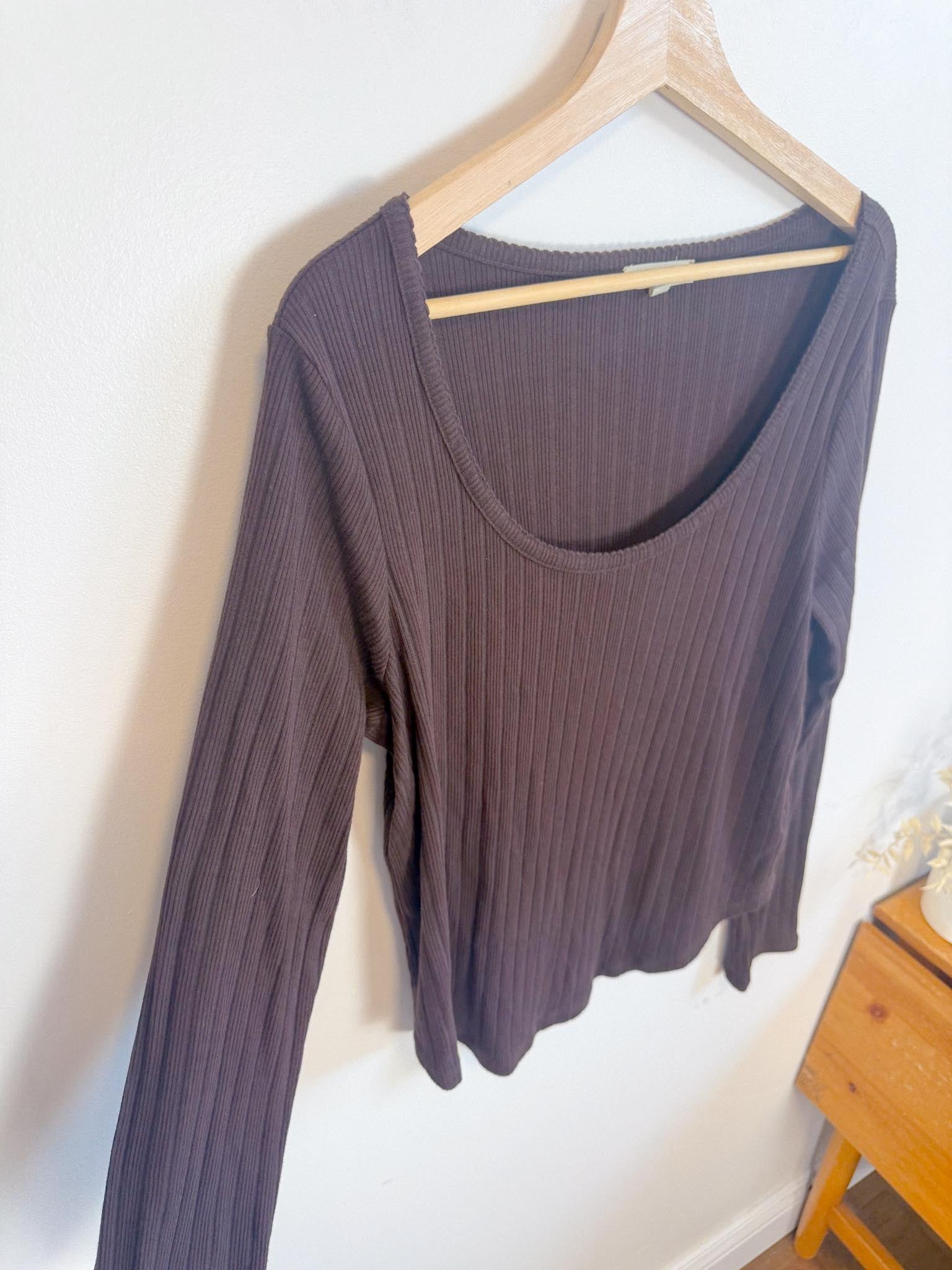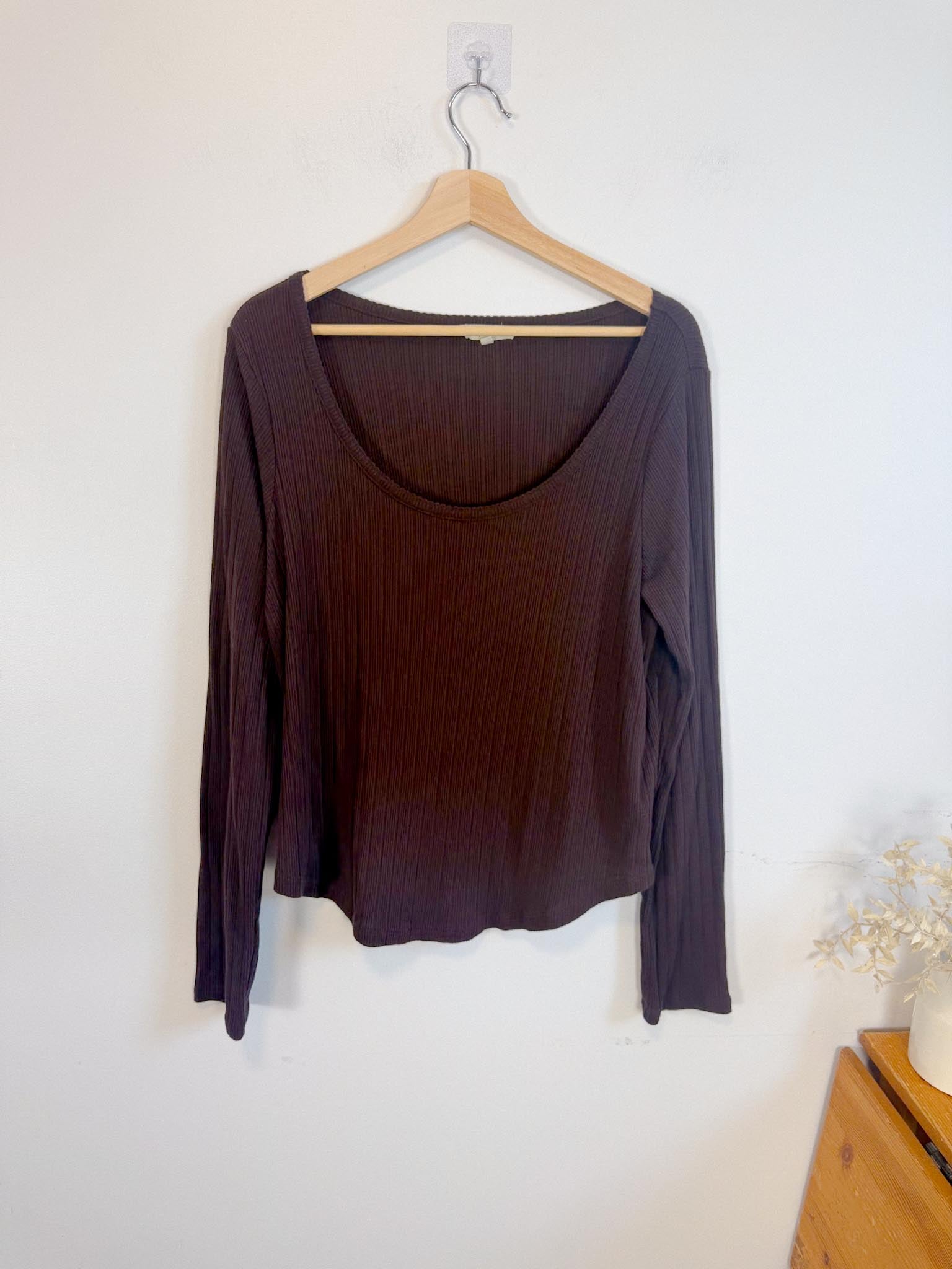 Madewell "Pointelle Long-Sleeve Scoopneck Tee in Brown" (Size 2XL)