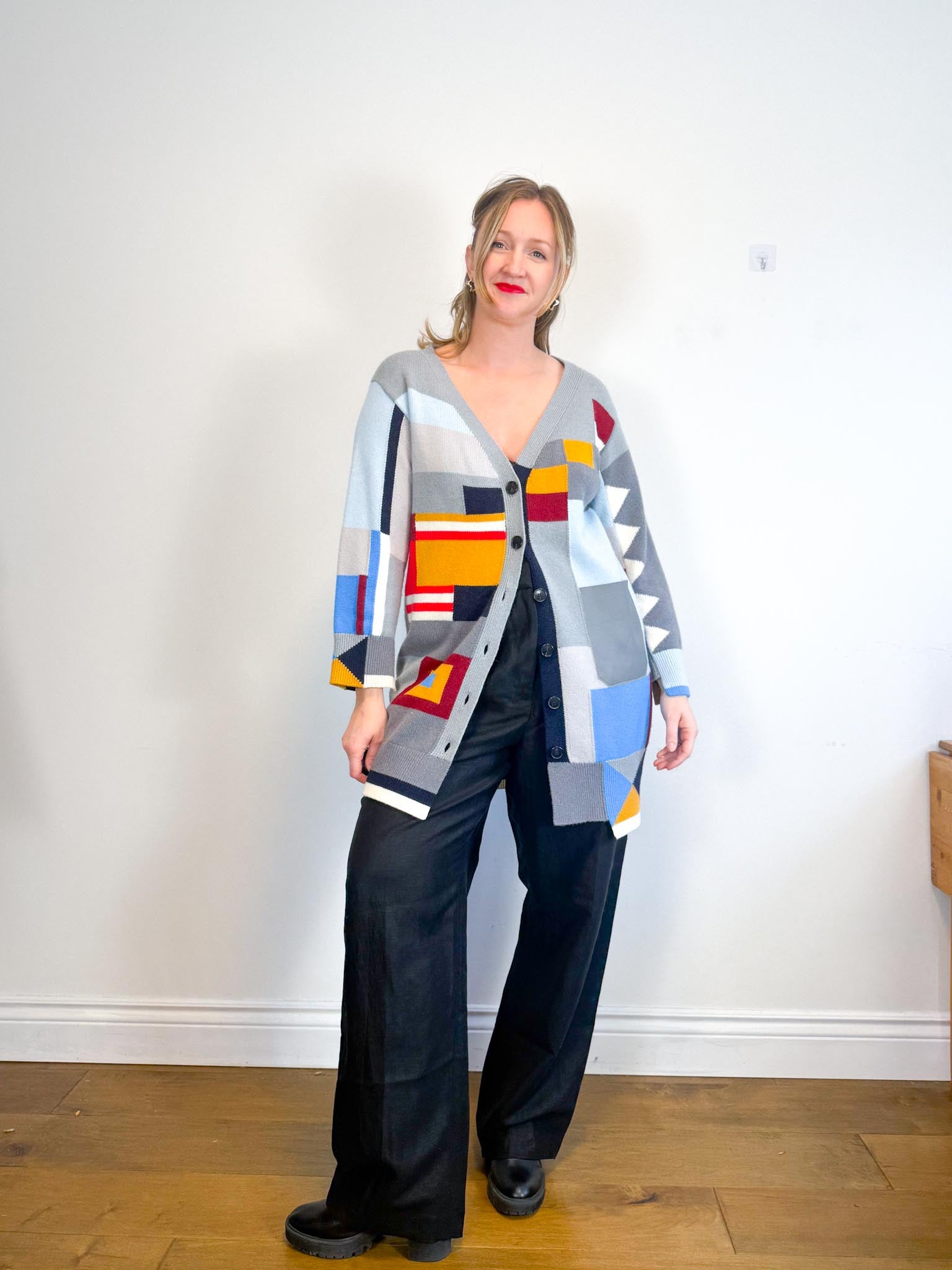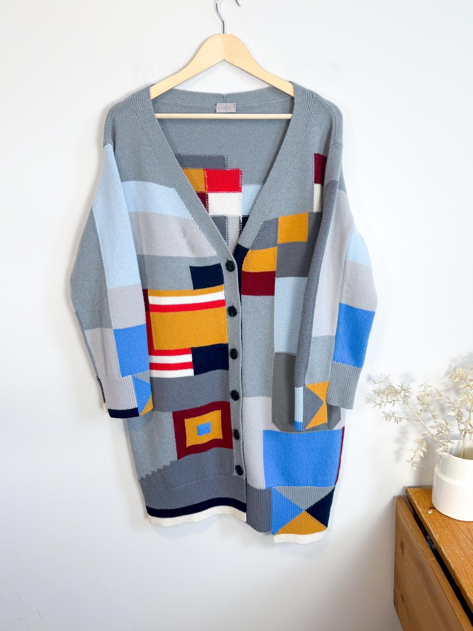 MRZ Designer Wool & Cashmere Colourblock Long Cardigan (Size XS-M)