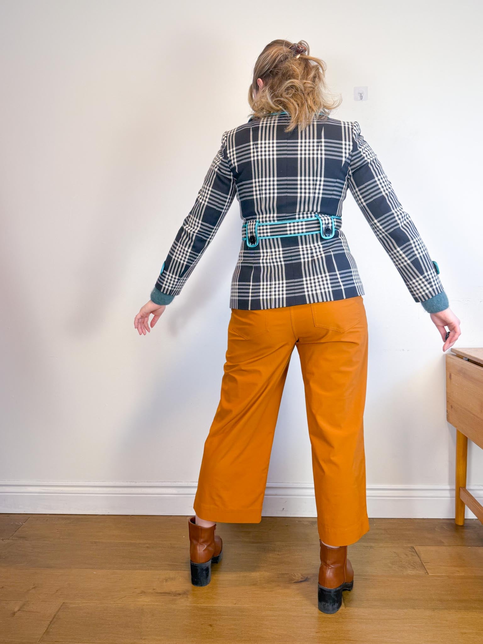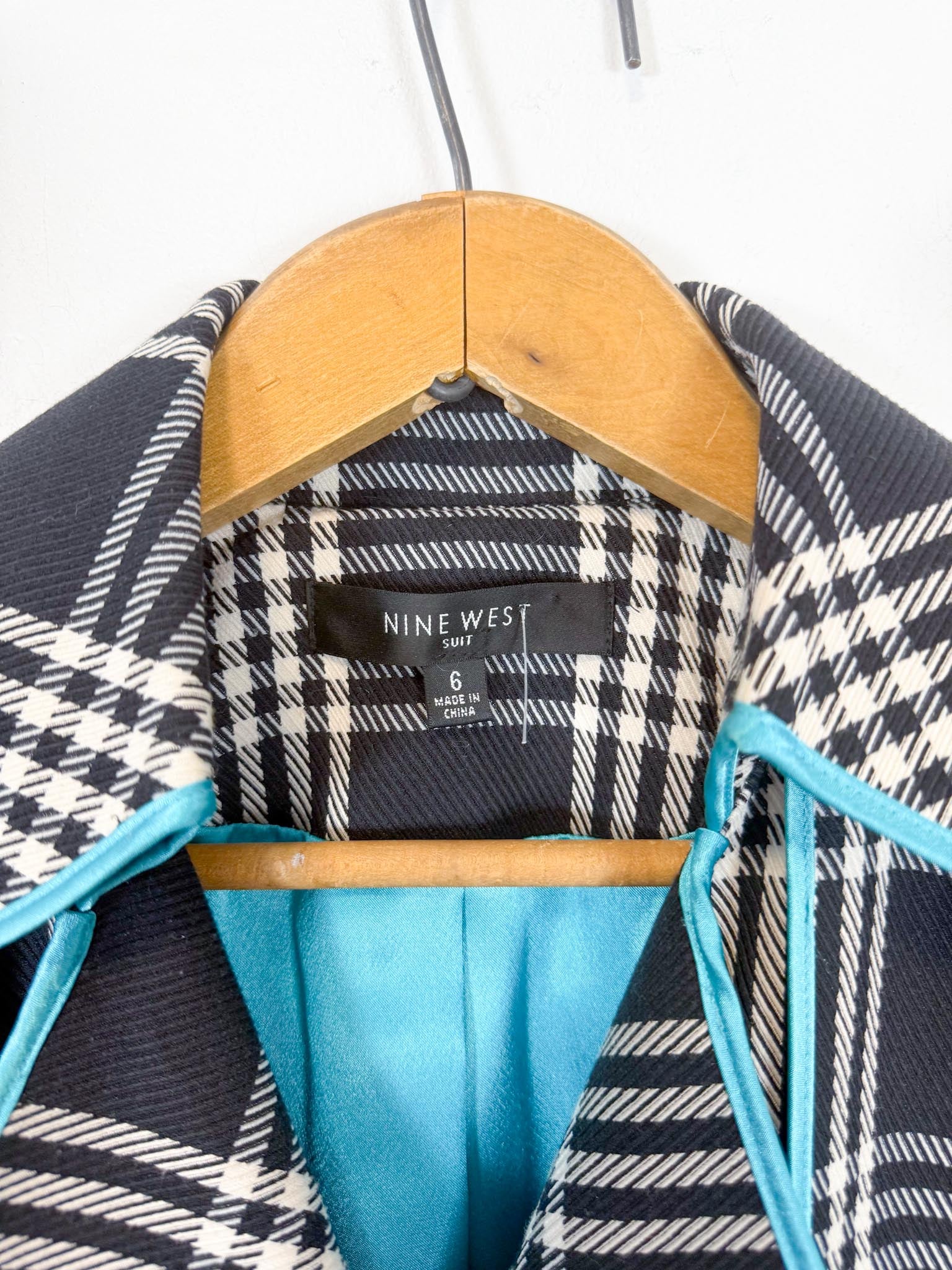 Nine West Aqua Plaid Trench Coat (Size S/M)