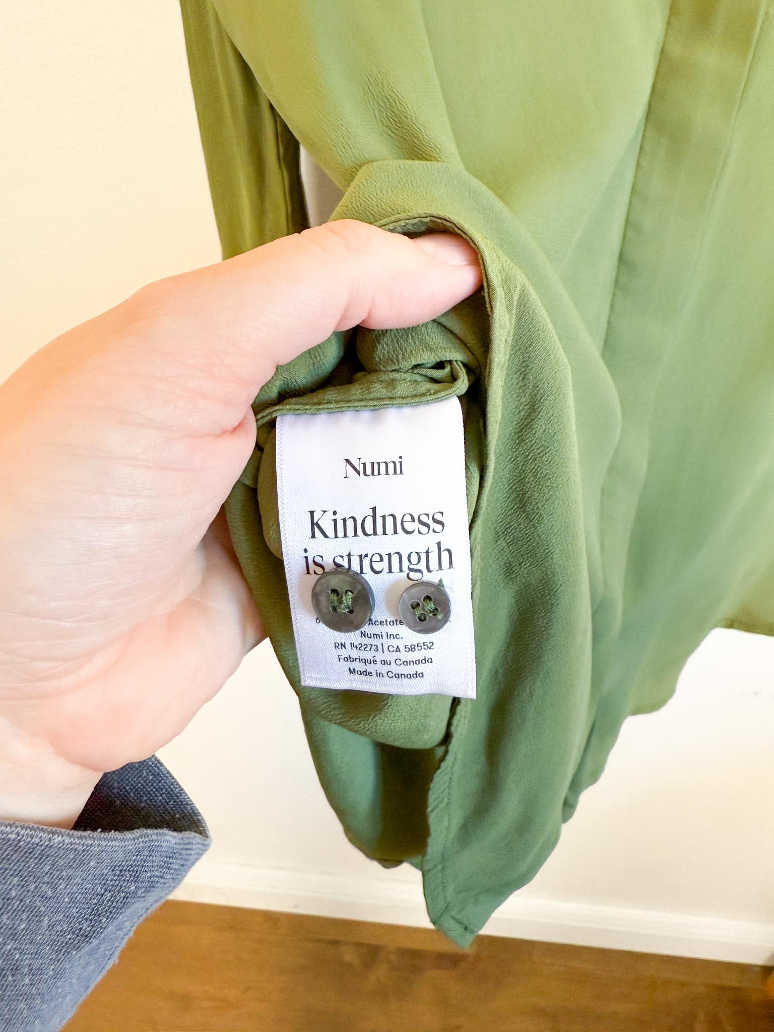 Numi Canadian "The Simone Button-Up Silk Blouse in Green" (Size M)