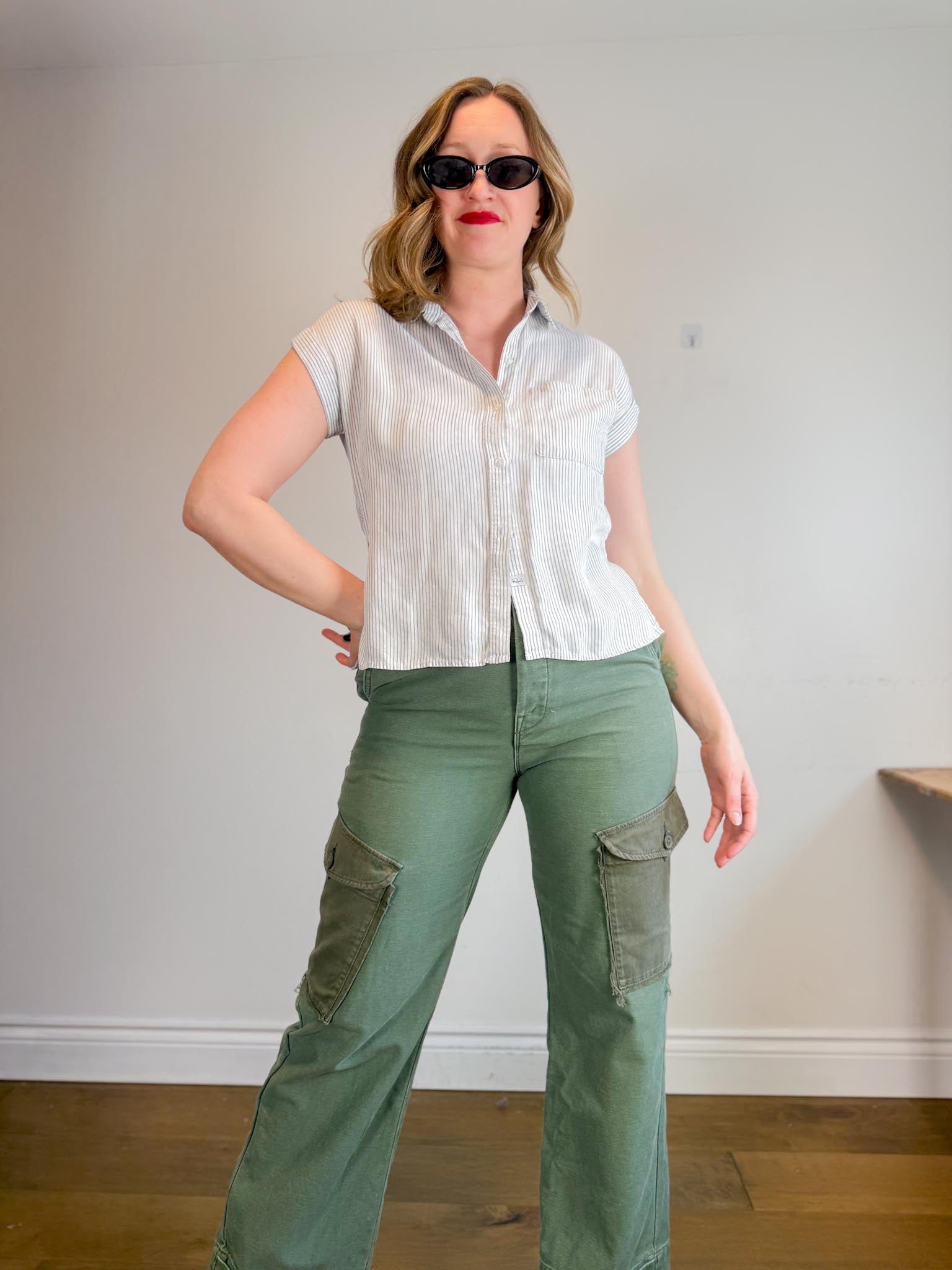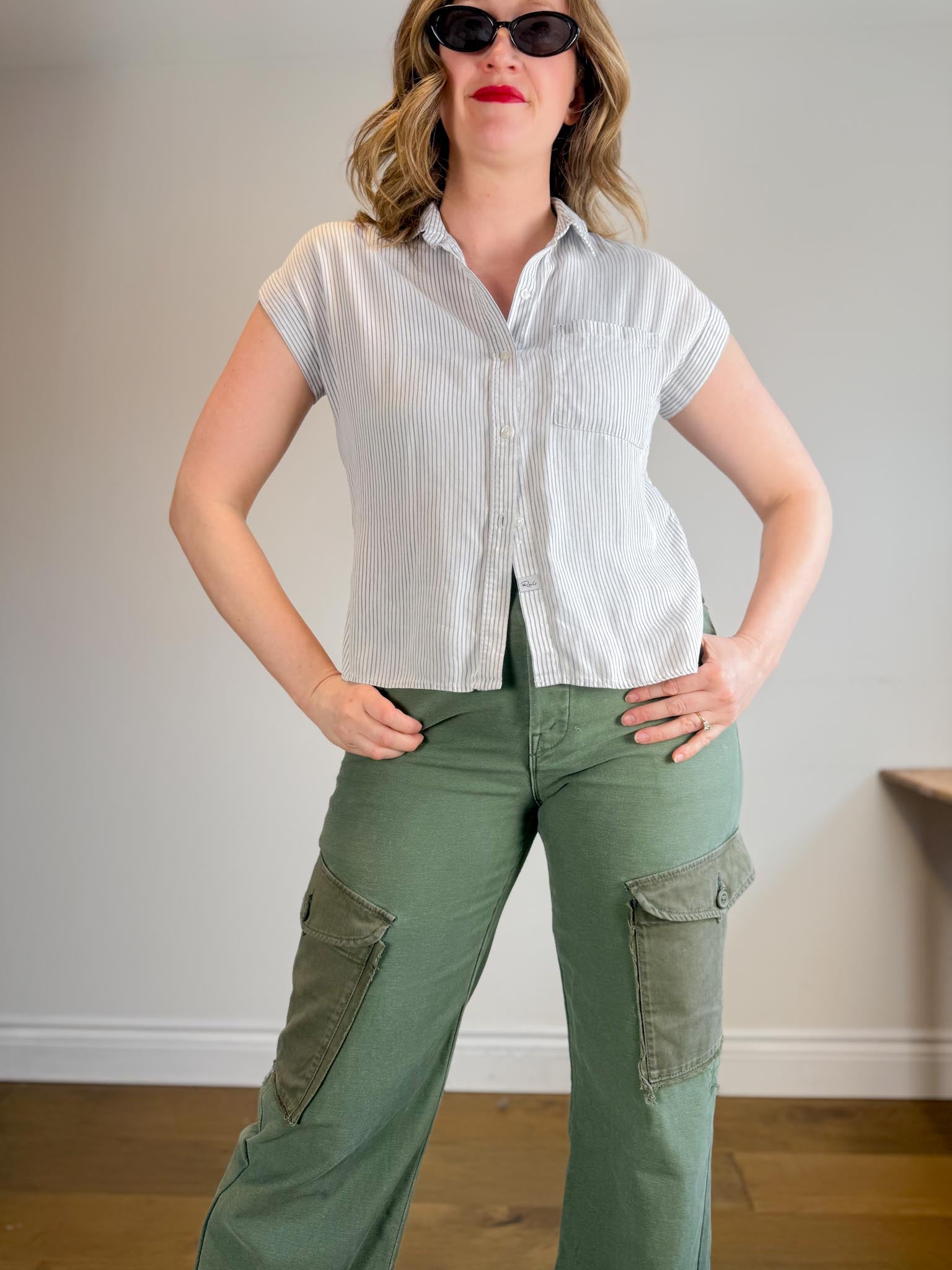 Rails "Whitney Short Sleeve Shirt in White/Black Pinstripe" (Size XS-M)