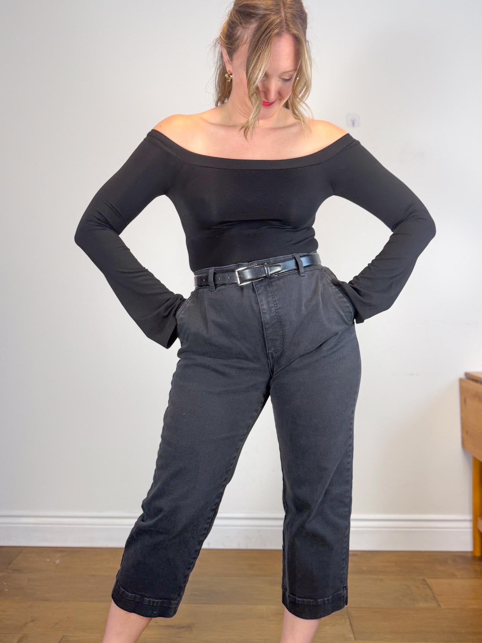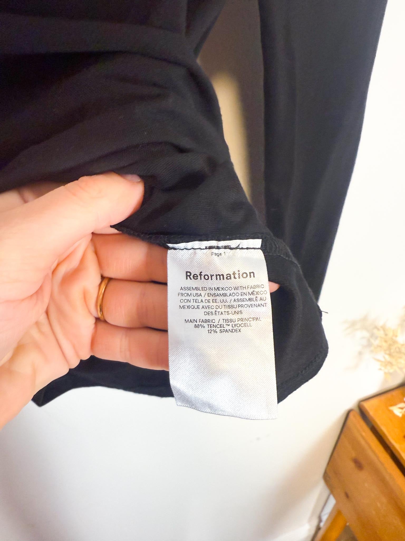 Reformation Off the Shoulder Cropped Long Sleeve Top in Black (Size S)