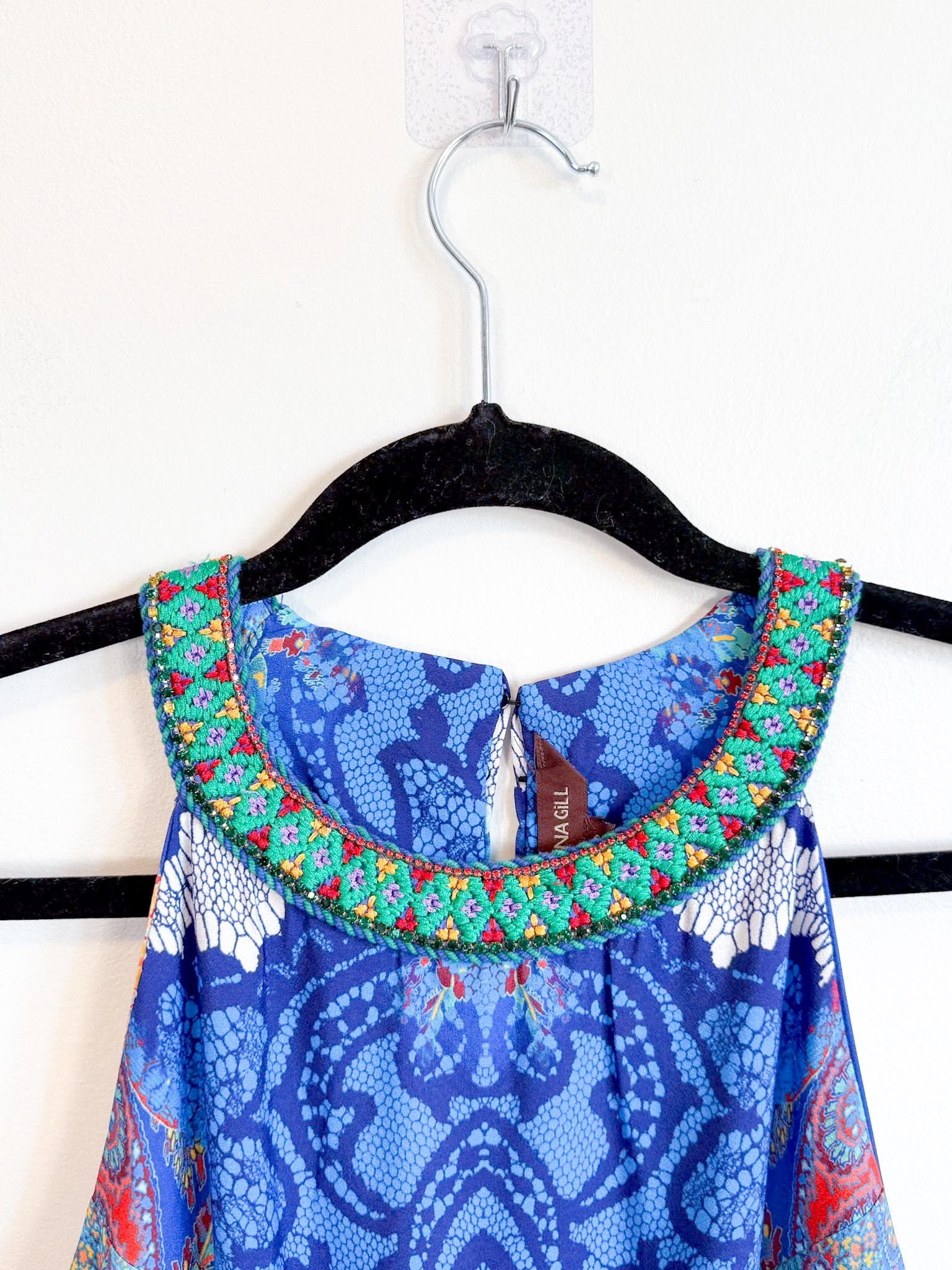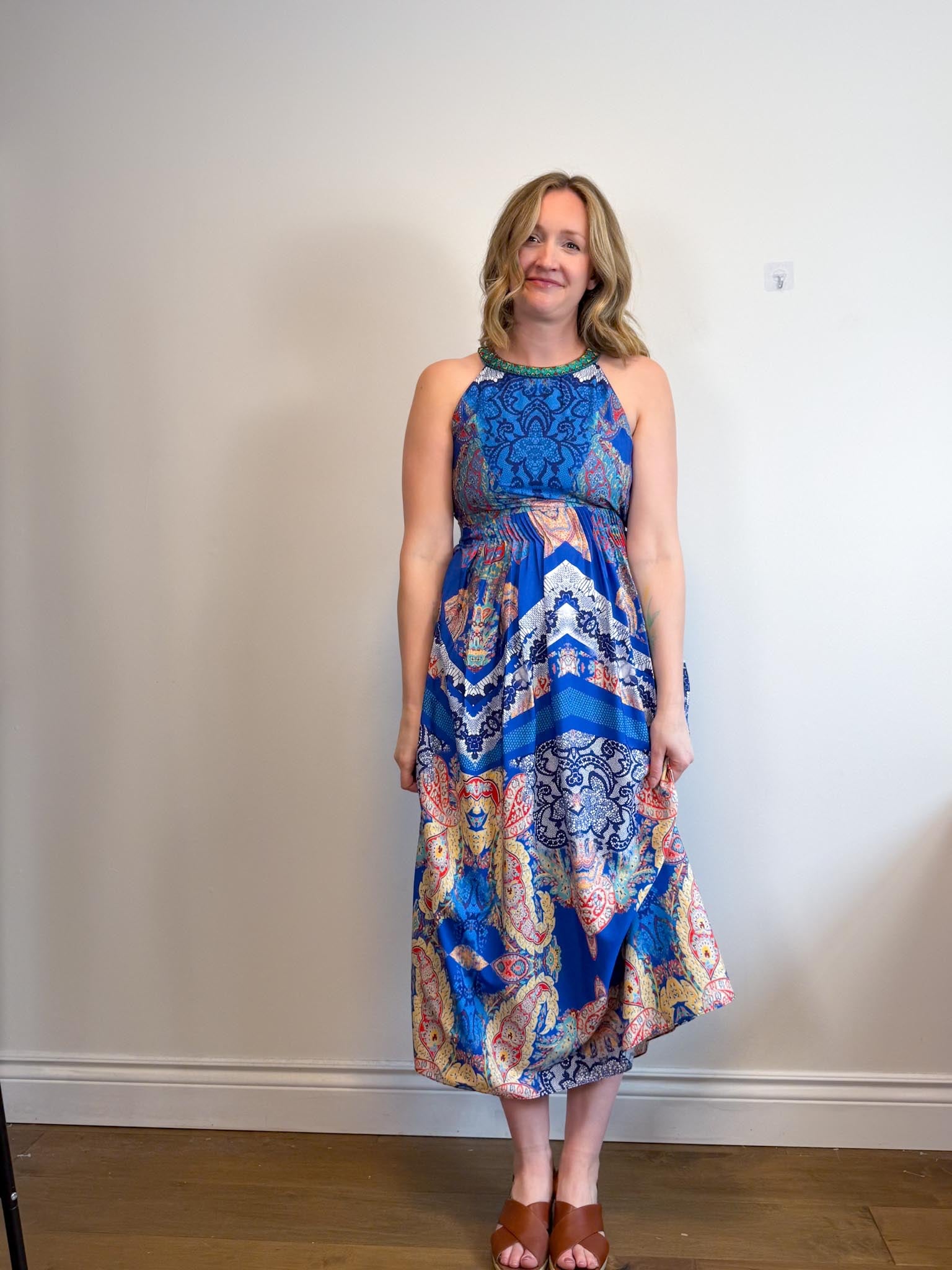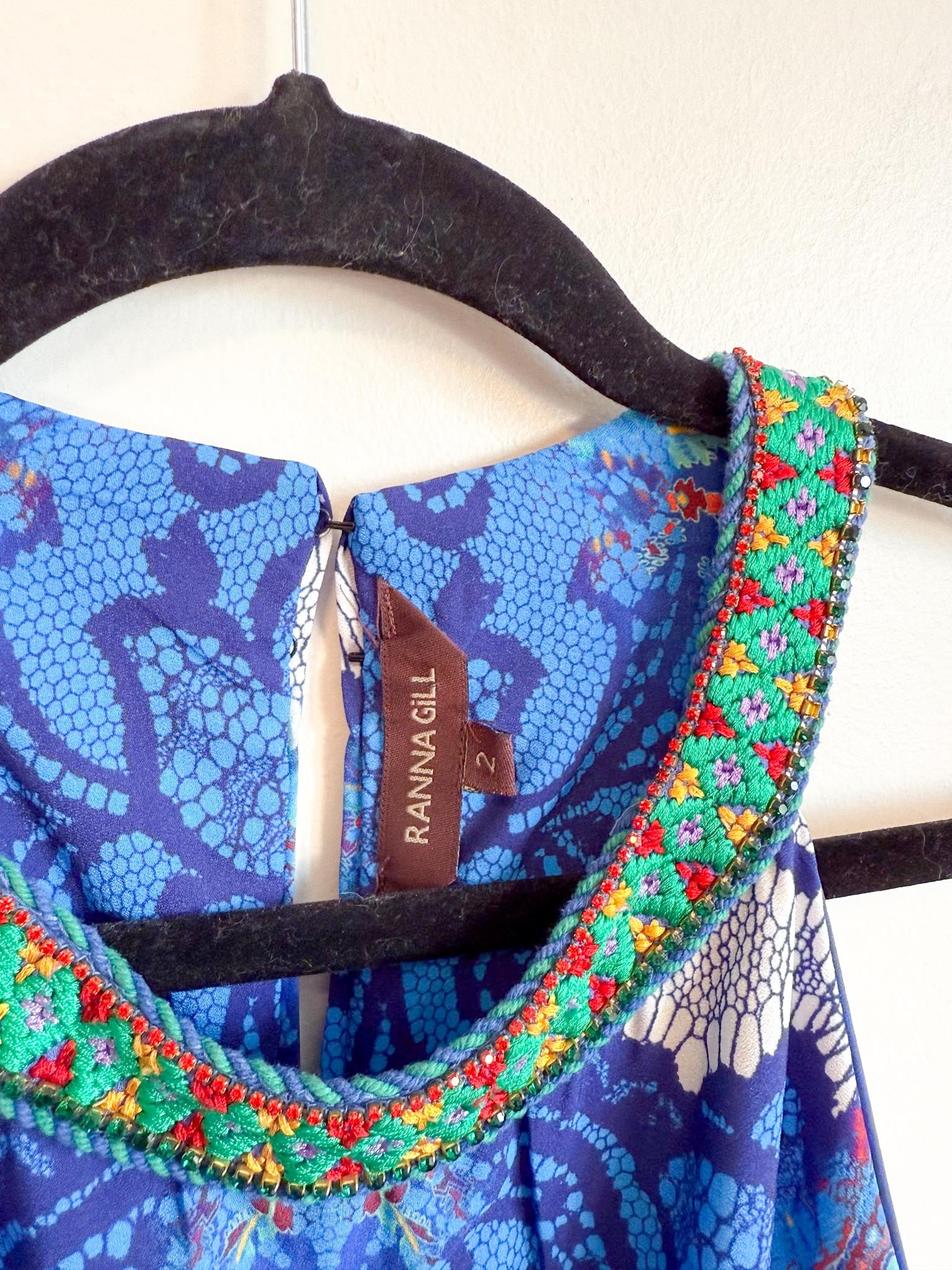RANNA GILL Embroidered Halter Midi Dress (Size S)