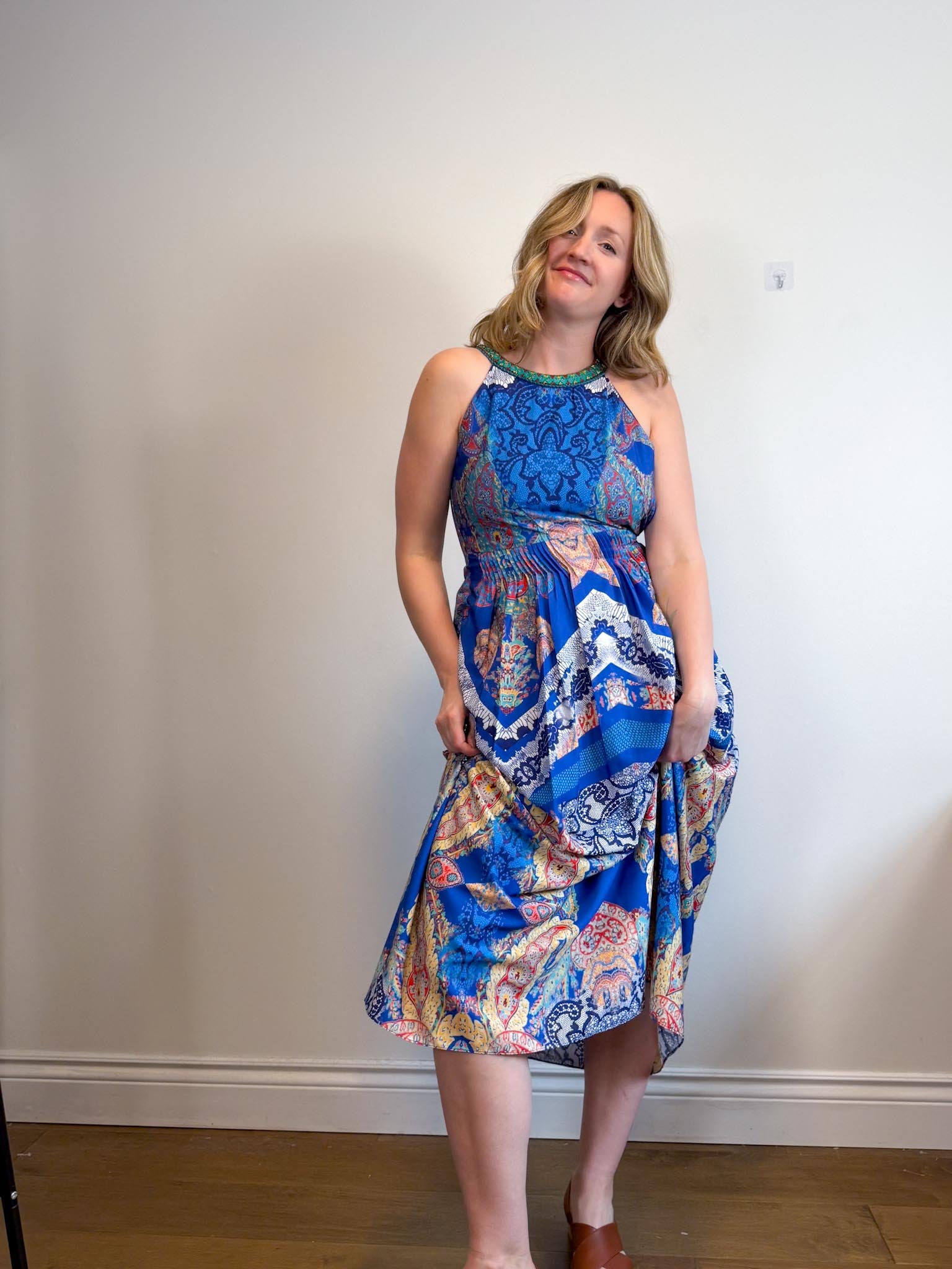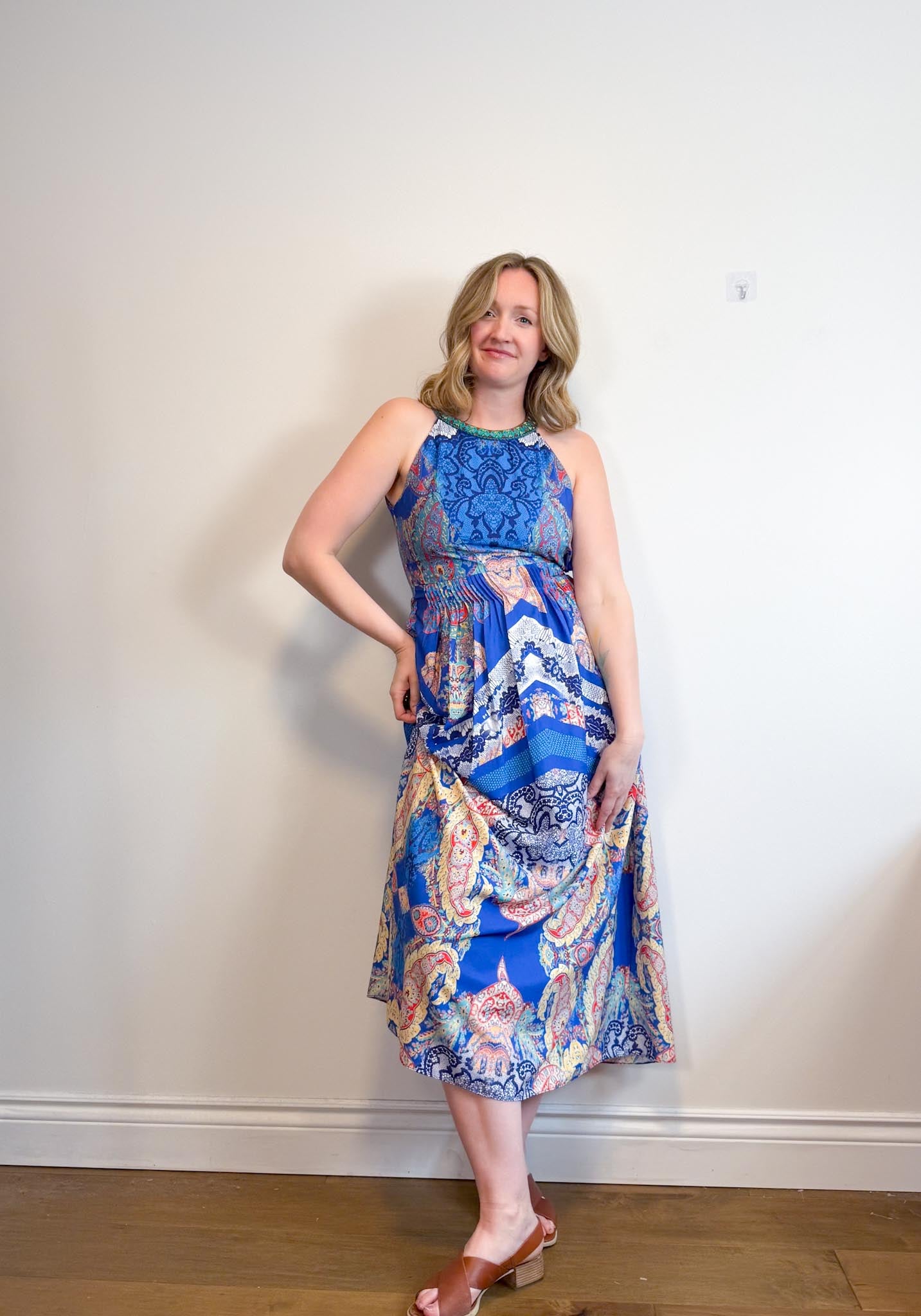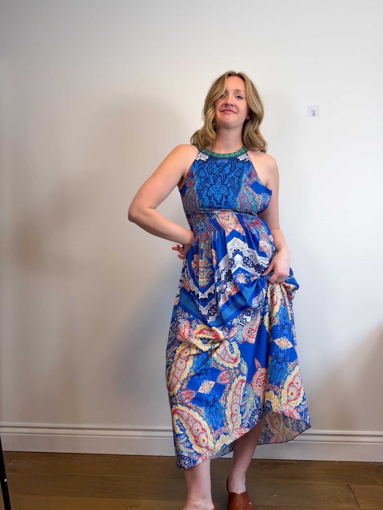 RANNA GILL Embroidered Halter Midi Dress (Size S)