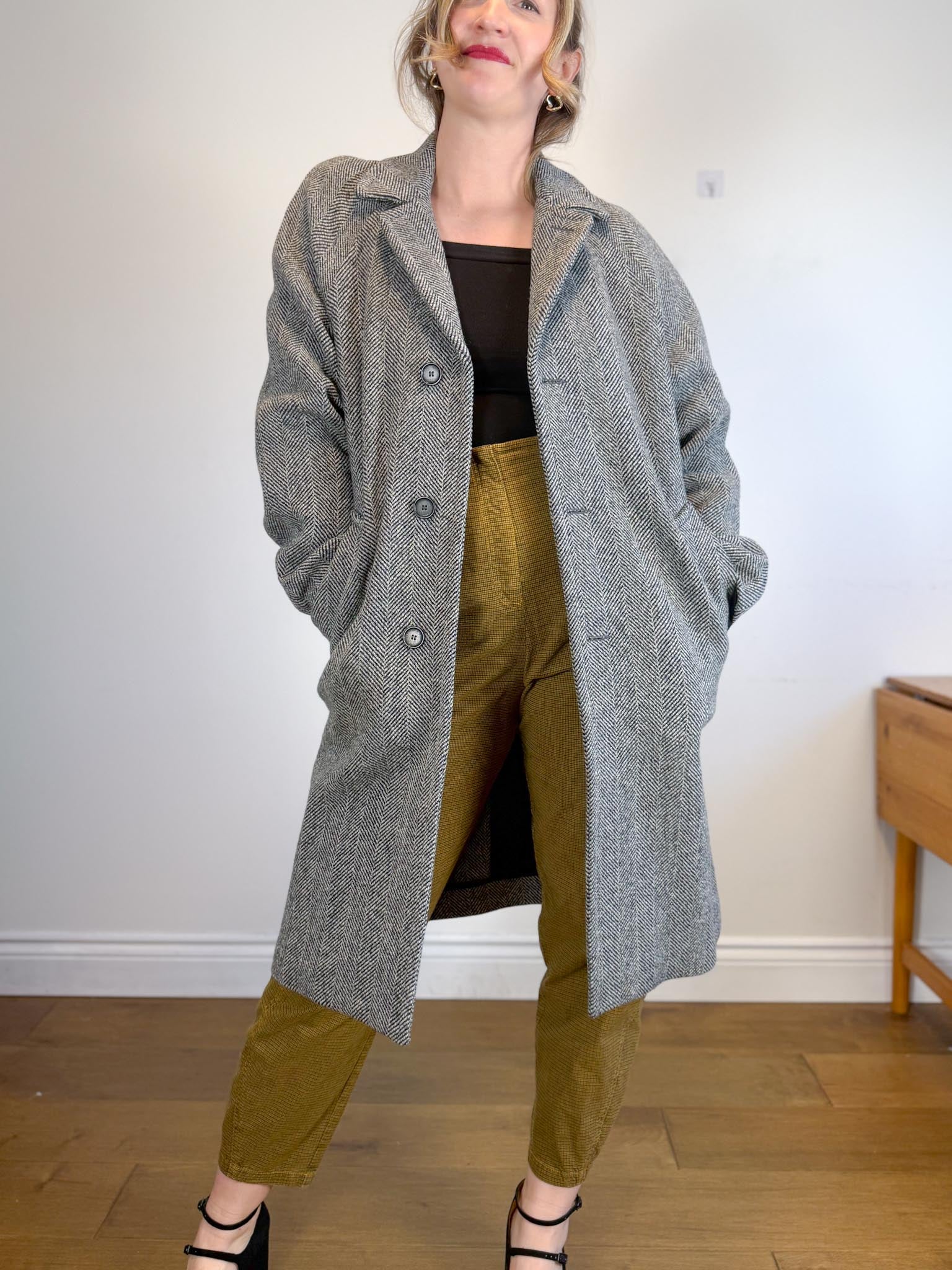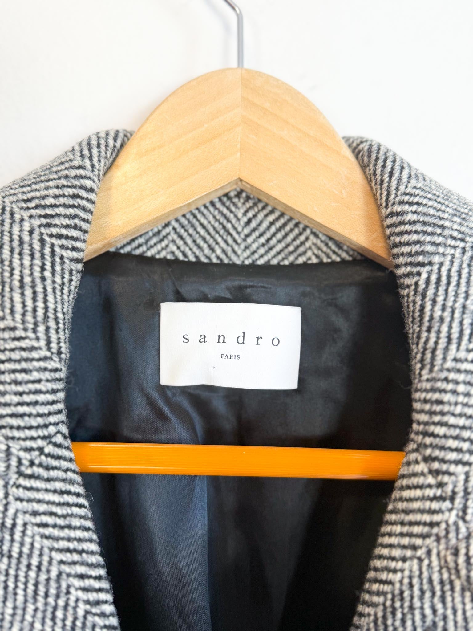 SANDRO Paris Houndstooth Wool Peacoat (Size M)