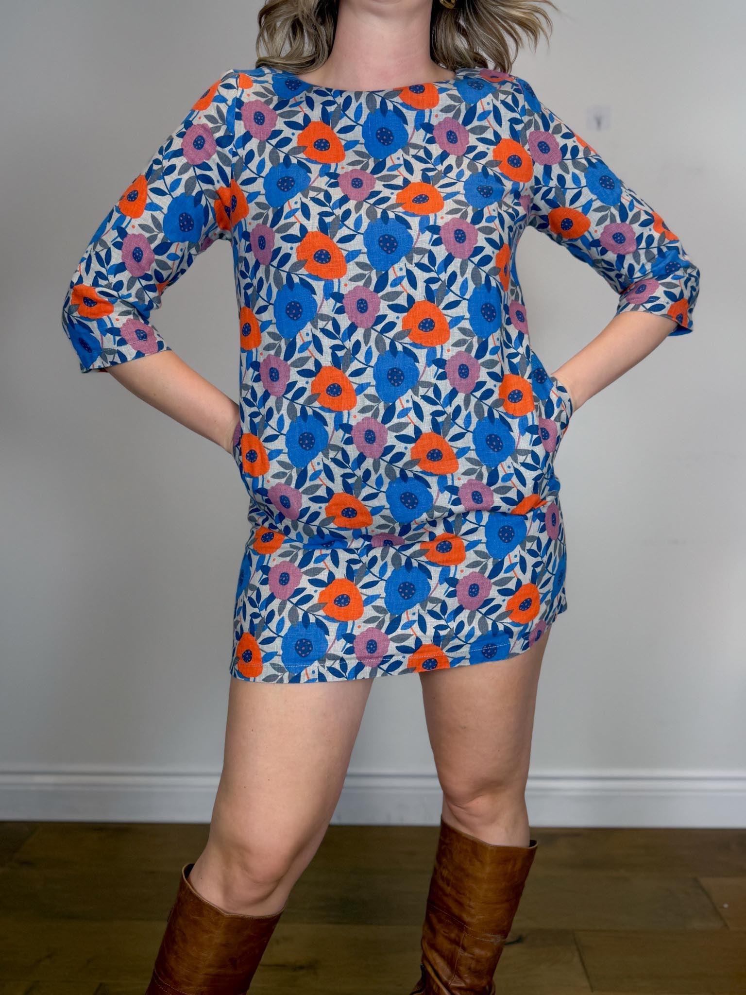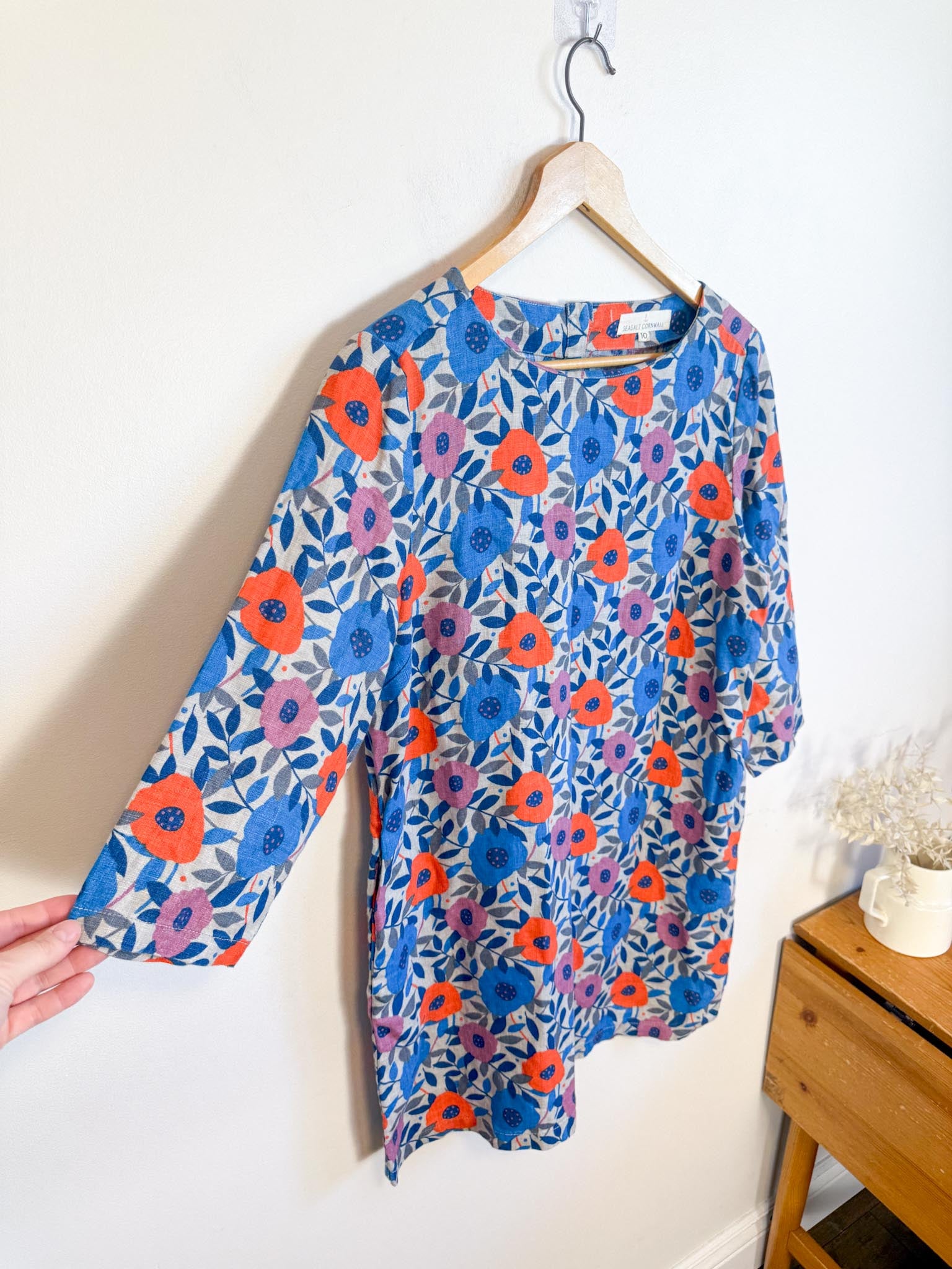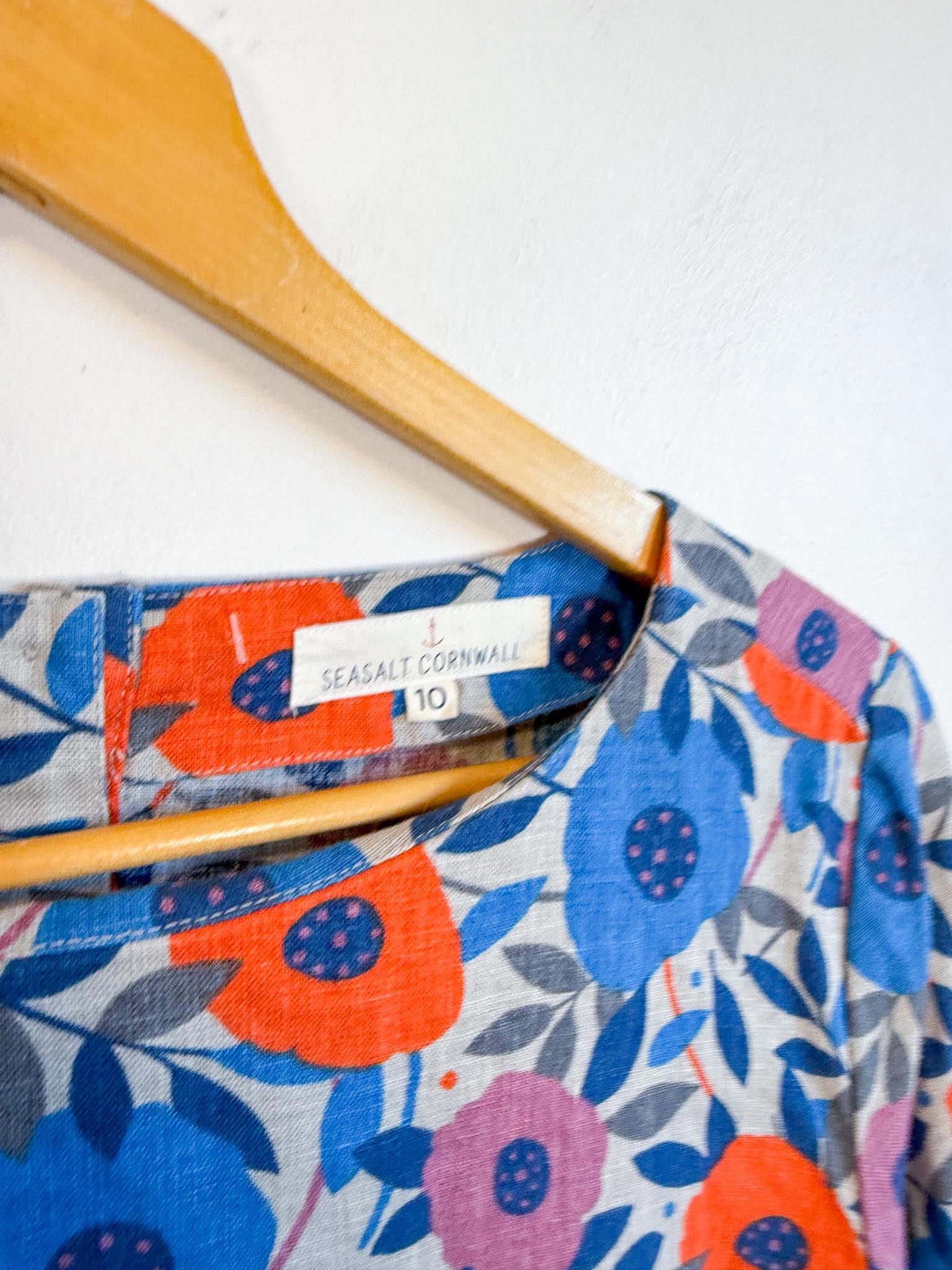SEASALT CORNWALL Linen Floral Tunic Mini Dress (Size M/L)
