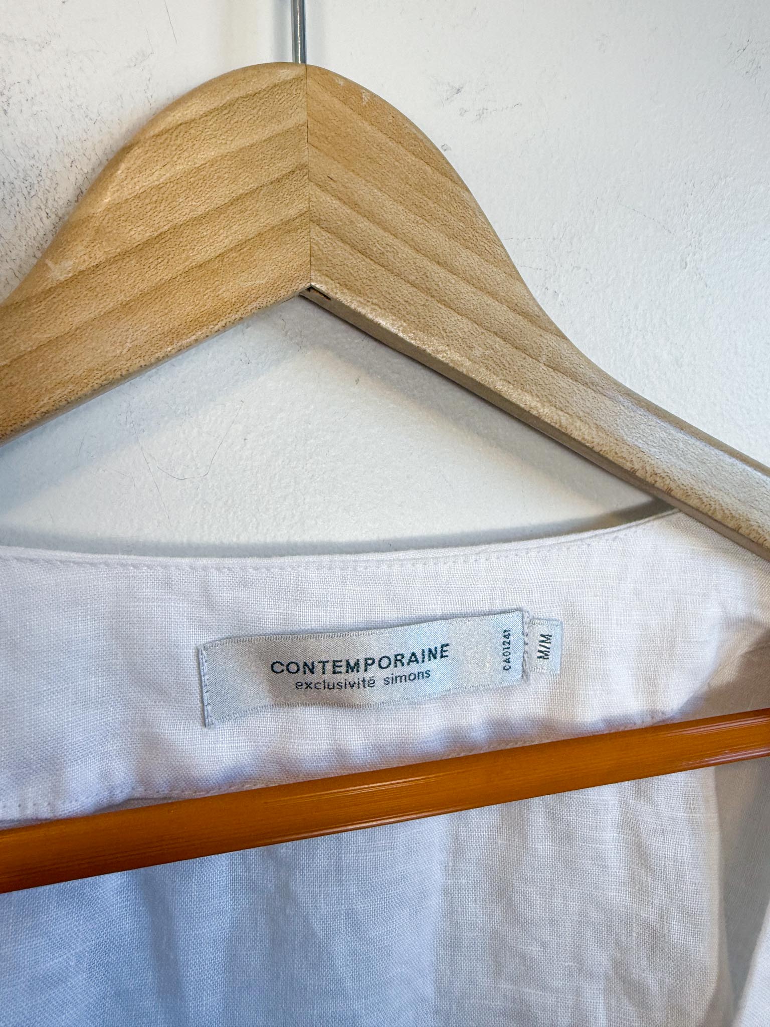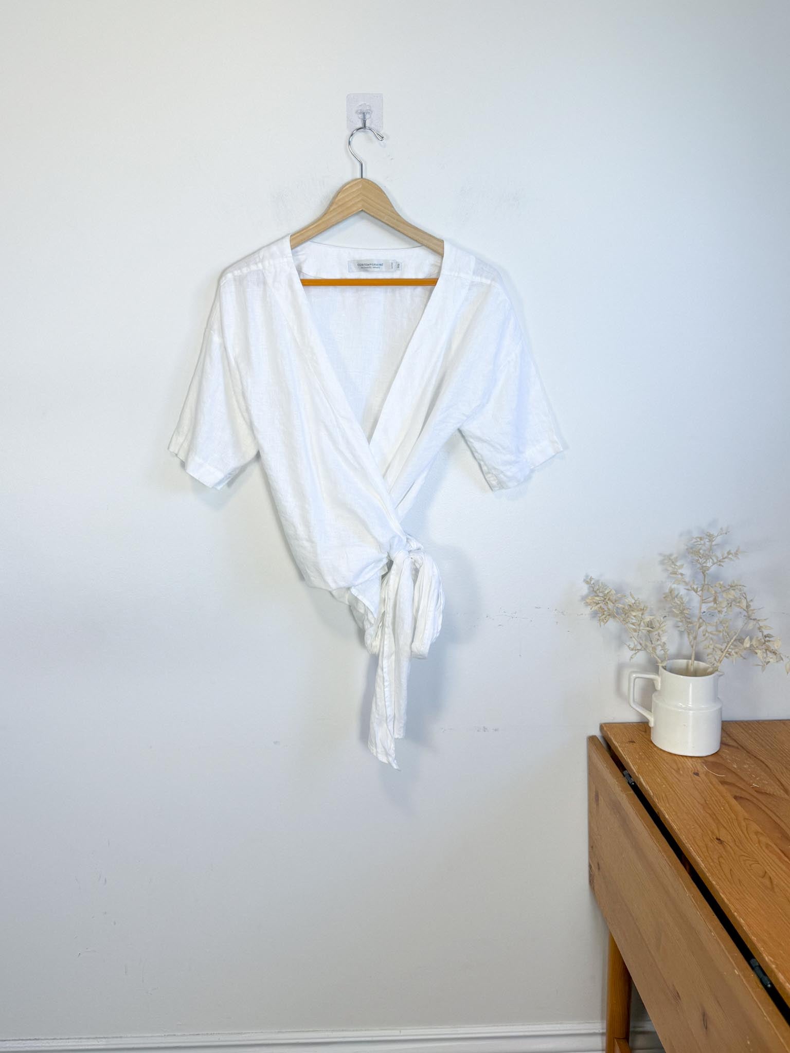 Simons Contemporaine Linen Wrap Top in White (Size M)