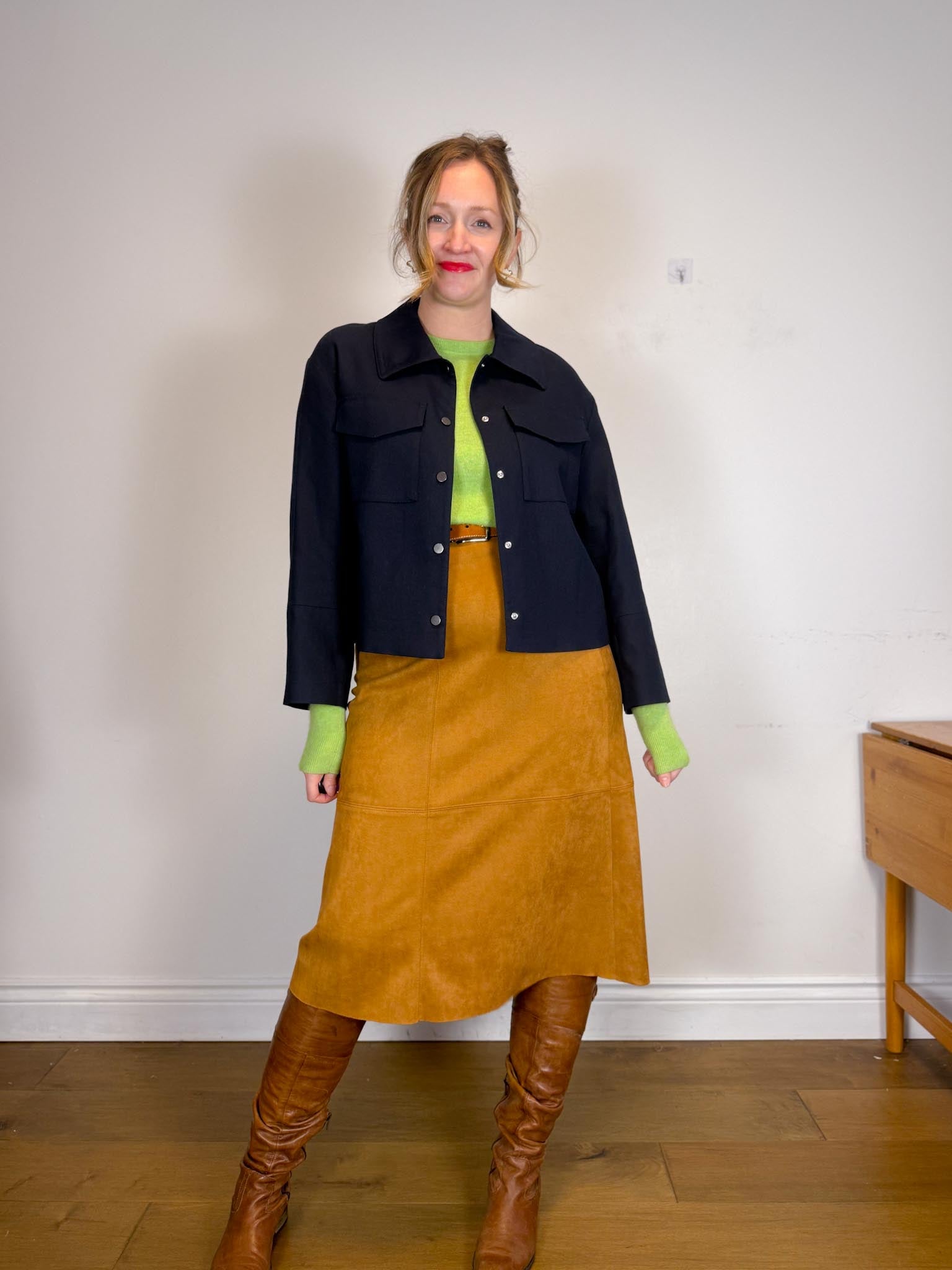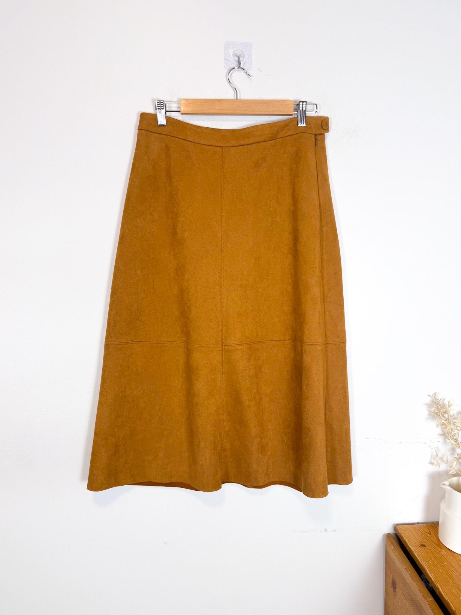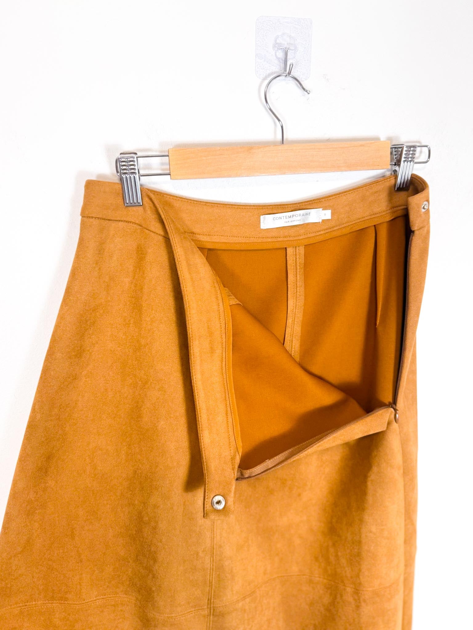 Contemporaine Simons Faux Suede Midi Skirt in Tan (Size M/L)