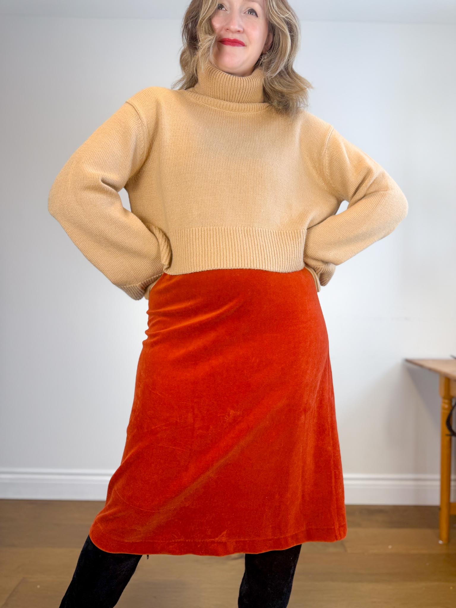 For sizing reference in the photos above, I am 5’9 and usually wear a M-L in tops and a size L / 10-12 depending on the brand in bottoms. My measurements are as follows: bust is 37/38” waist is 32” and hips are 43”. My Mom is 5’5 and usually wears a size small in tops and size 4 in bottoms depending on the brand. Her measurements are as follows: bust is 32” , her waist is 28” and her hips are 36.5”.
