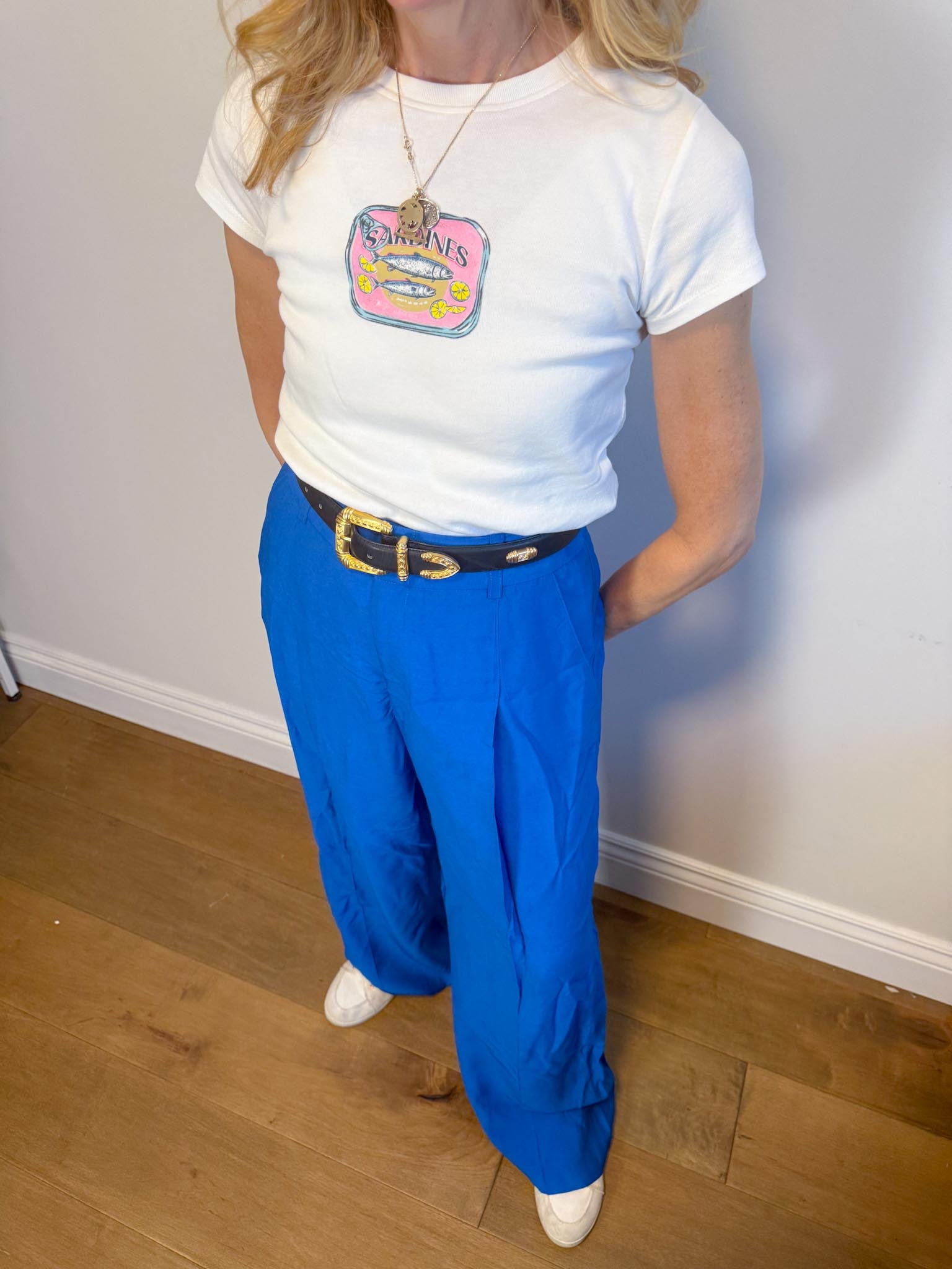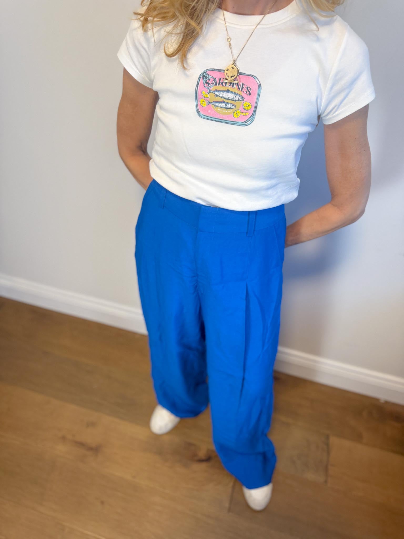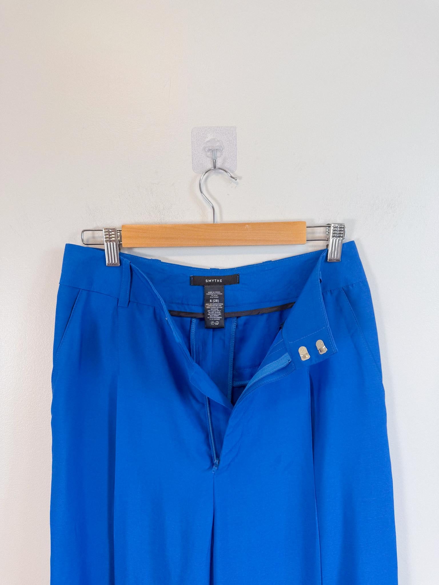 SYMTHE Designer Pleated Wide Leg Trousers in Aegean Blue (Size S/M)