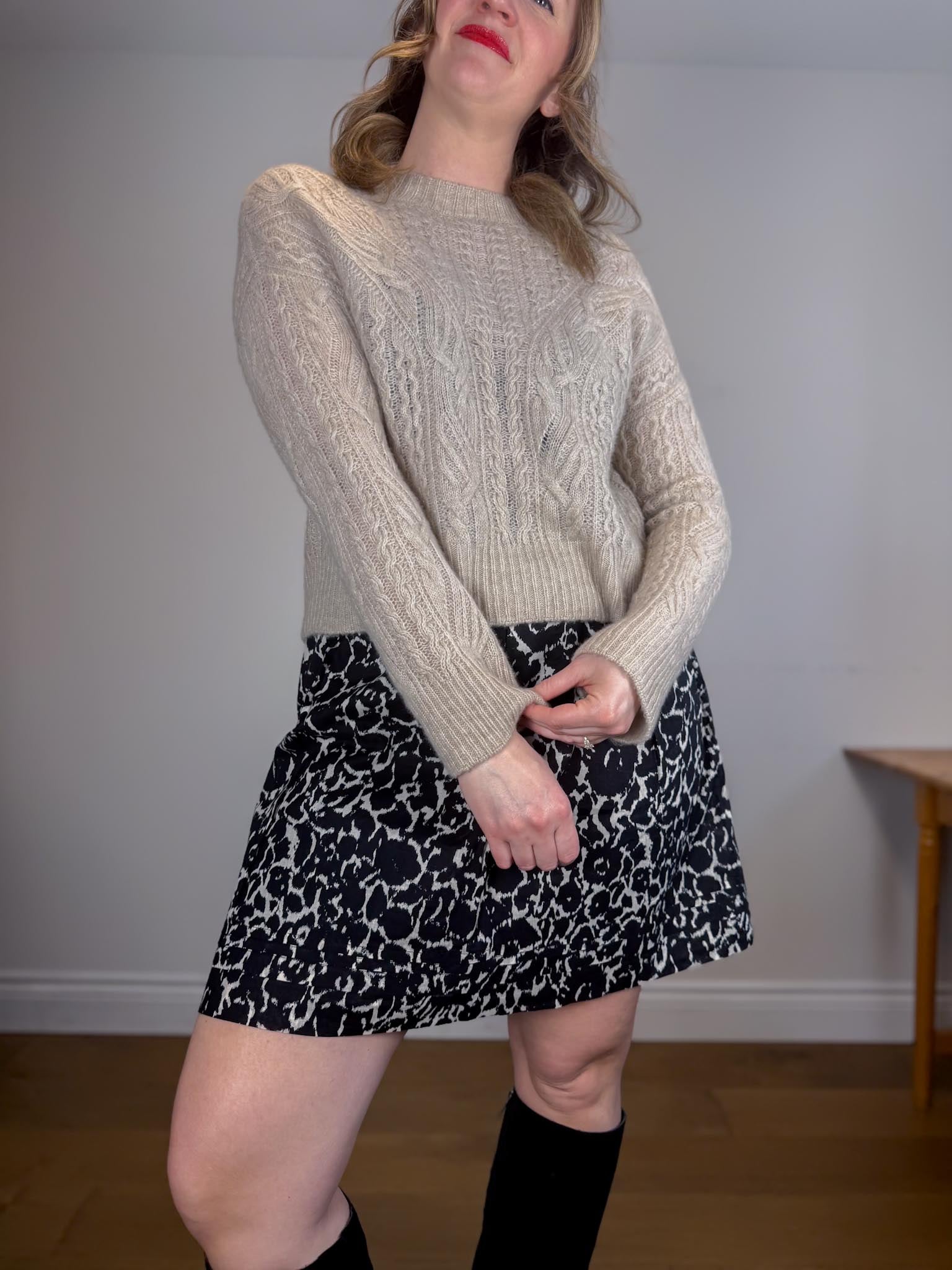 For sizing reference in the photos above, I am 5’9 and usually wear a M-L in tops and a size L / 10-12 depending on the brand in bottoms. My measurements are as follows: bust is 37/38” waist is 32” and hips are 44”. My Mom is 5’5 and usually wears a size small in tops and size 4 in bottoms depending on the brand. Her measurements are as follows: bust is 32” , her waist is 28” and her hips are 36.5”.
