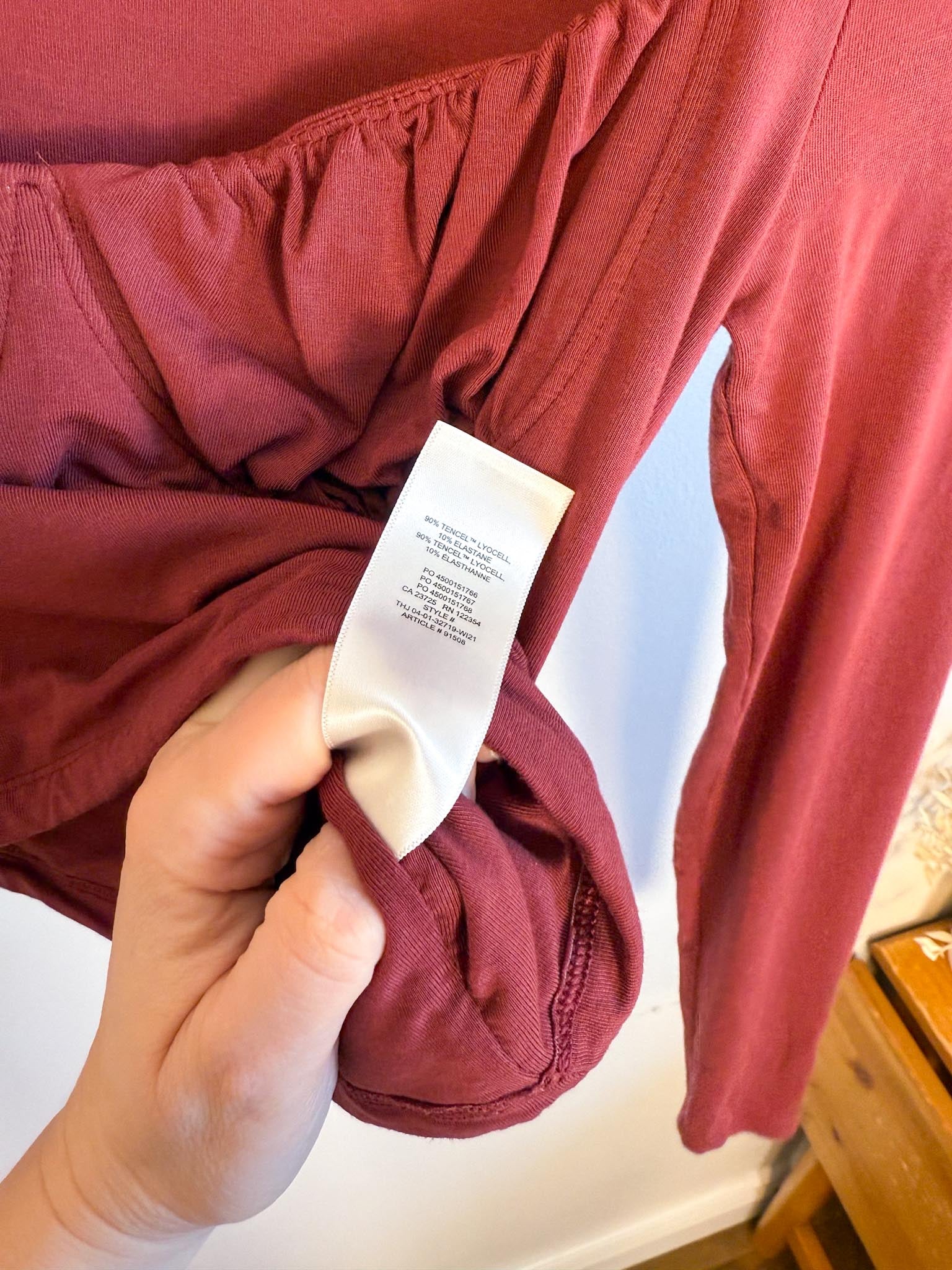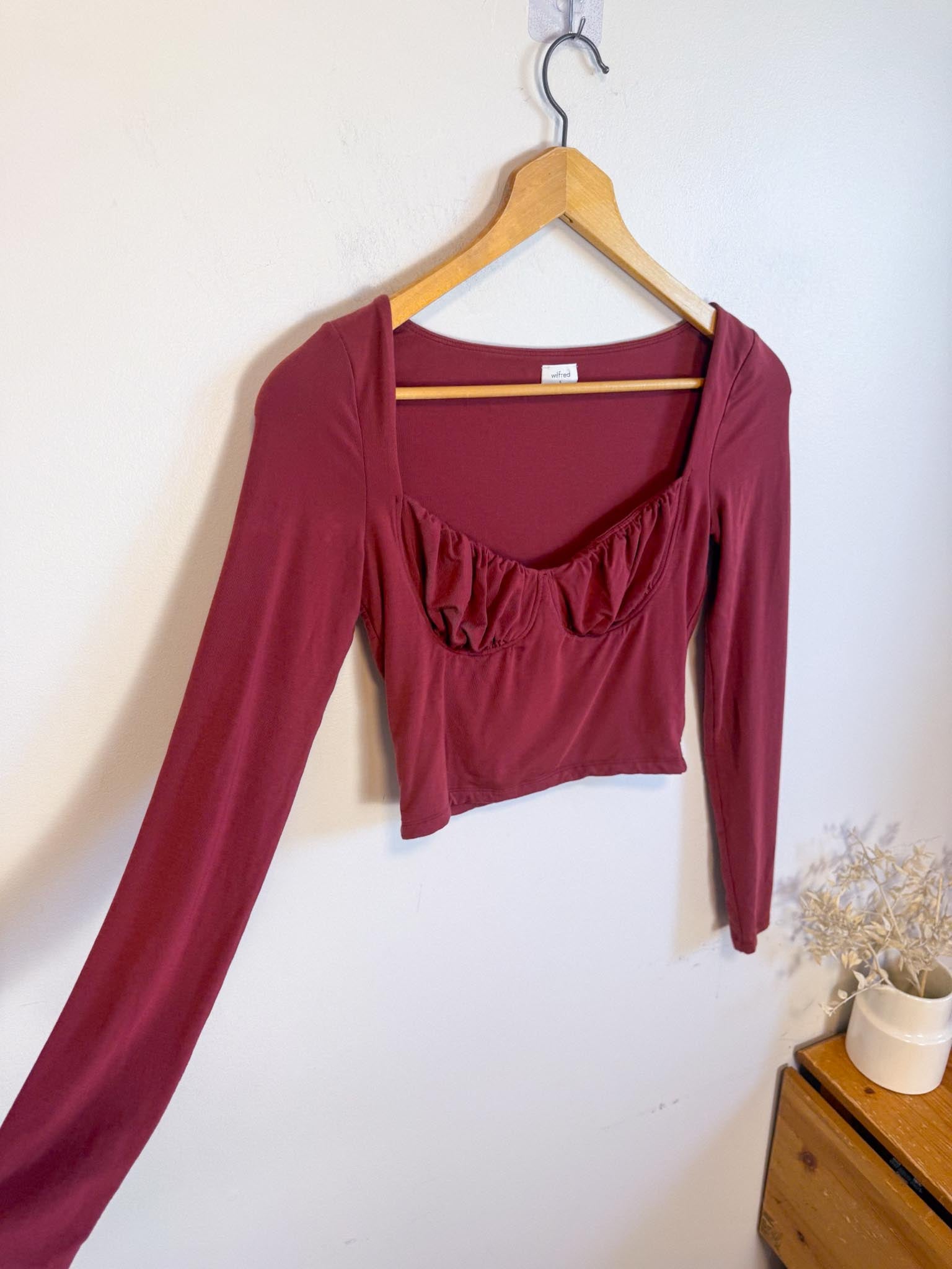 Wilfred "Orbit Cropped Long Sleeve Top in Maroon" (Size S)