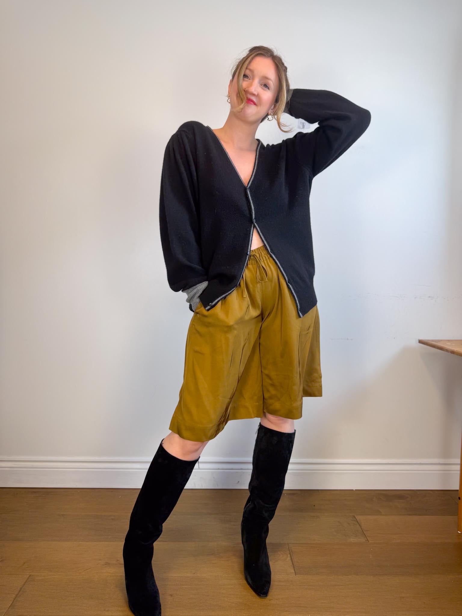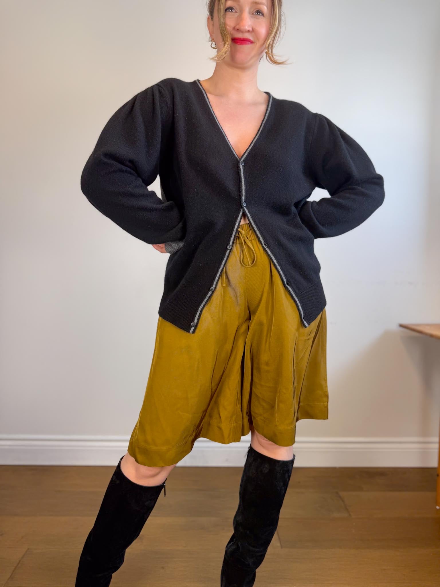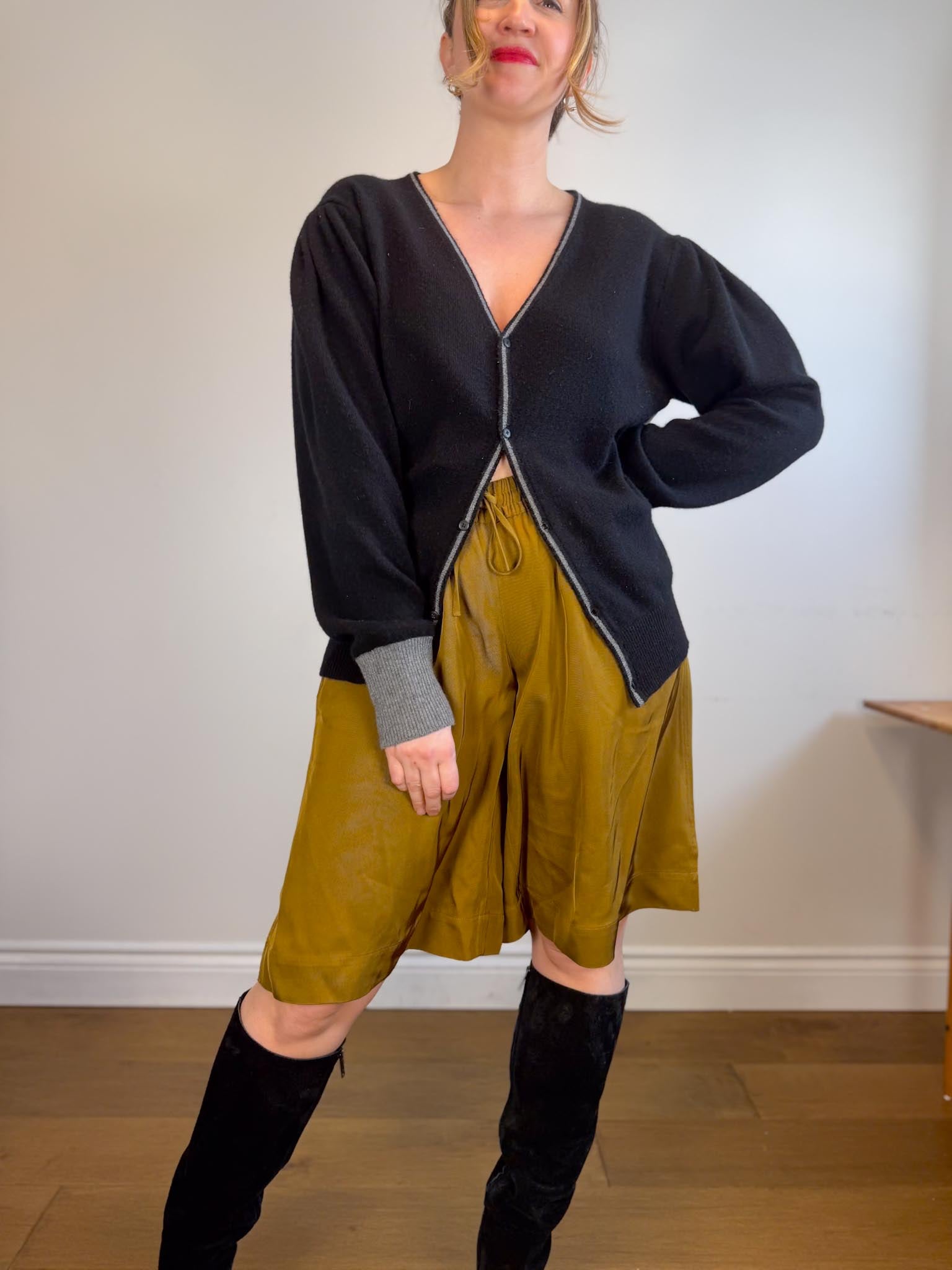 Random Identities Designer Wool & Cashmere Bicolour Cardigan in Black/Grey (Size L)